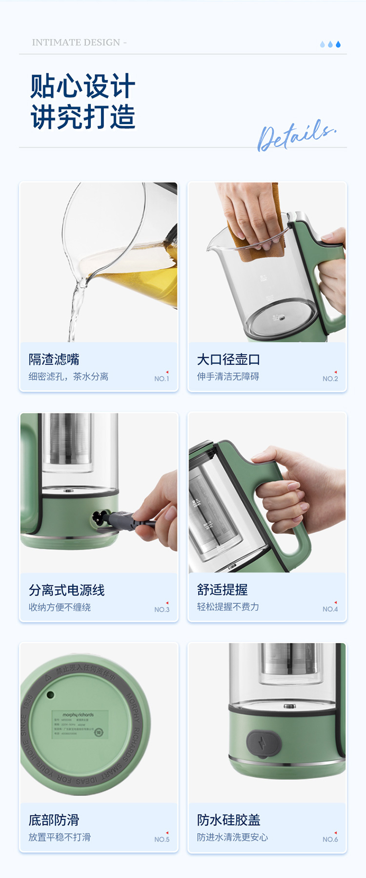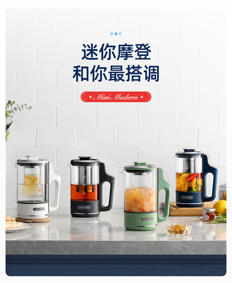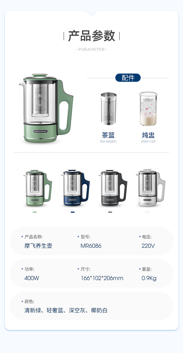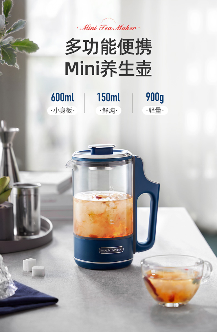 摩飞(Morphyrichards)便携养生壶迷你煮茶器烧水壶养生杯小型办公室家用多功能煮茶壶热水壶MR6086典雅白