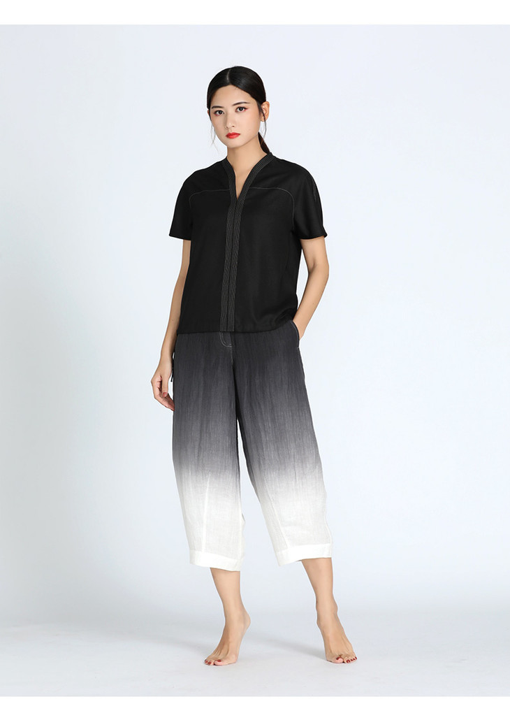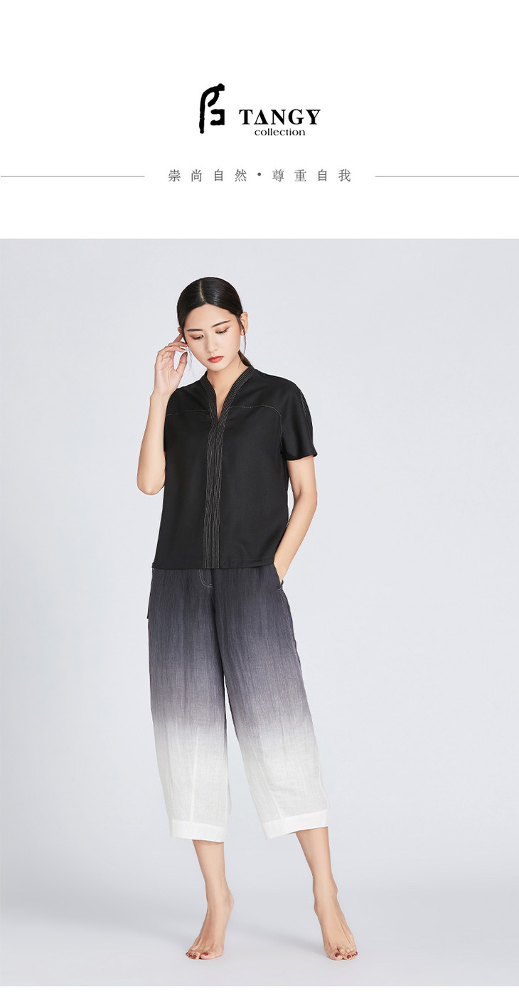 TANGY Collection天意丝麻绉吊染线迹九分裤