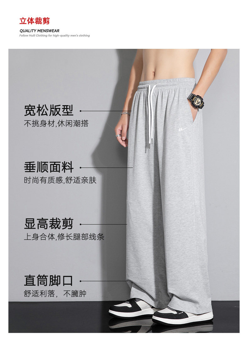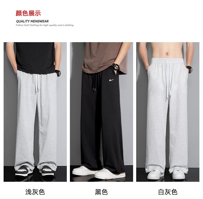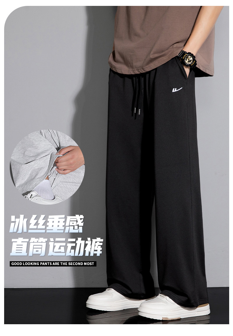 回力裤子男款夏季薄款冰丝长裤休闲裤男士直筒宽松卫裤阔腿运动裤