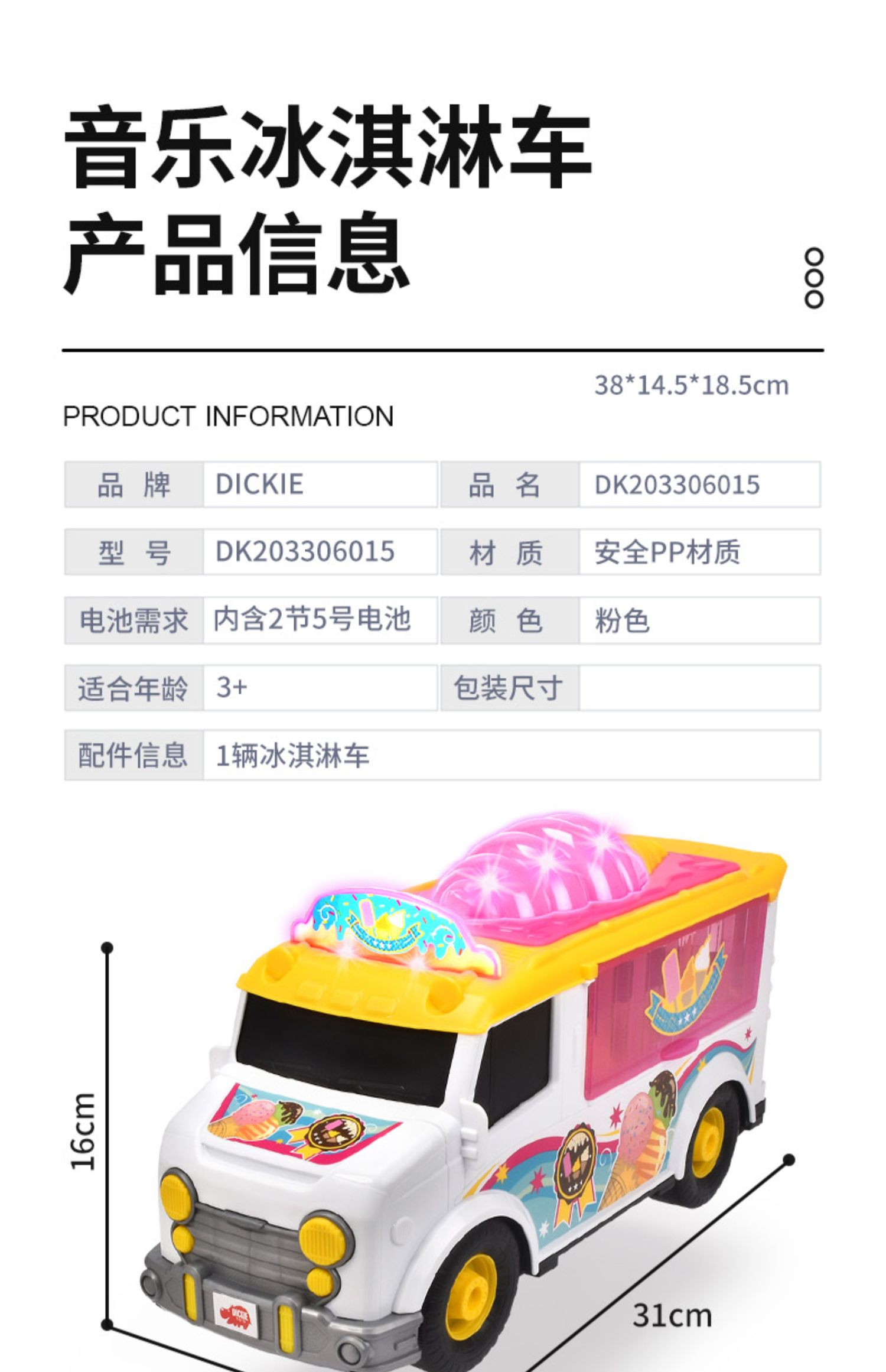 德国Dickietoys音乐冰淇淋玩具车仿真大号汽车模型儿童男孩礼物 3岁+