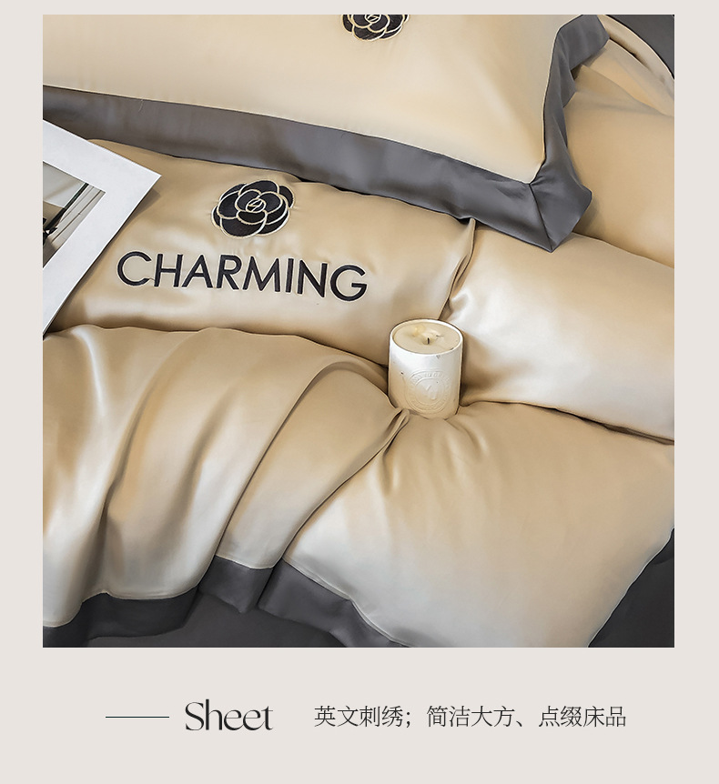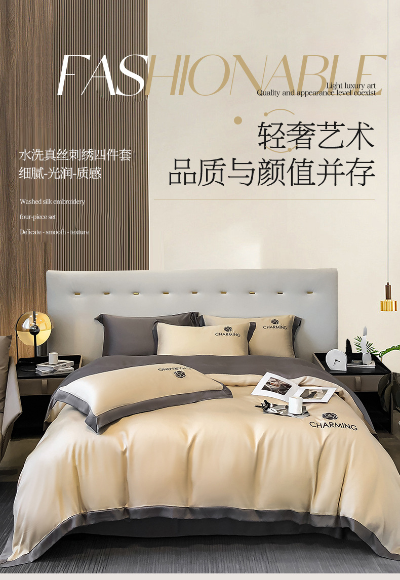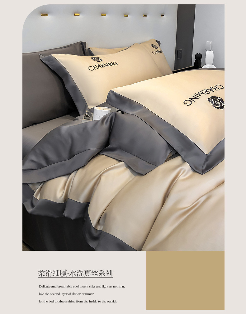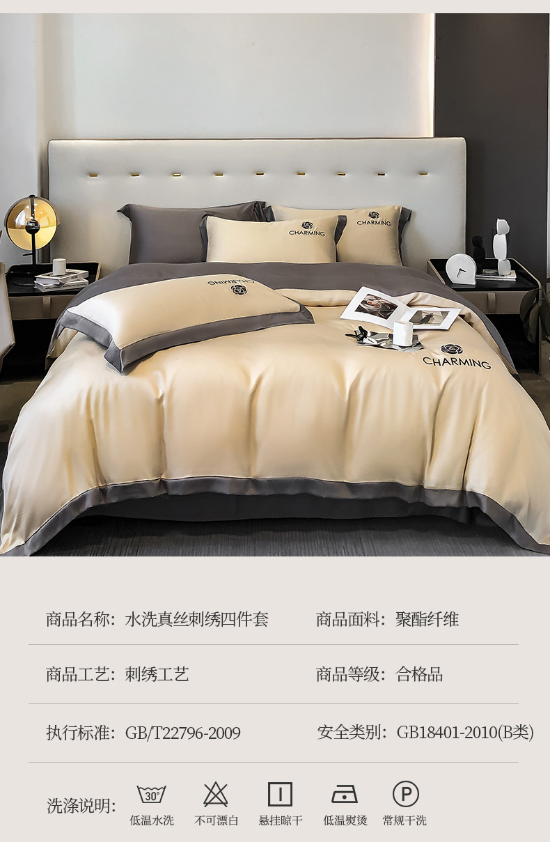 【冰丝床上四件套 水洗真丝被套被罩】轻奢天丝床品 宿舍家居床单三件套