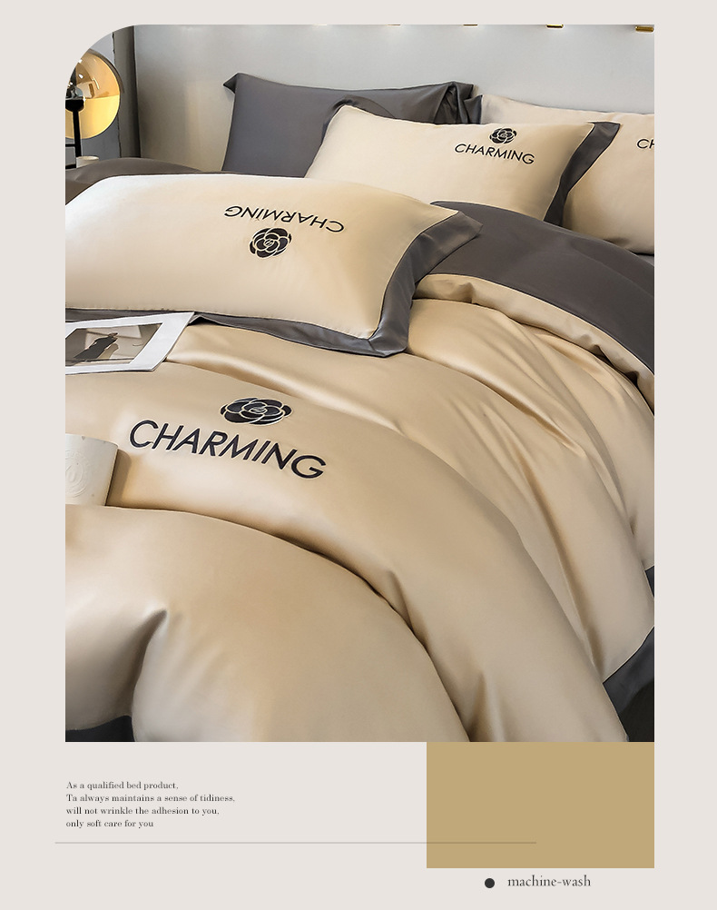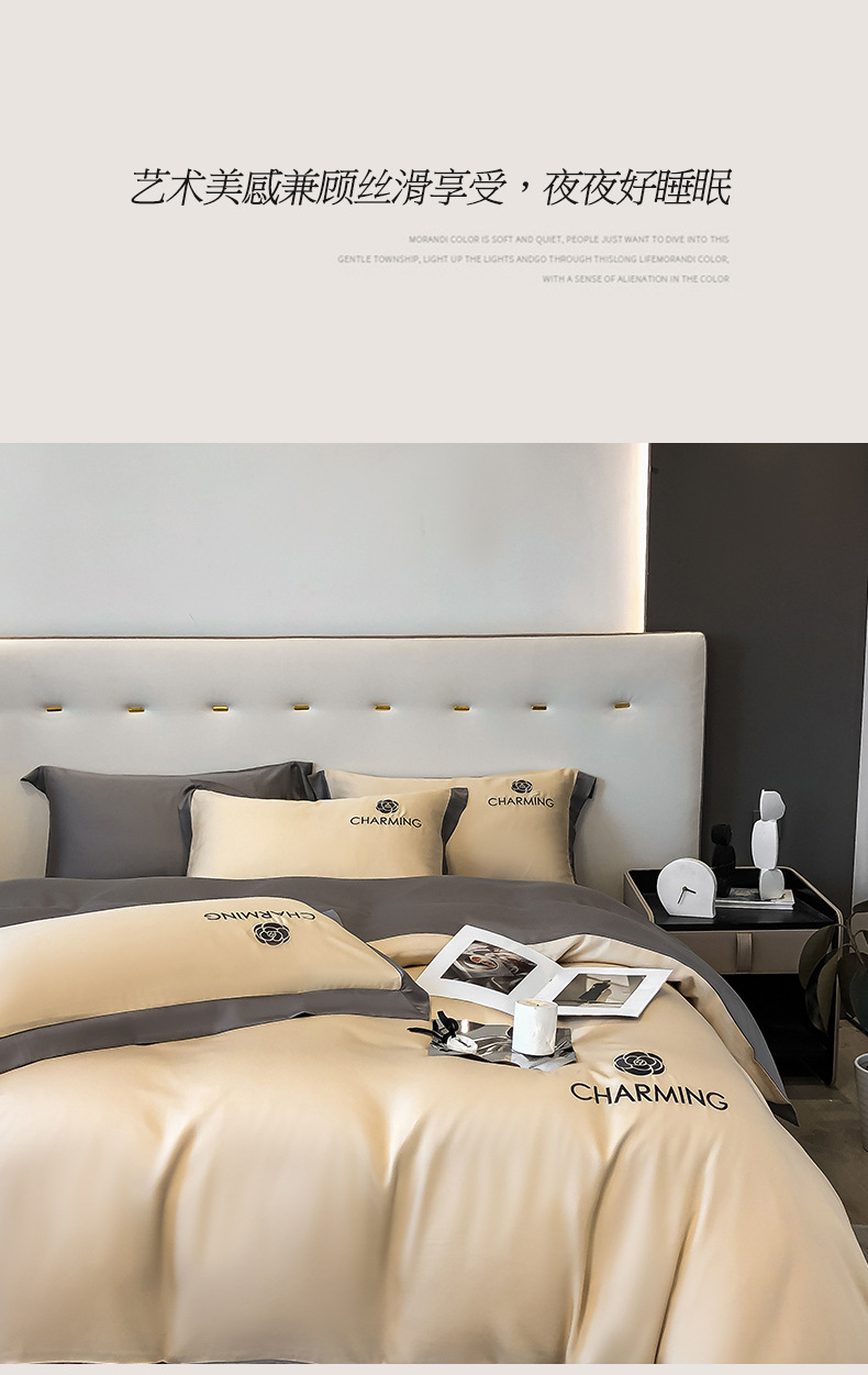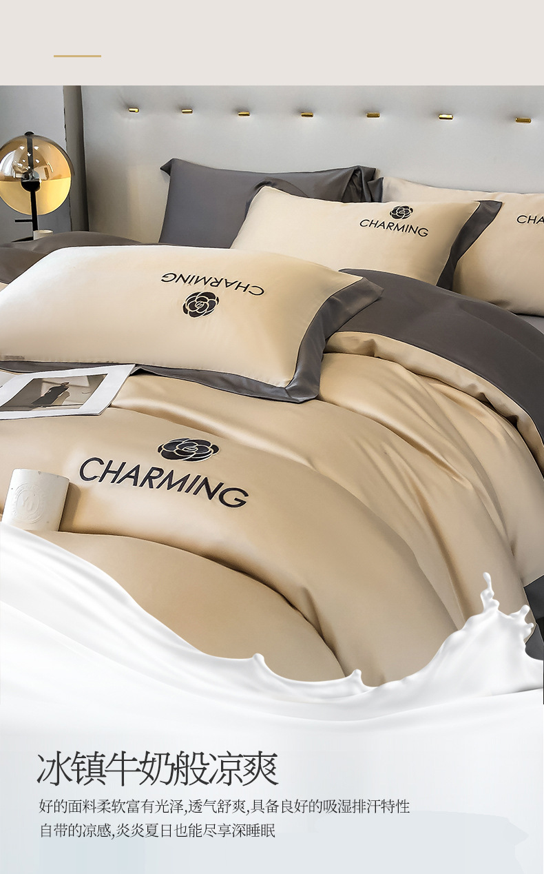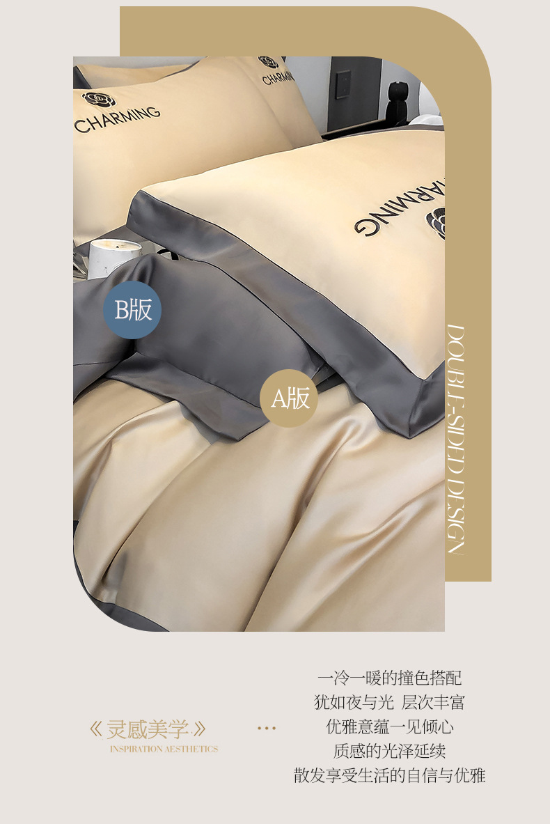 【冰丝床上四件套 水洗真丝被套被罩】轻奢天丝床品 宿舍家居床单三件套
