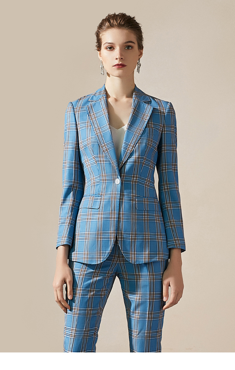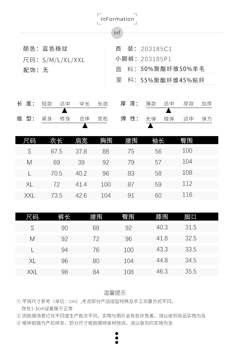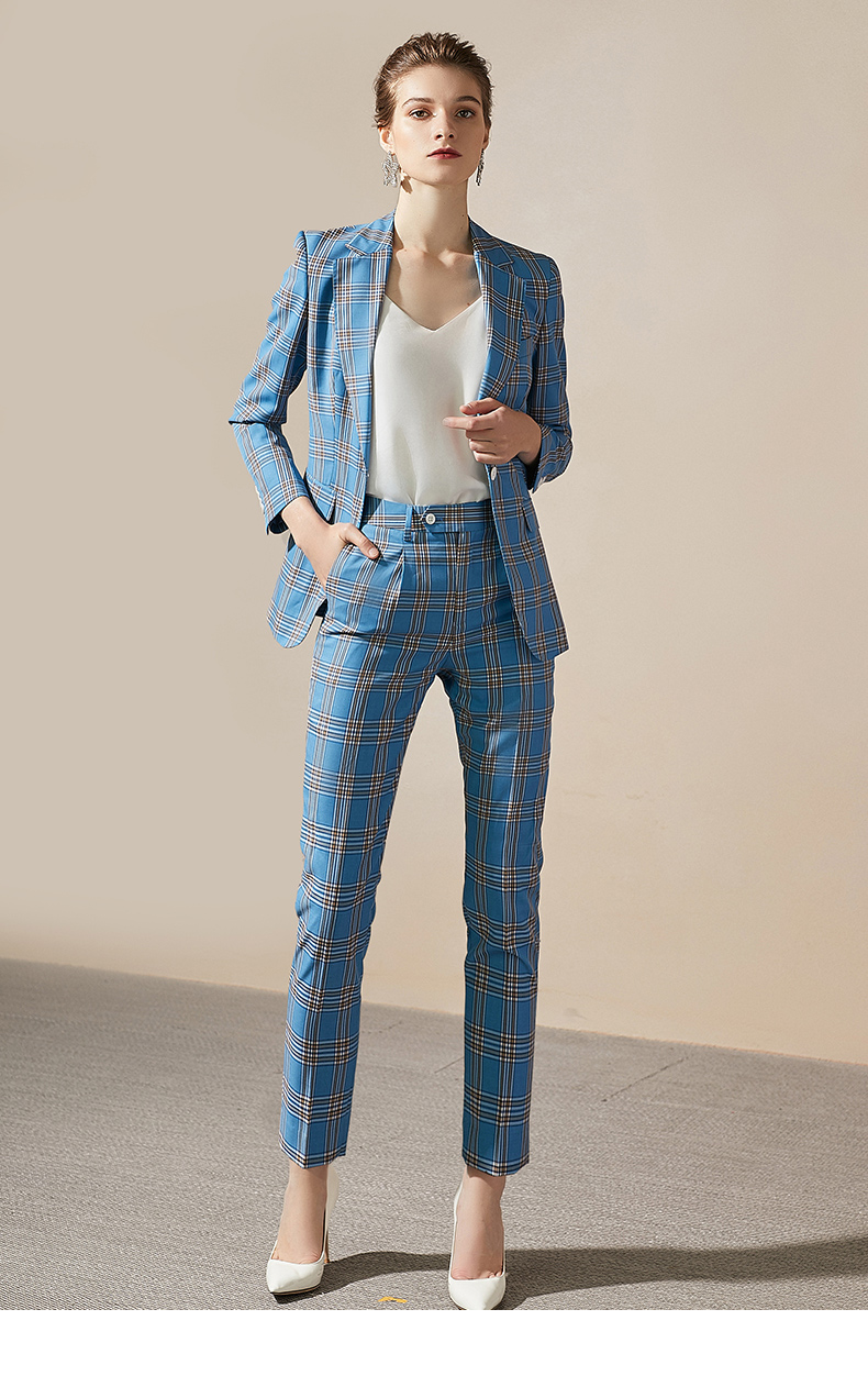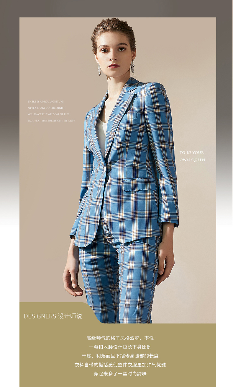 IWY/职业装西装套装女西裤修身蓝色西服高端气质时尚OL正装203185C1+203185P1