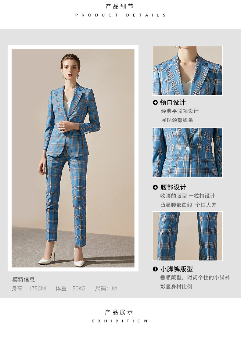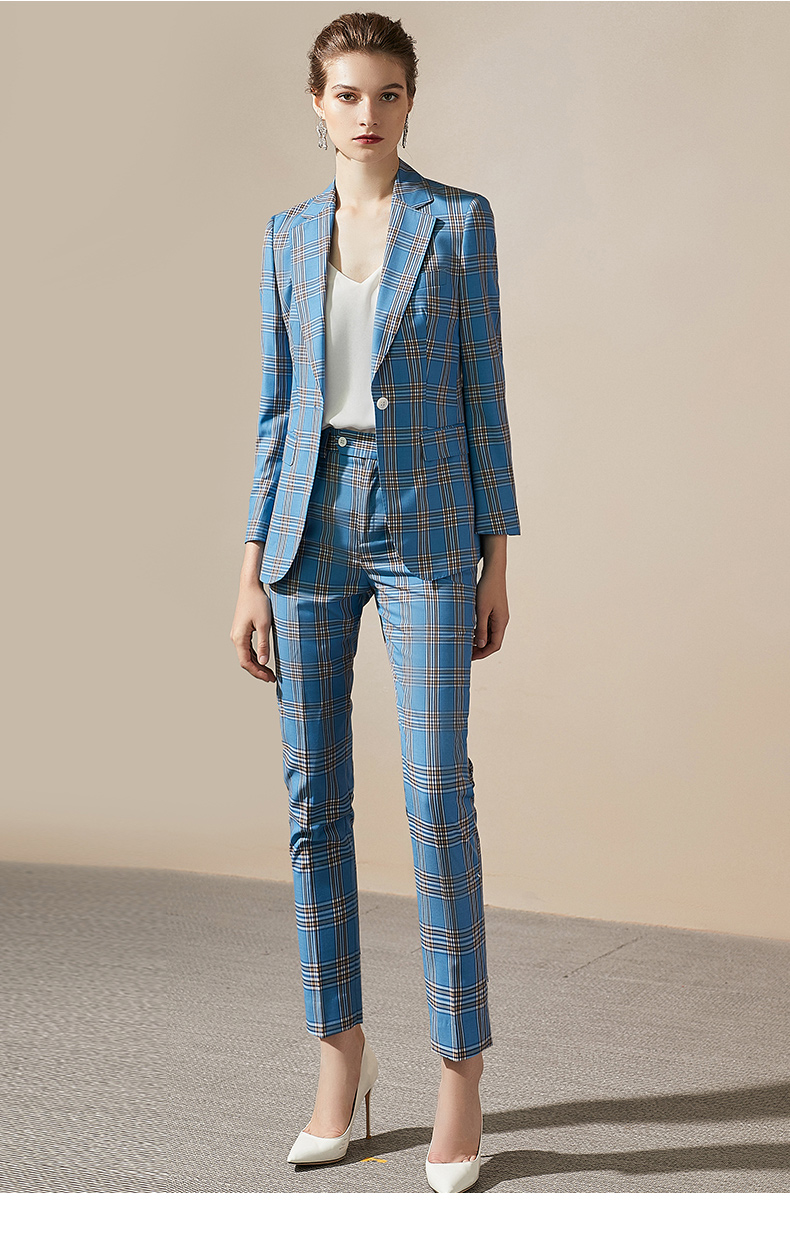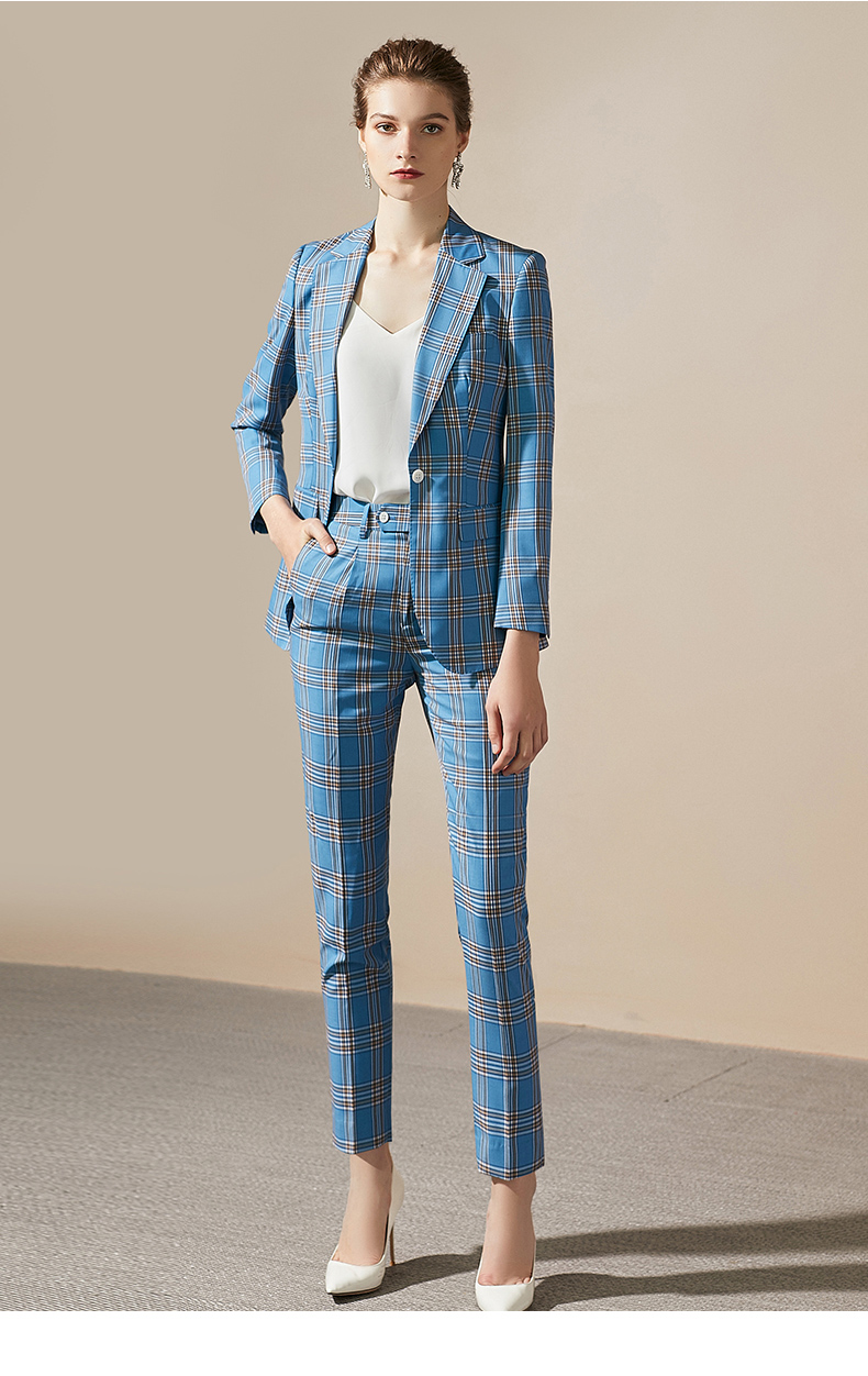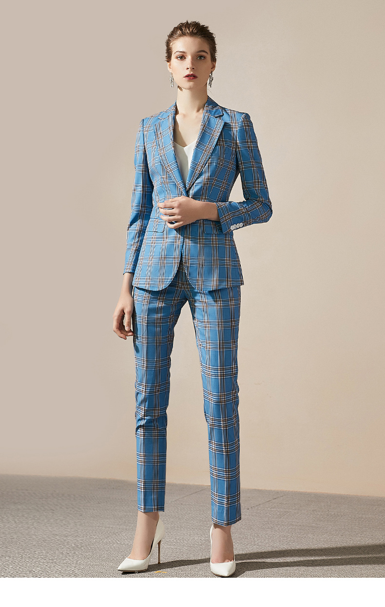IWY/职业装西装套装女西裤修身蓝色西服高端气质时尚OL正装203185C1+203185P1
