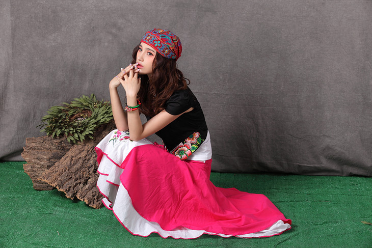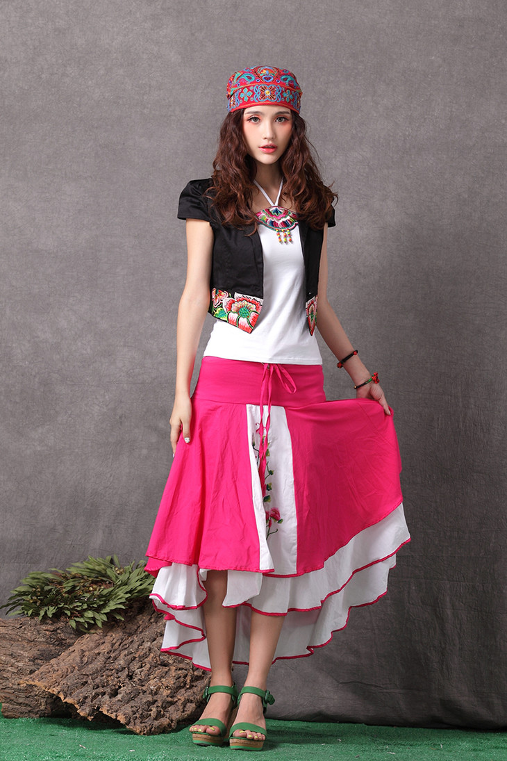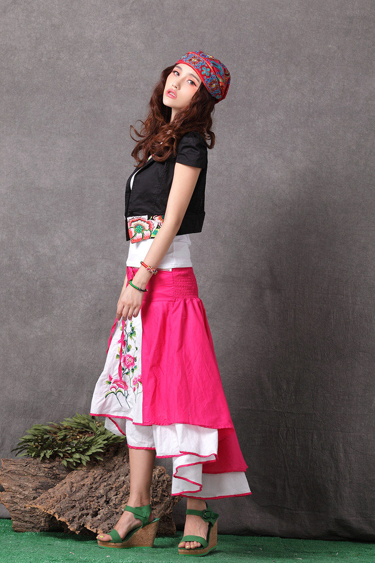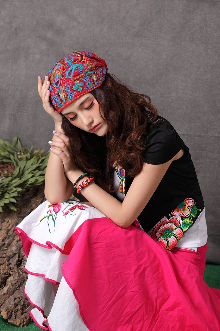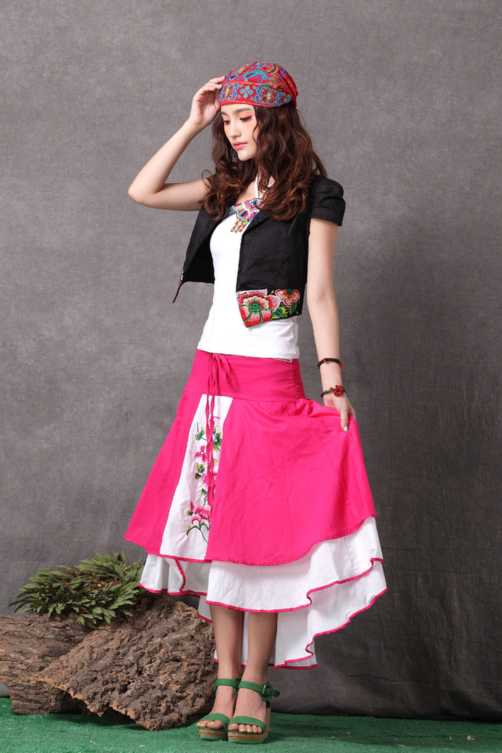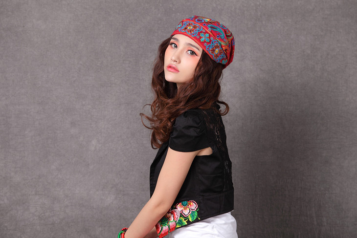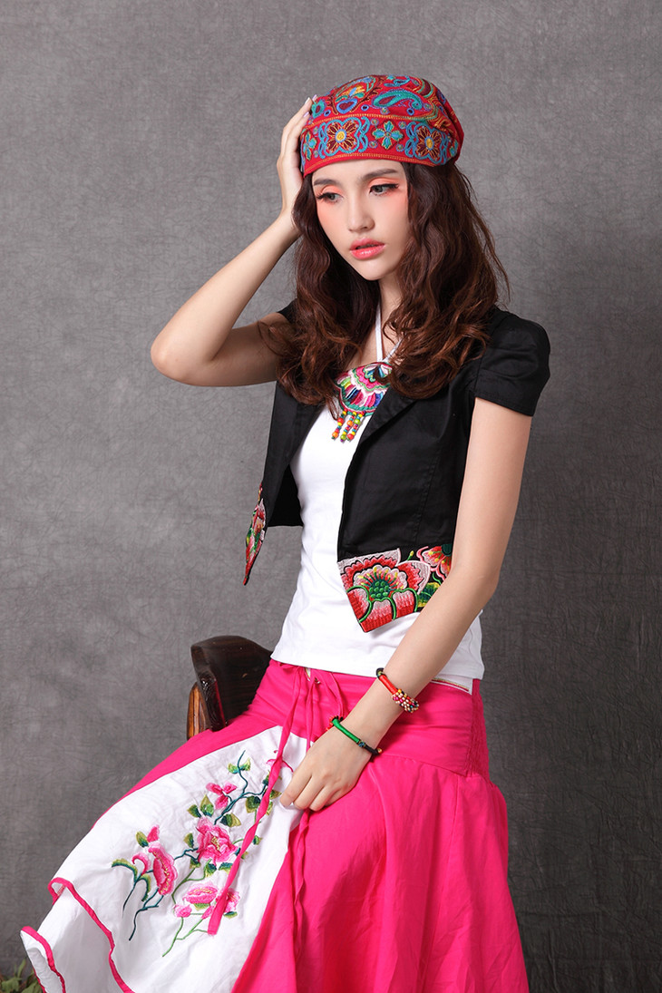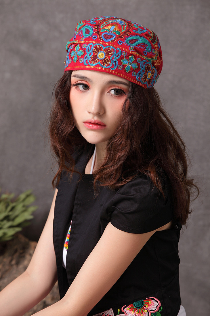 红色刺绣衬衫女设计感小众2022春季立领衬衣七分袖上衣 KIS1002