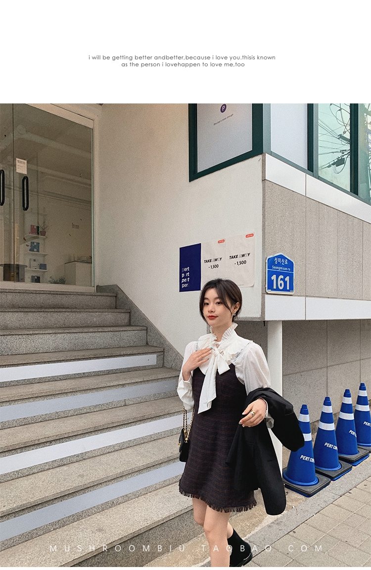 【金蘑菇菇 Chelsea girl】恋爱轻甜系设计感收腰裙小个子背带裙