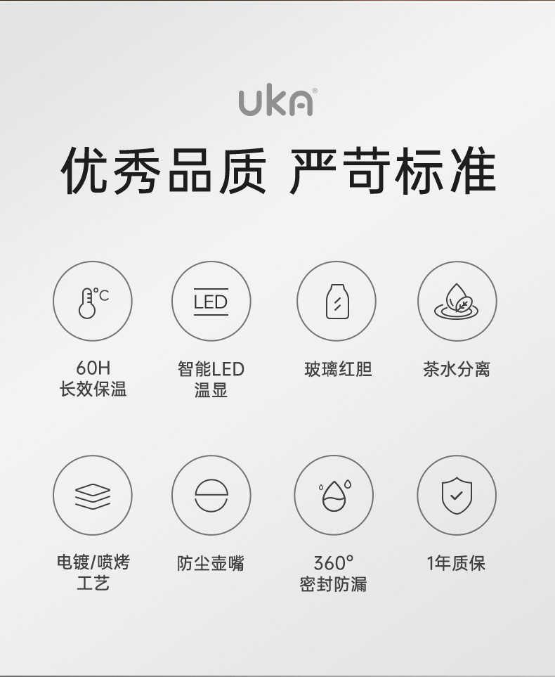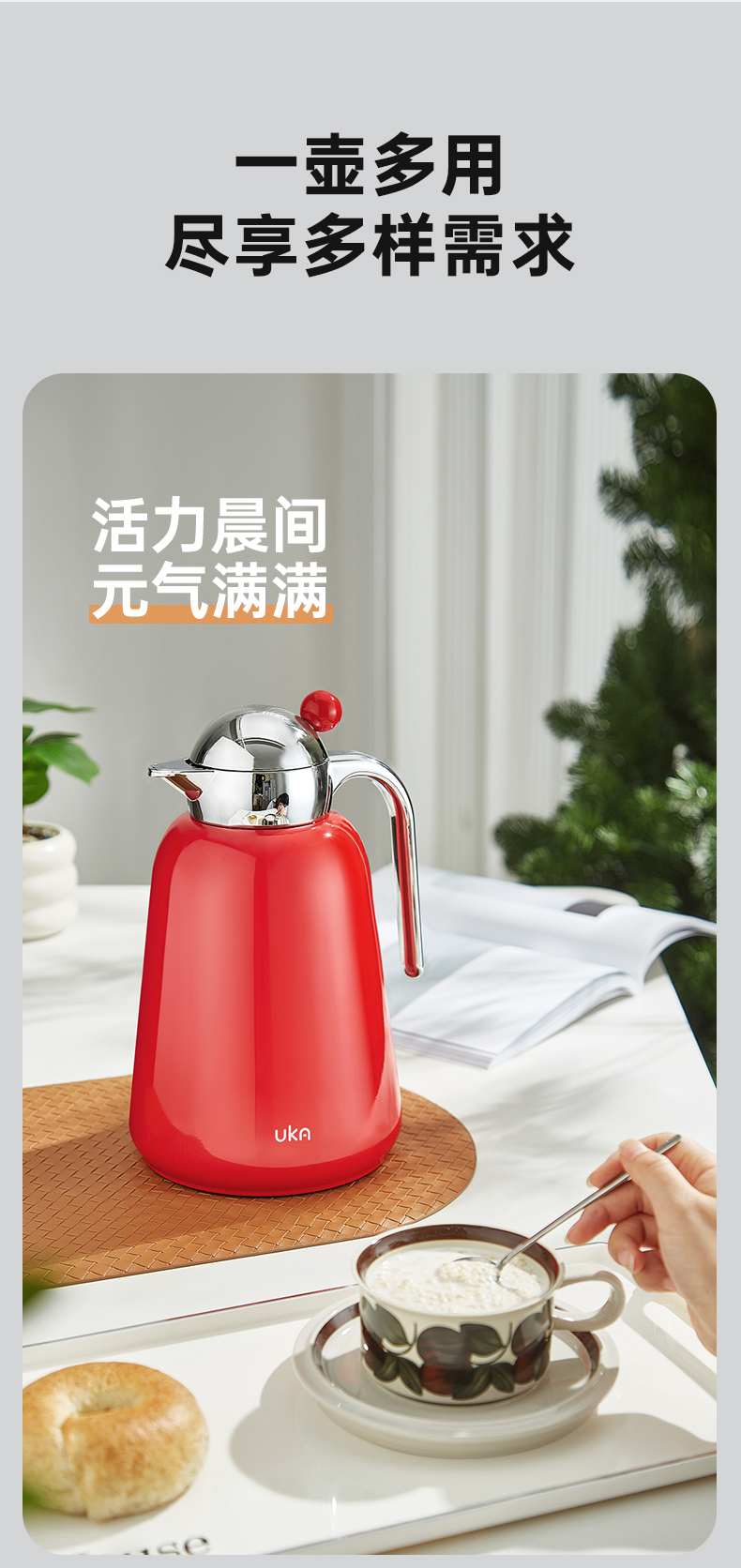【品名/规格】UKA Pot pro保温水壶(幻银艺术款),1.0L/1.5L(红色、白色、银色)