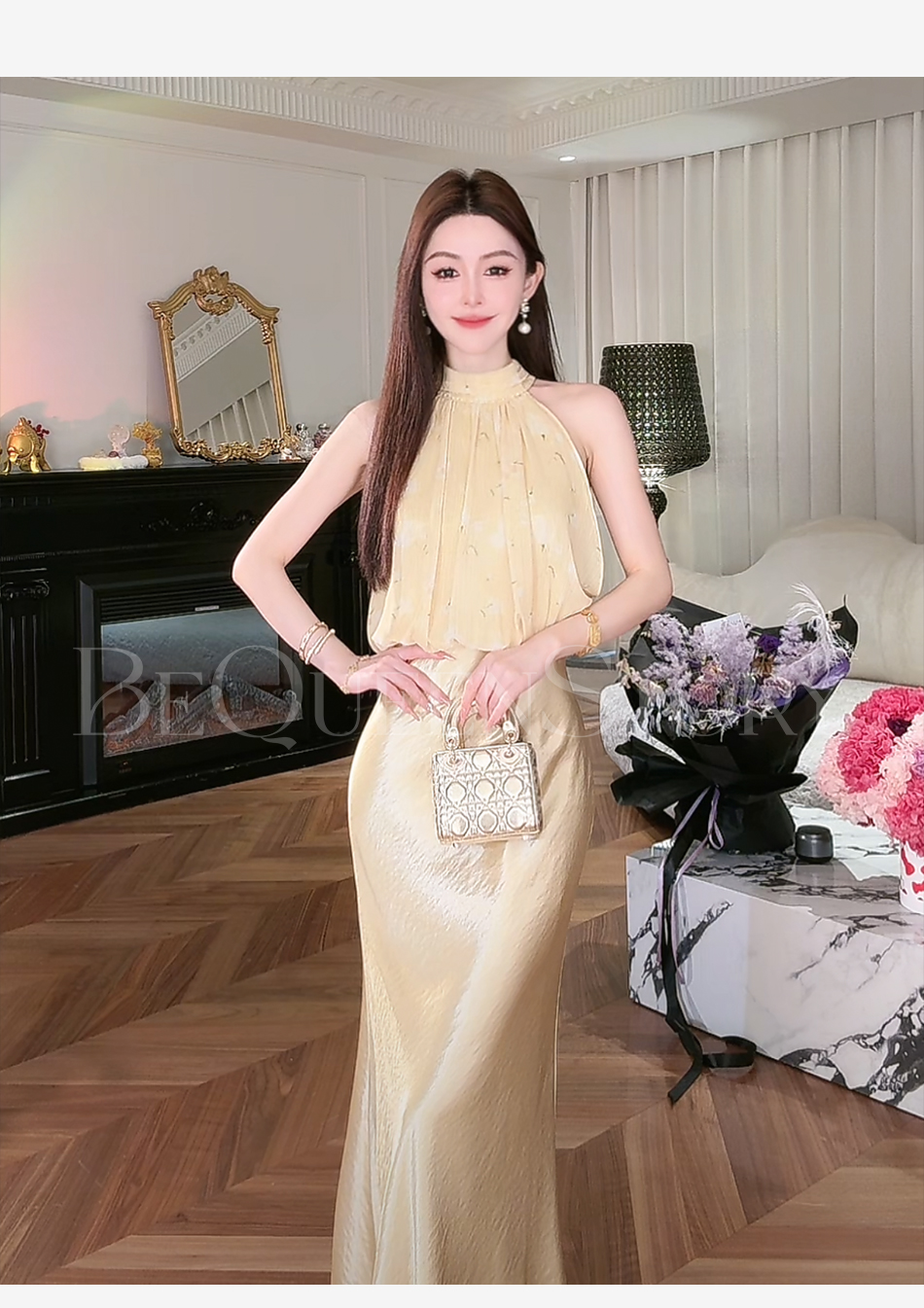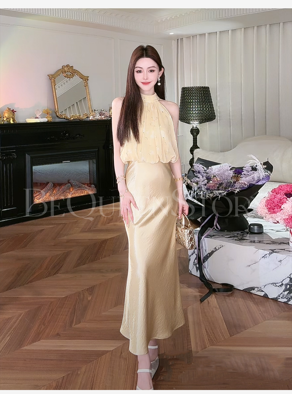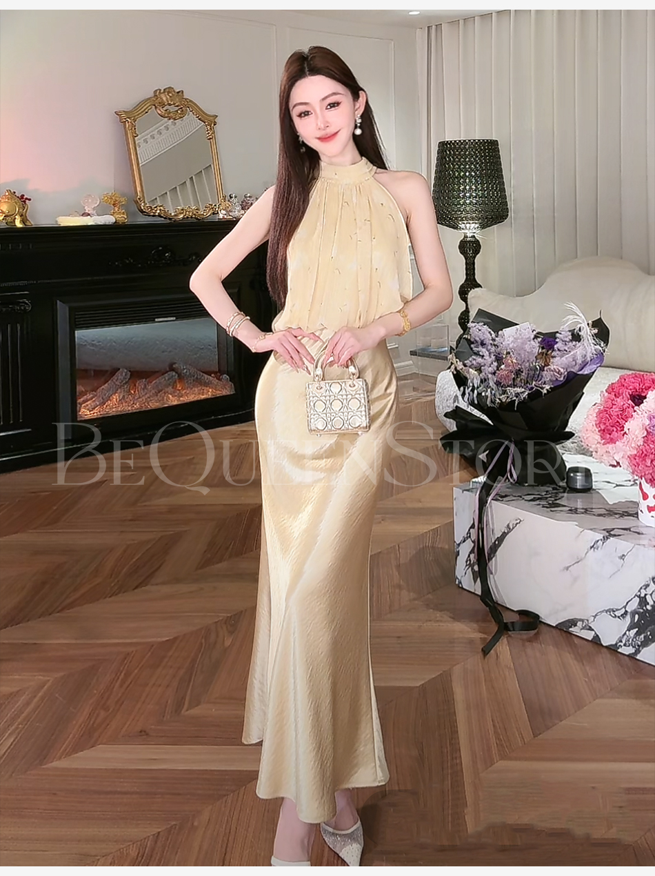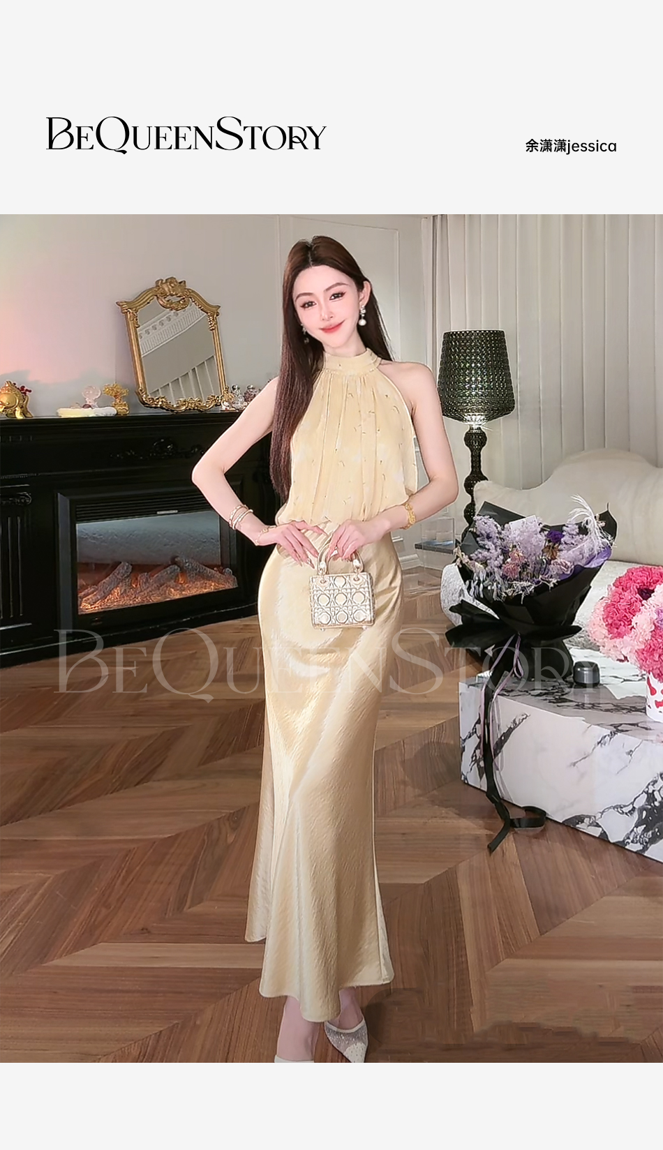 【大货捡漏,不退不换】 【夕阳缪斯】设计感花苞型挂脖立领可拆卸花鱼尾连衣裙成人