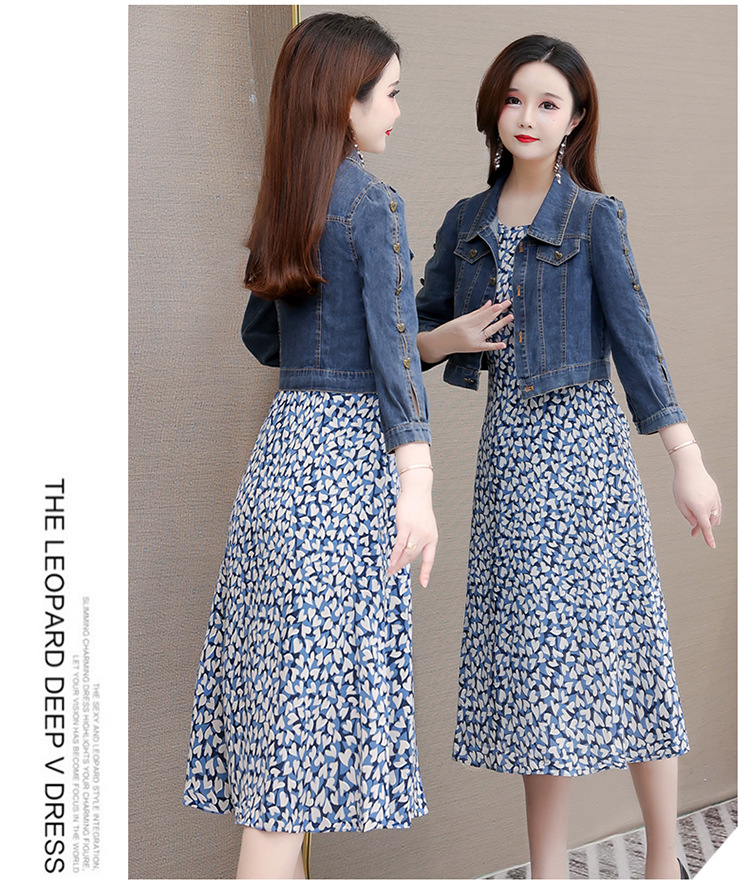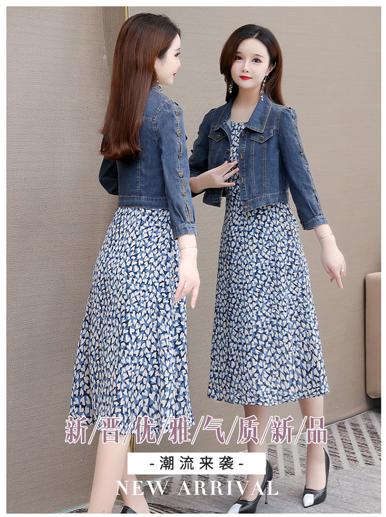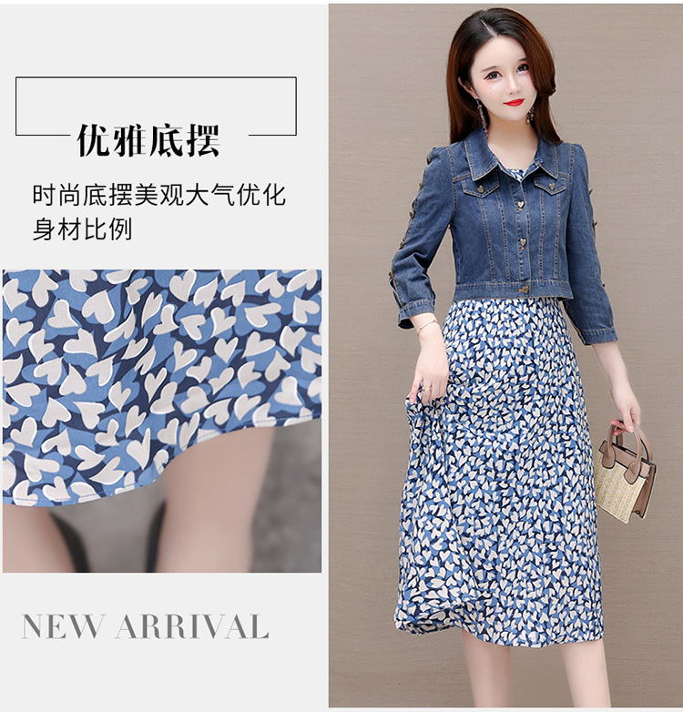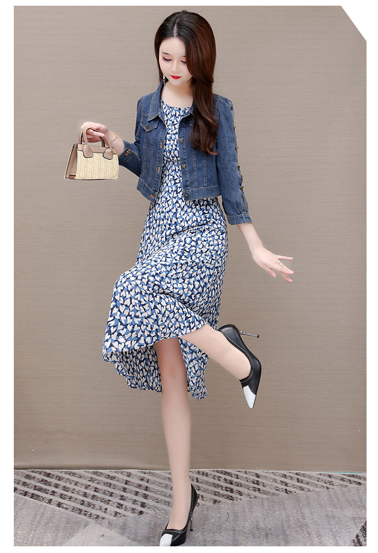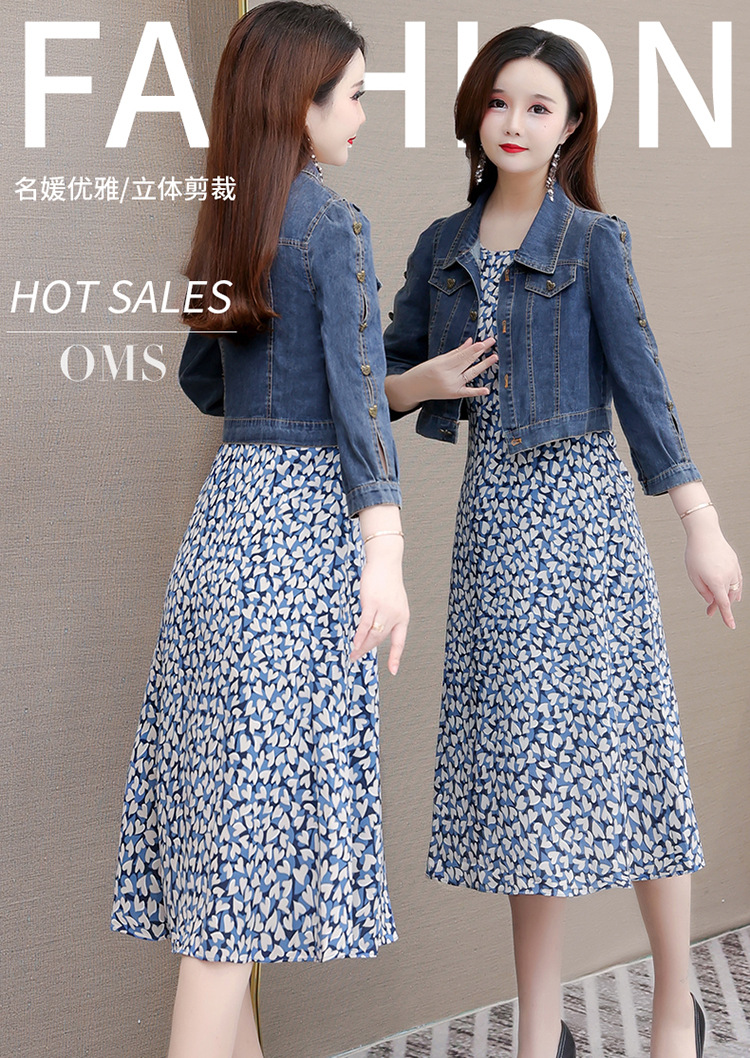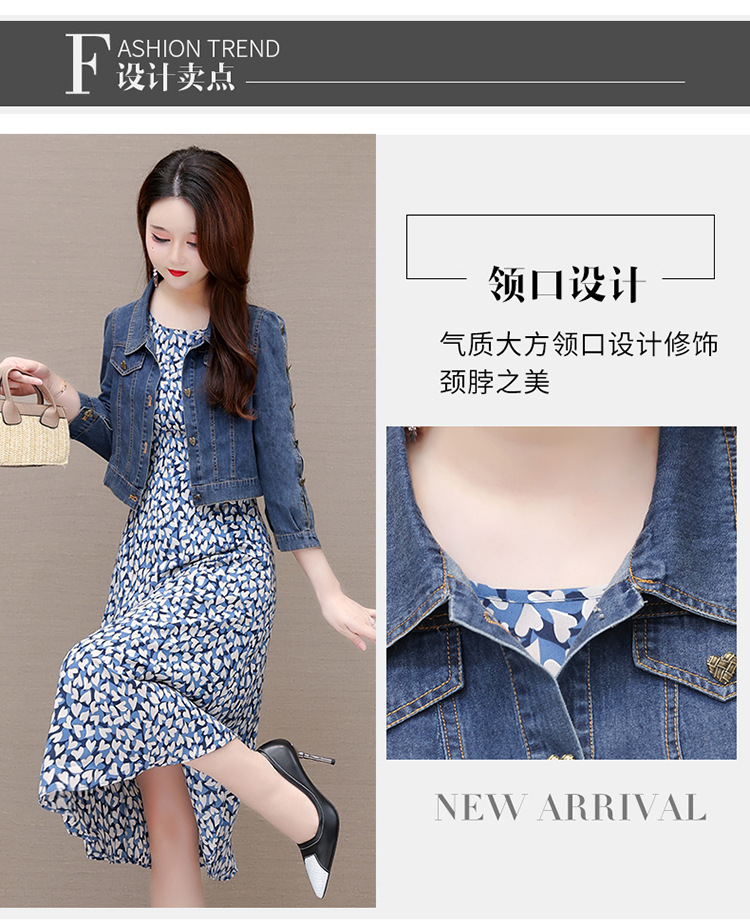 春款印花时尚内搭翻领休闲牛仔短外套两件套QYM-OMS-AA307-L