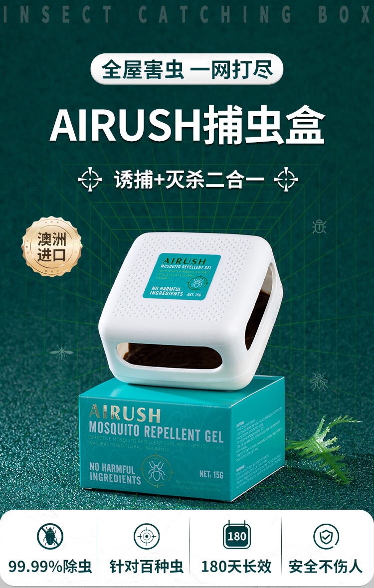【买一送一,夏季蚊虫克星】澳洲原装进口AIRUSH诱捕盒家用款 蚊虫 蟑螂天然植萃凝胶 跟蚊子说拜拜