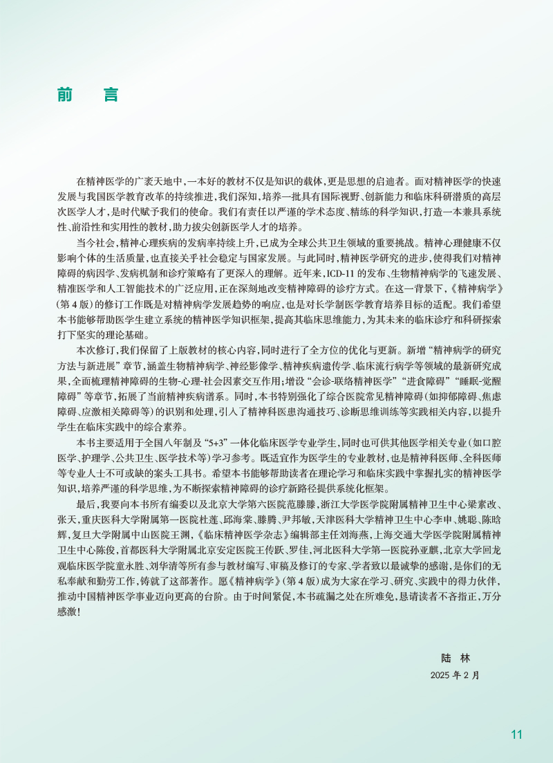 精神病学 第4四版 十四五规划教材 全国高等学校教材 陆林 王高华 主编 供八年制及“5+3"一体化临床医学等专业用 人民卫生出版社