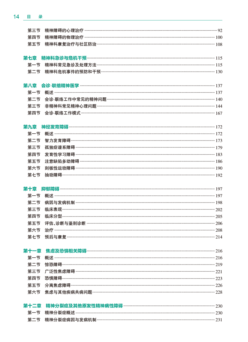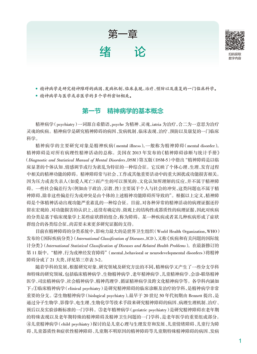 《精神病学》(第4版)是全国高等学校八年制及“5+3”一体化临床医学专业第四轮规划教材。本版教材是在《精神病学》(第3版)的基础上修订而成,主要供我国八年制及“5+3”一体化临床医学等专业医学生学习使用。本书主要分为两部分:**部分是总论部分,主要介绍精神障碍基本概念、症状学、病因学与分类系统、诊断学、治疗学,精神科的危机识别和干预、精神障碍的法律与伦理学等问题,在给医学生介绍精神病学的总体概念和基础知识的同时,着重增加精神病学与其他学科的交叉、精神病学研究常用方法、公共卫生与心理危机干预等内容。**部分章节分别介绍临床中主要的精神障碍类型,除常见的精神分裂症、焦虑症、抑郁症、双相障碍等原有的内容,还增加了睡眠障碍的内容,同时结合ICD-11做了更新。这些内容对于非专科的临床医师认识精神障碍是非常必要的。此外,本教材还随书配有课件、视频等数字多媒体内容供读者参考。