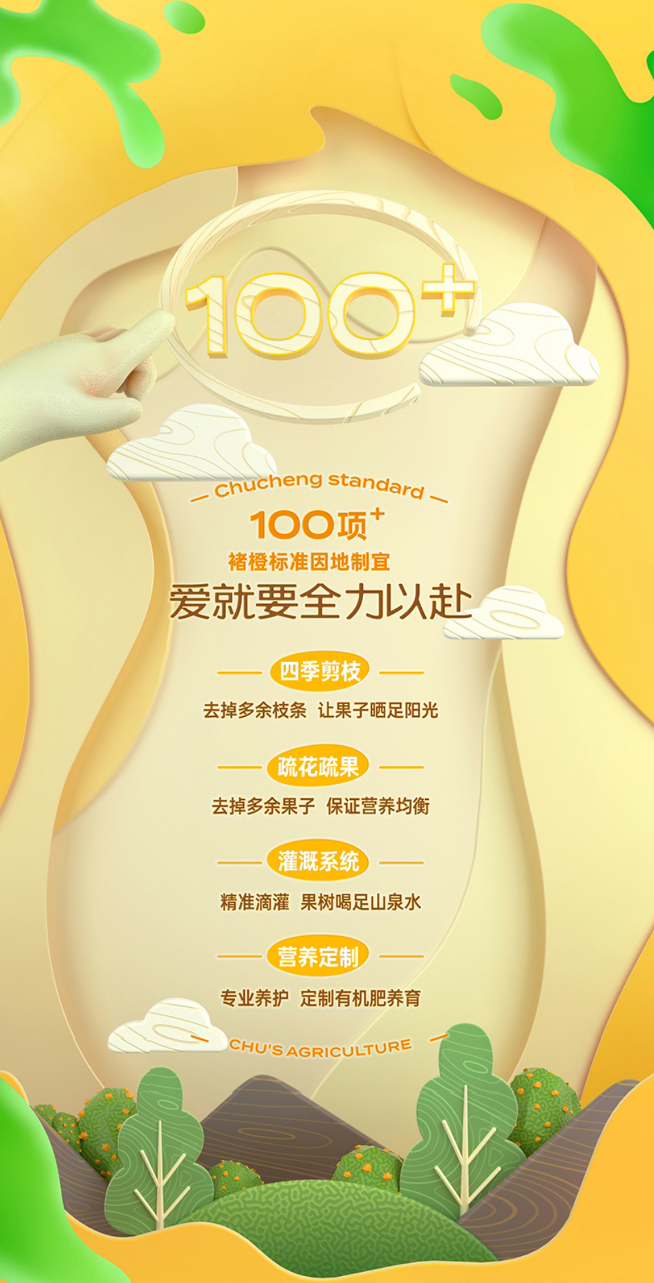 在以褚橙种植标准的基础上,再根据龙陵基地的自然环境因地制宜,放弃矮化密植,在一开始就严格控制果树之间的间距,让果树都能够吸收到充足的阳光