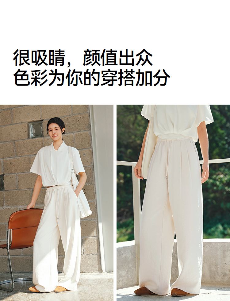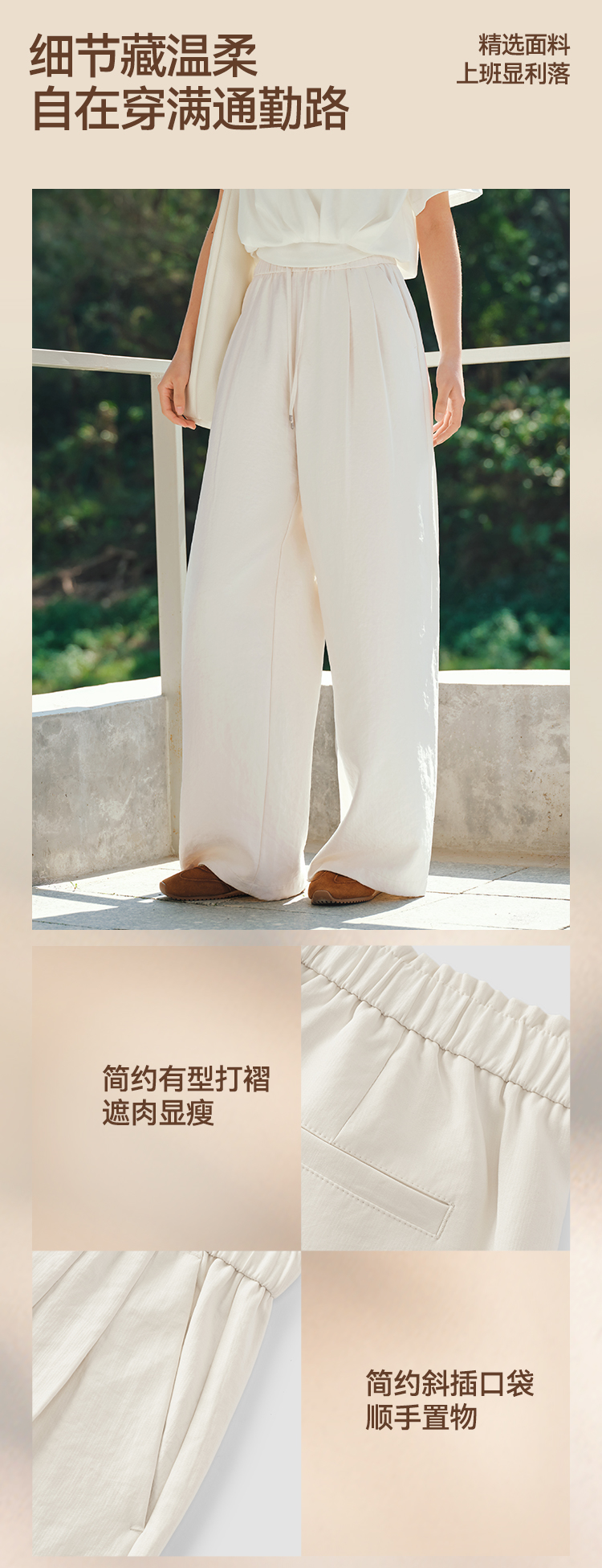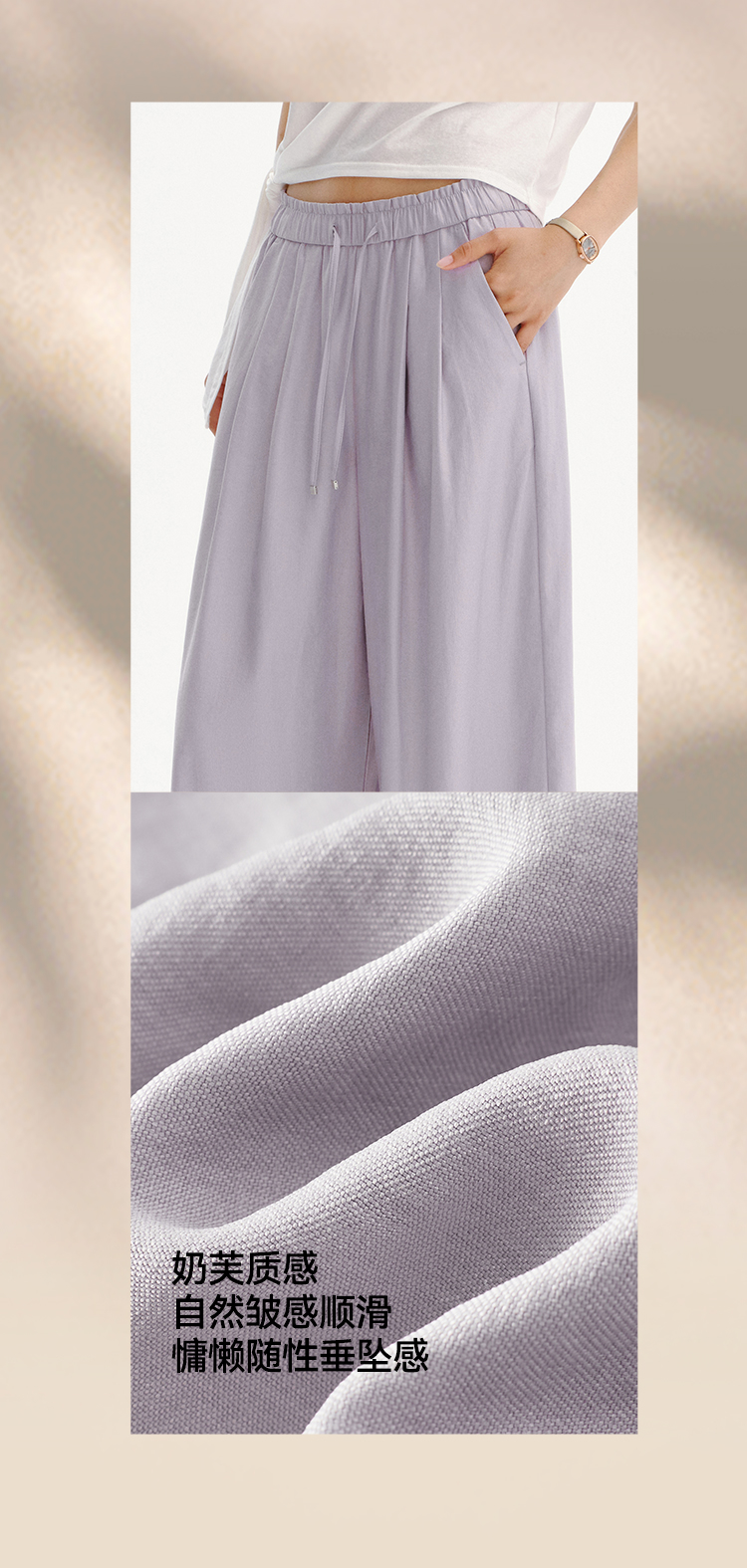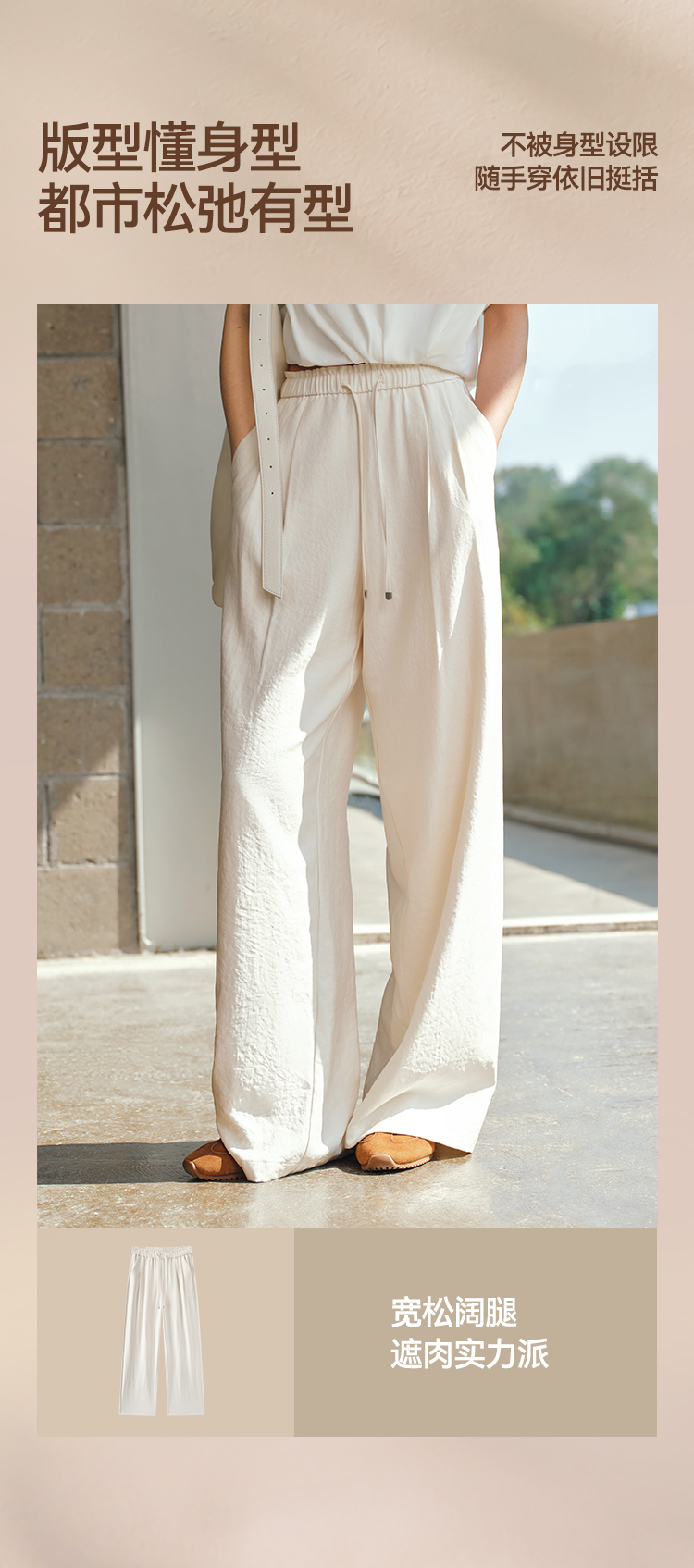商场同款|森马休闲裤女夏打褶宽松肌理阔腿裤花边2026新款奶芙裤