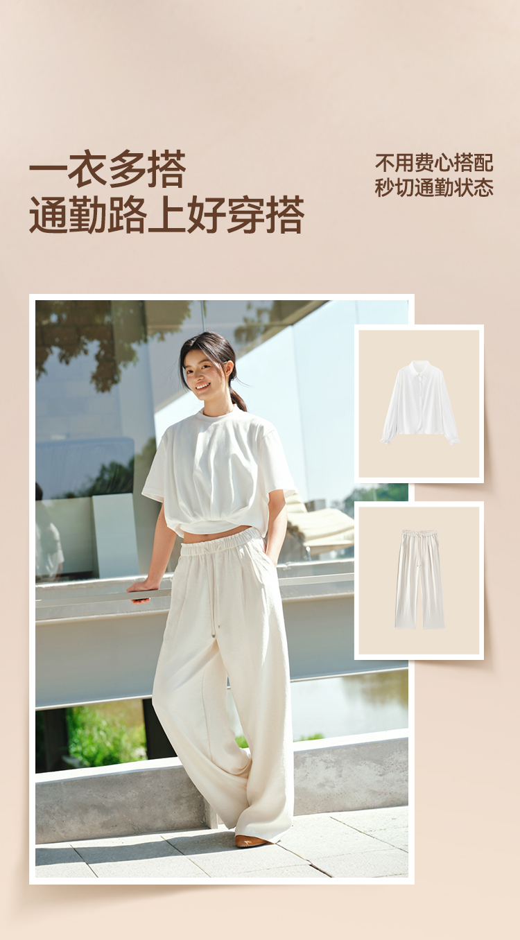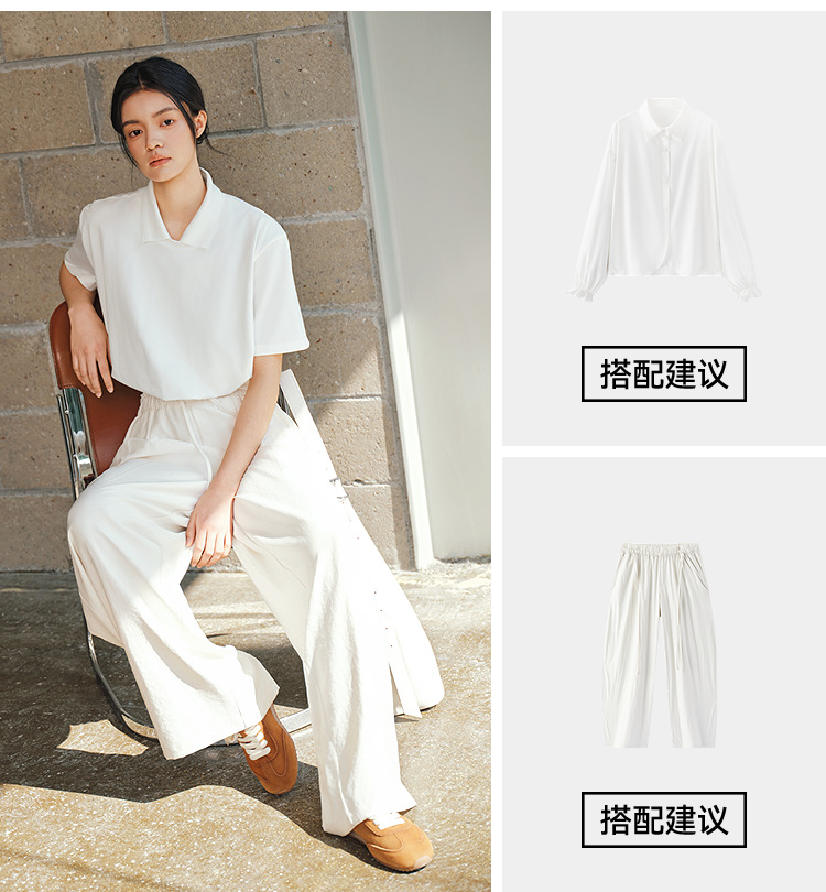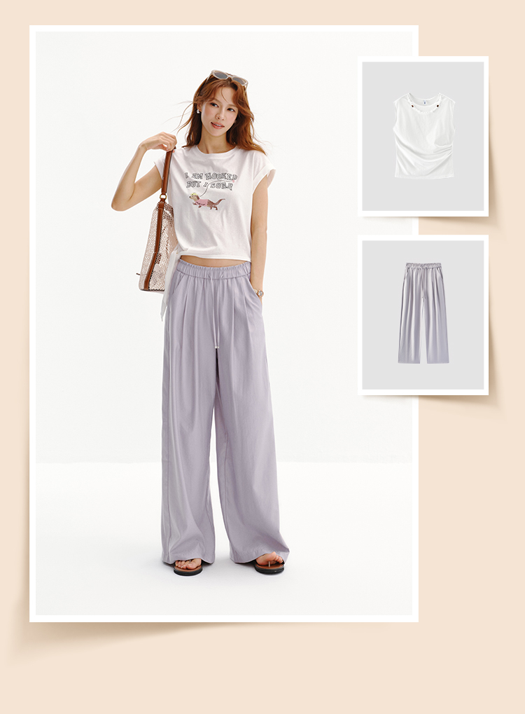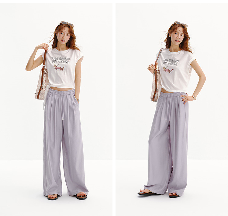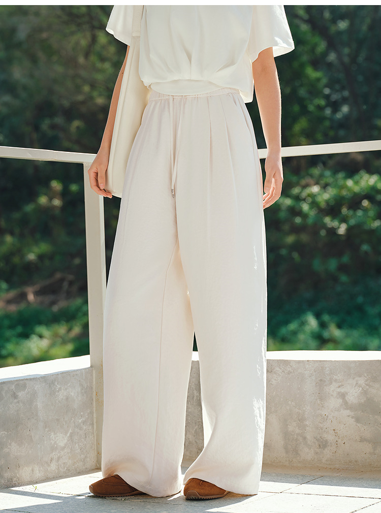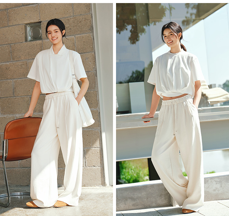 商场同款|森马休闲裤女夏打褶宽松肌理阔腿裤花边2026新款奶芙裤