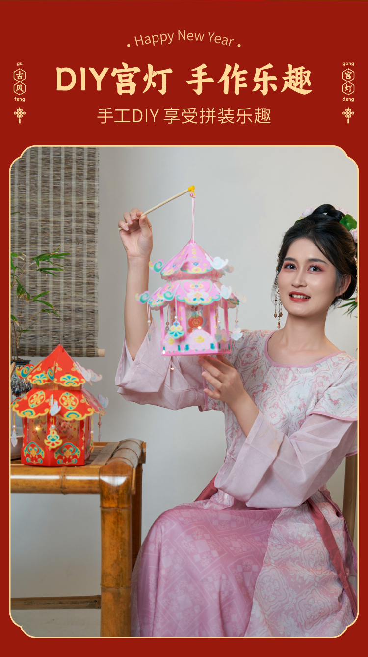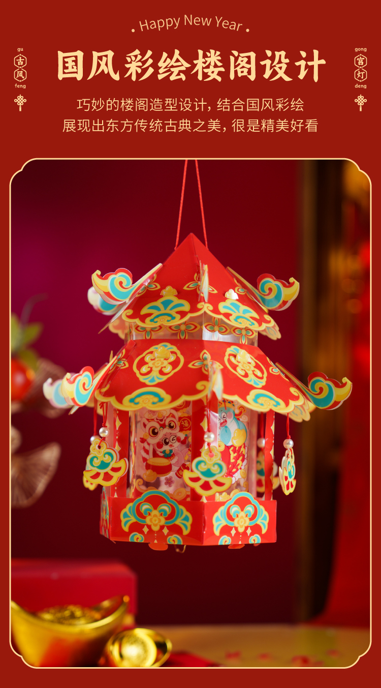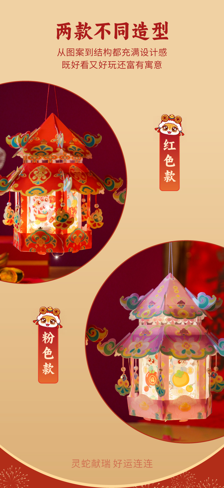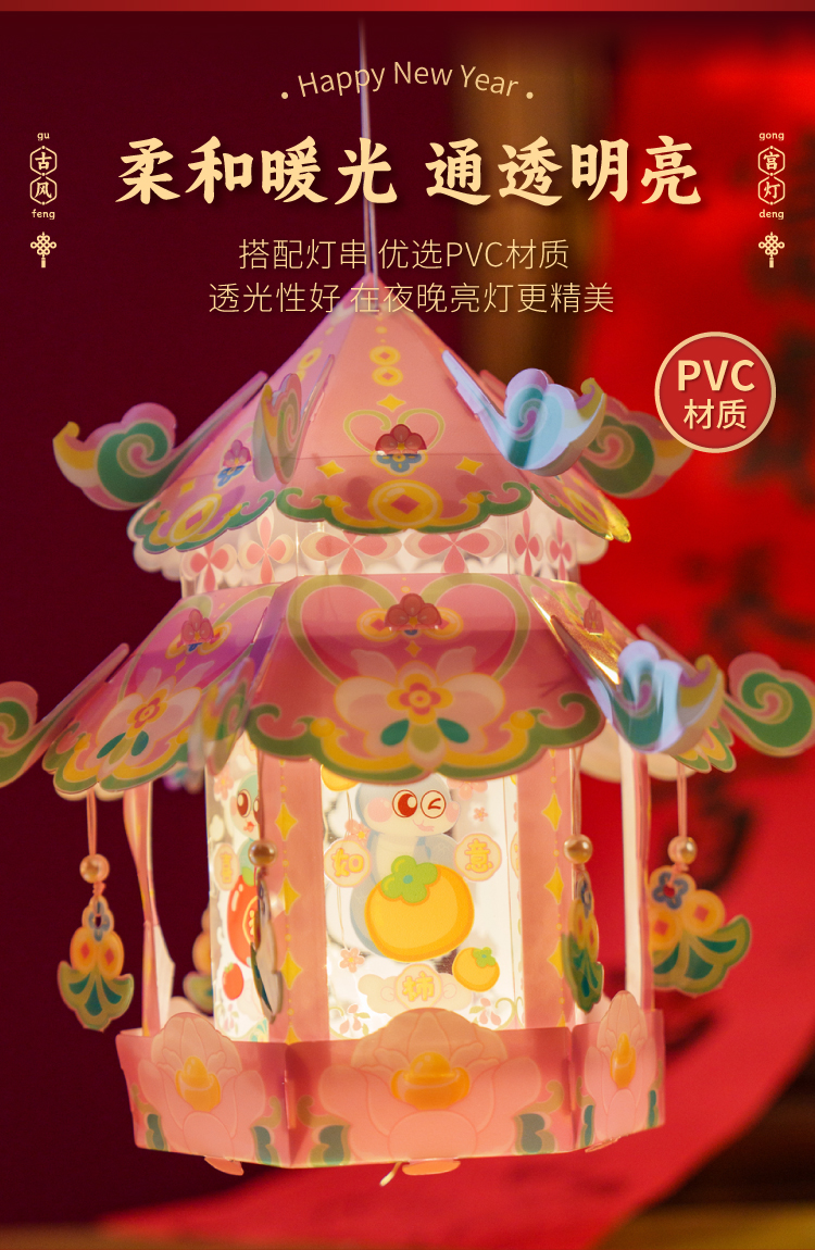 【MEIKE新年】2025蛇年新年元旦春节羊角亭宫灯手工diy灯笼儿童材料包古风花灯