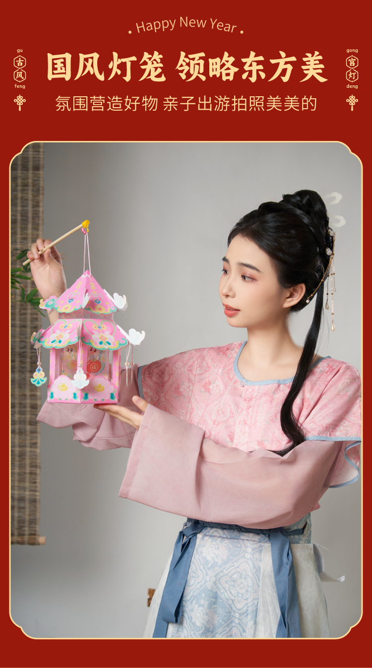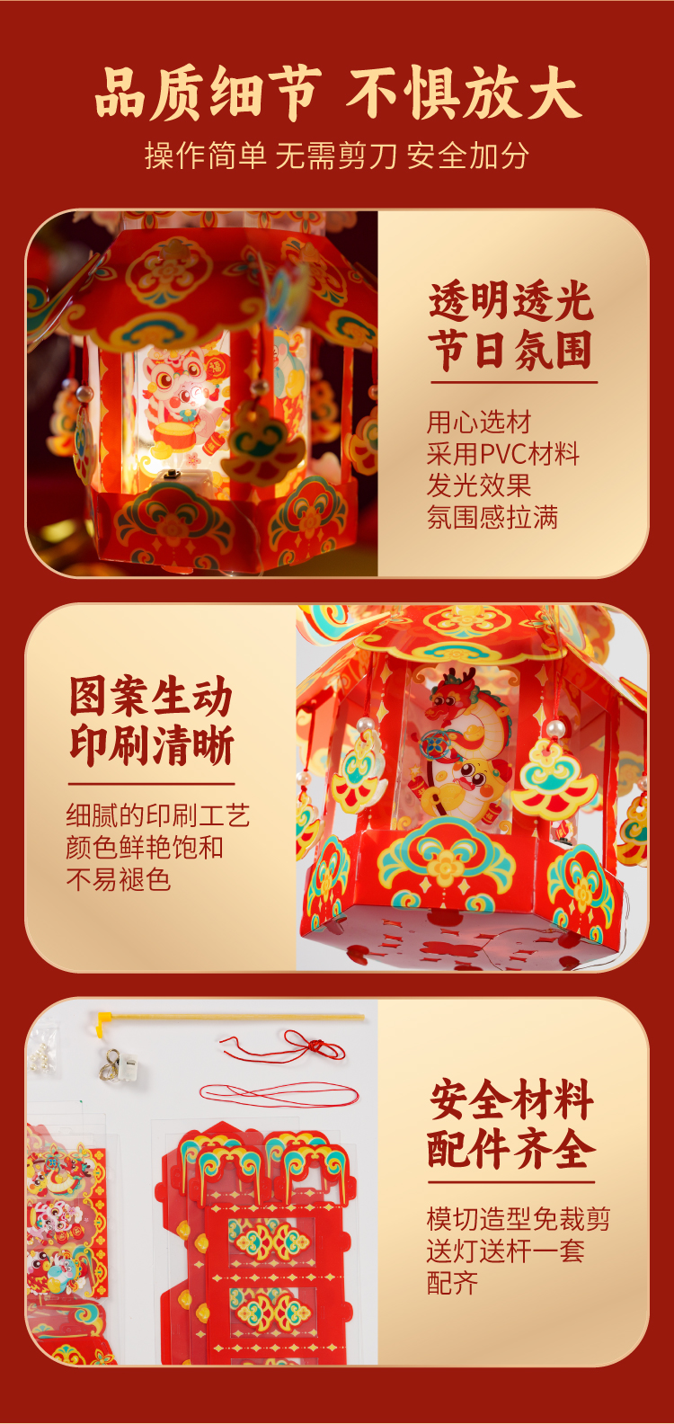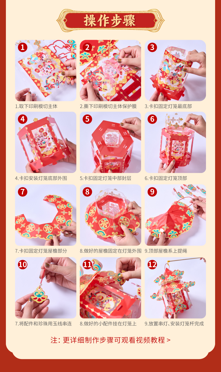 【MEIKE新年】2025蛇年新年元旦春节羊角亭宫灯手工diy灯笼儿童材料包古风花灯