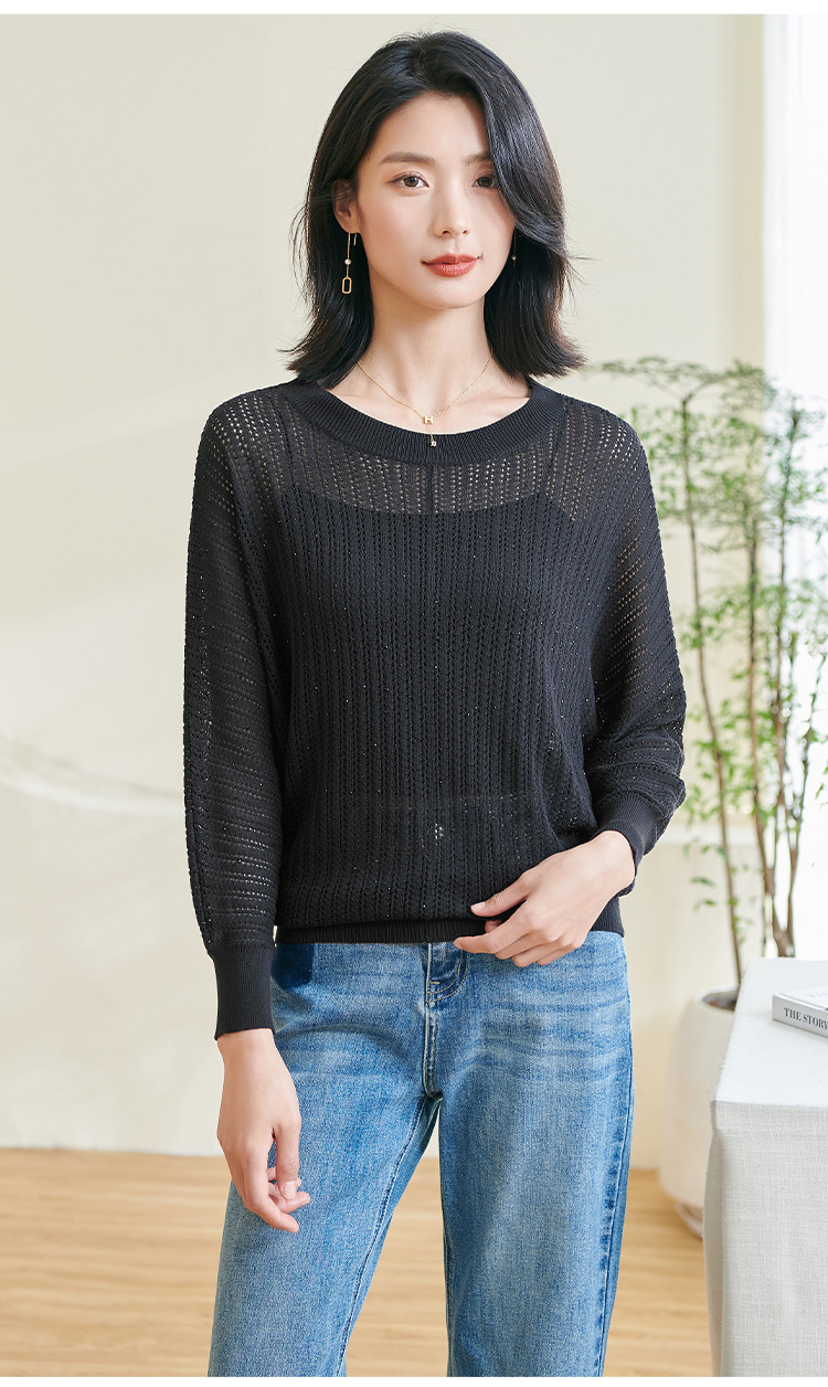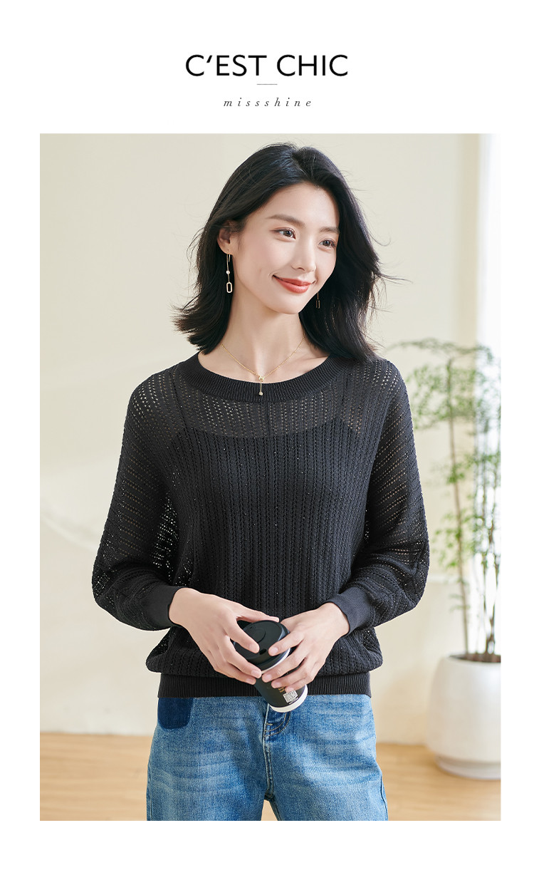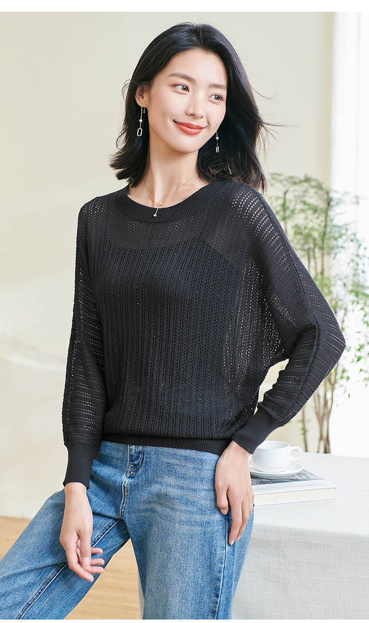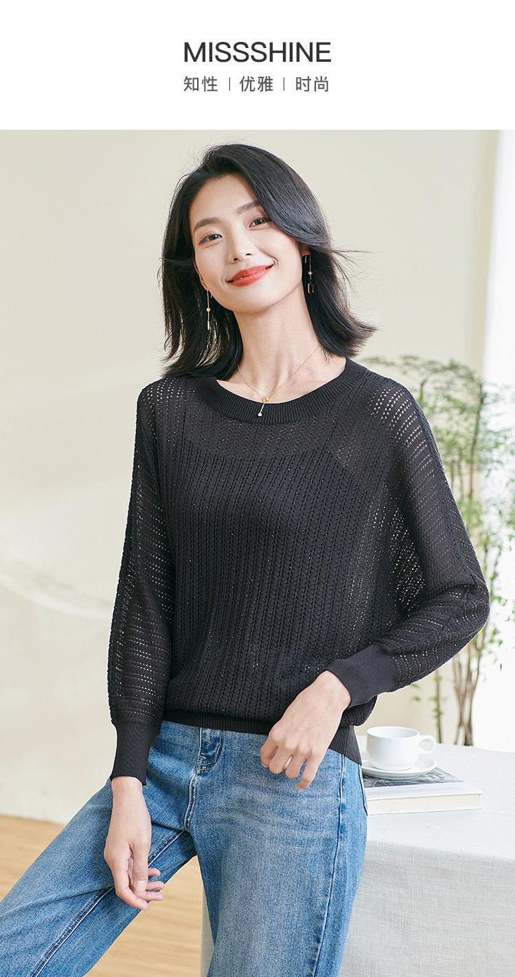 米思阳【蝙蝠袖罩衫】2026春季新款时尚气质显瘦半透针织衫空调衫0475