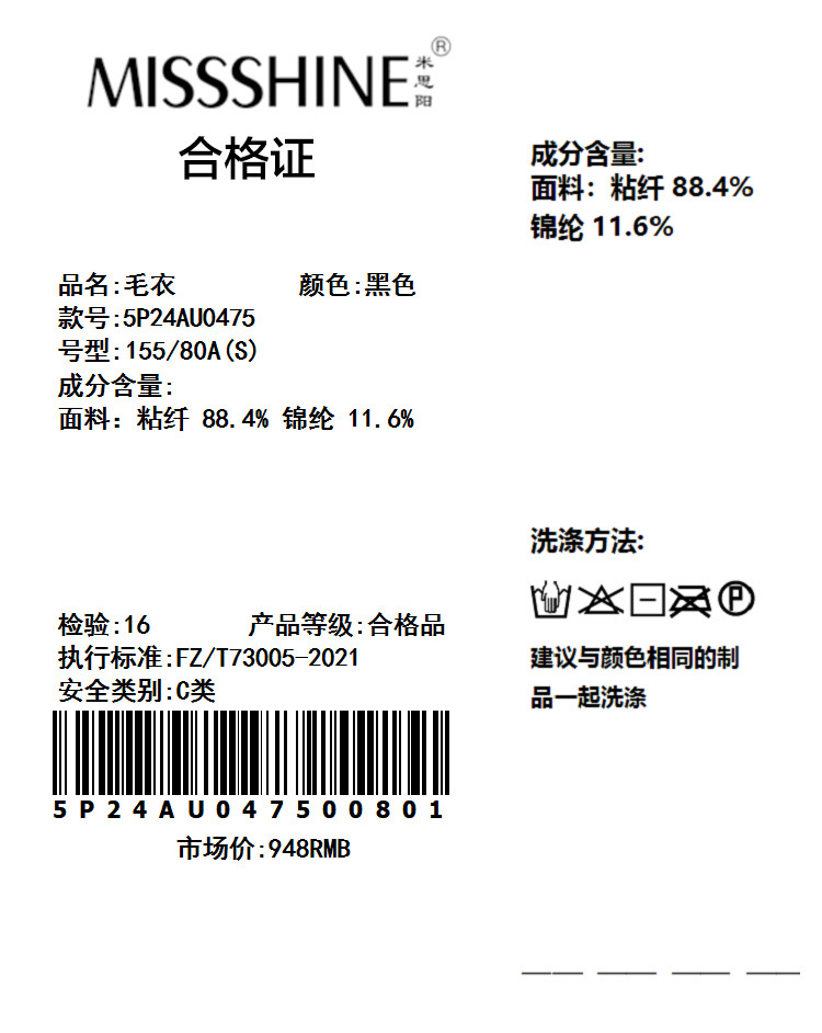 面料:粘纤 88.4% 锦纶 11.6%,