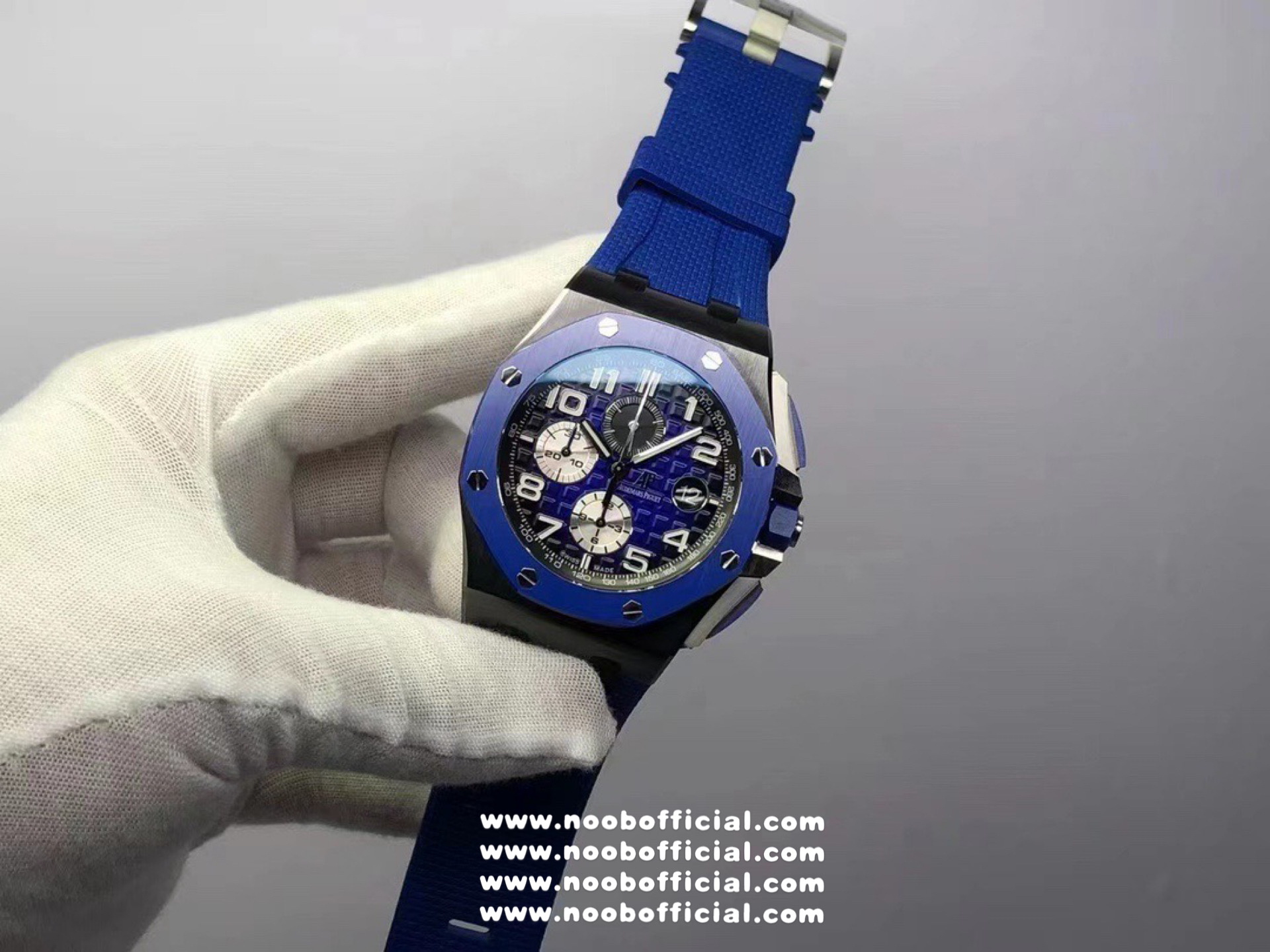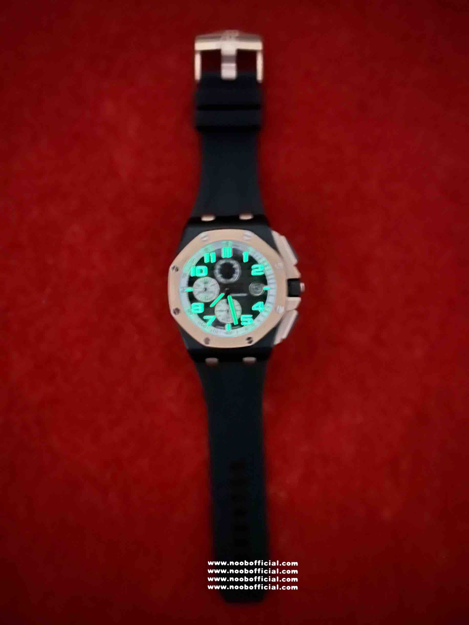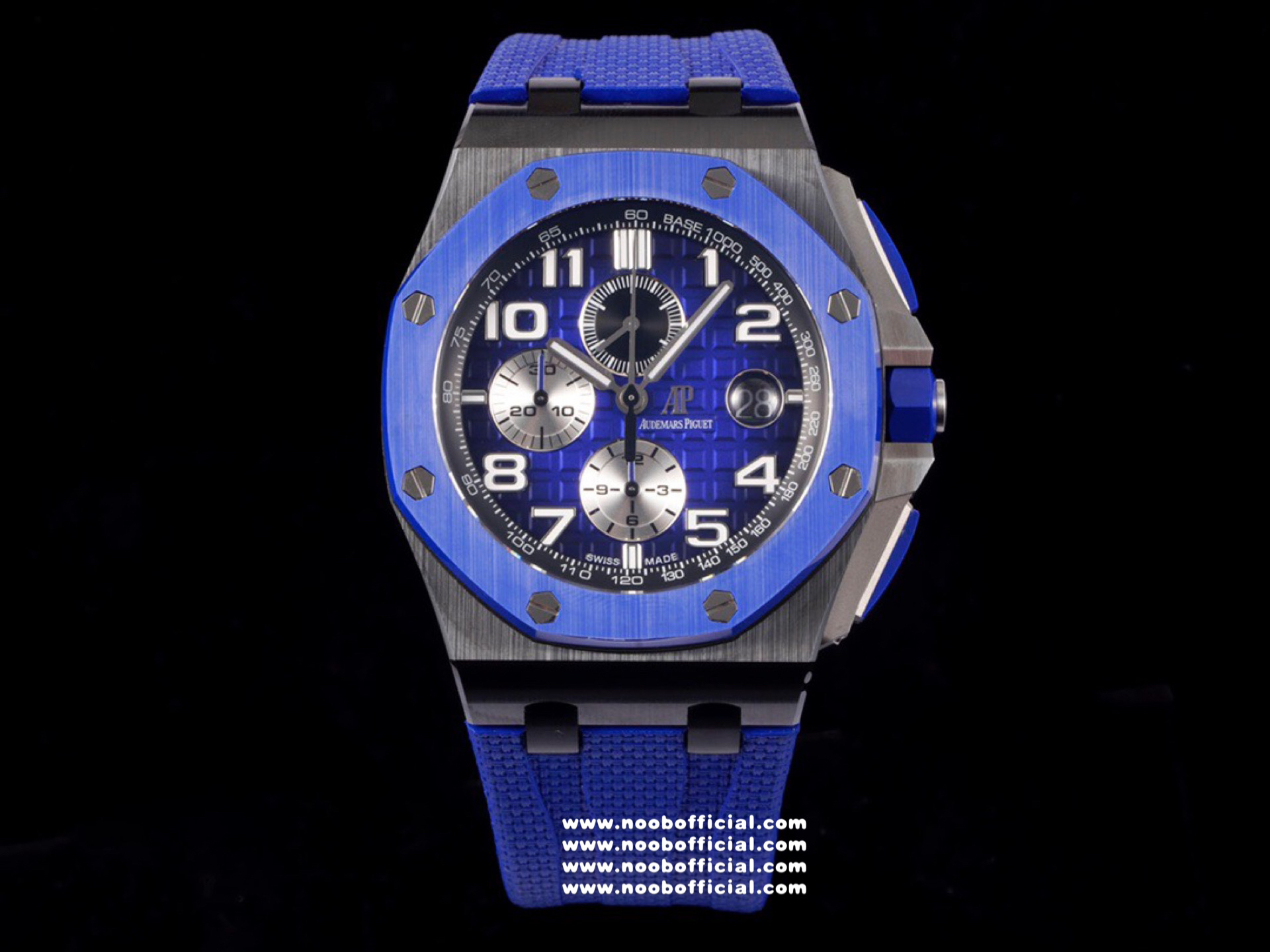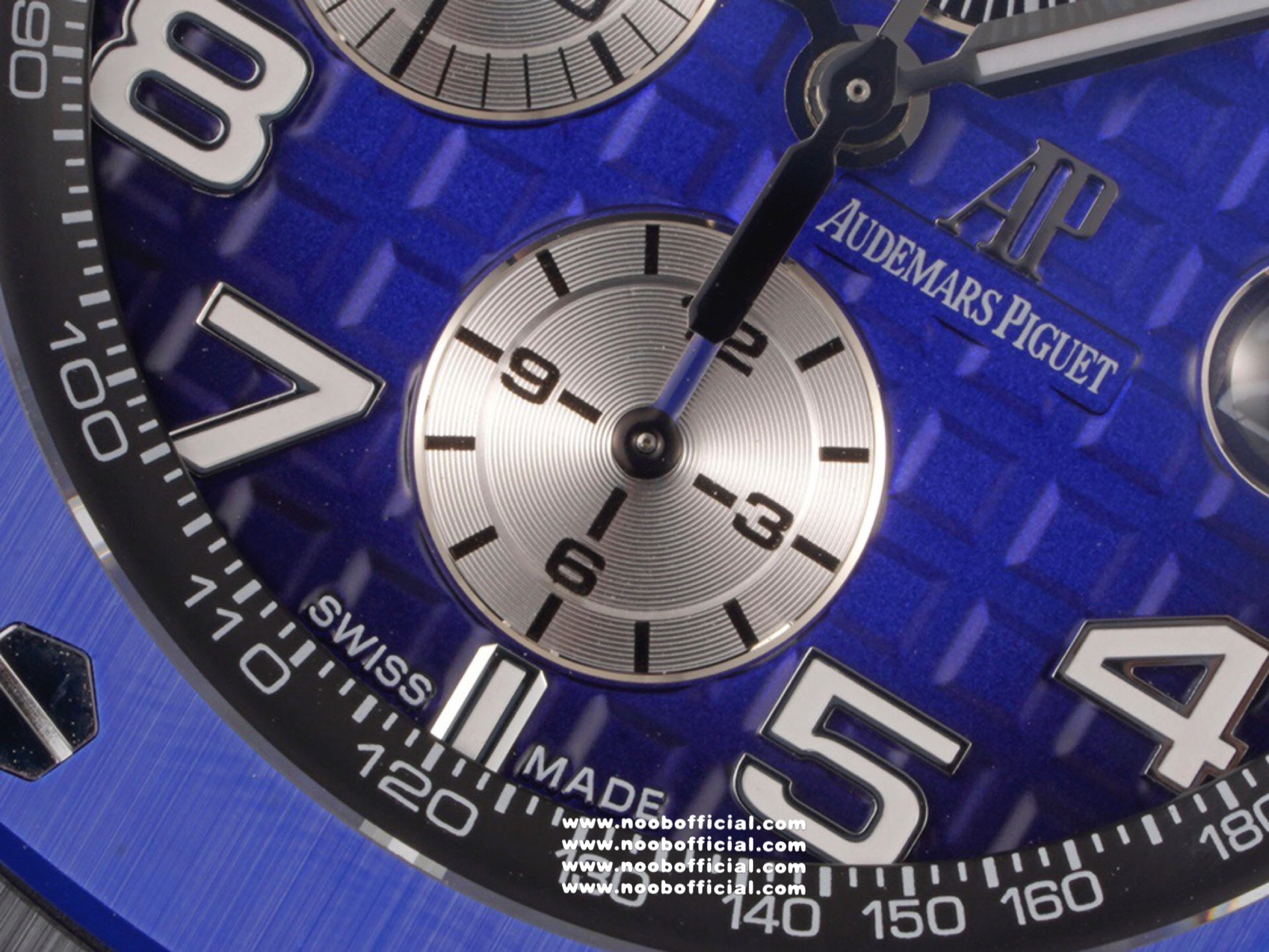 革命性的突破,划时代的产品,Noob MakerFactory 彩色陶瓷横空出世!爱彼皇家橡树离岸型26405系列彩色陶瓷腕表。工厂引用全新的彩色陶瓷锻造技术,表壳与圈口的选料,不惜重本使用日本进口的氧化锆,无需任何颜料,以超高的压力与超高的温度锻造,形成超高密度的彩色陶瓷,再经过百里挑一,确保每一个成品都与原版毫无色差,真正做到不惧任何口嗨者与键盘侠的鸡蛋里挑骨头!CNC级别的打磨,将整一个表壳的边边角角完美处理,即使陶瓷,也做到毫不割手。圈口的拉丝,经过顶级的打磨技术,做到每一丝每一线都毫无断续,每一颗六角螺丝都与表框处在同一平面,拒绝一丝一毫的凸显与凹陷,诠释了何为顶级的复刻工艺!表盘以爱彼经典的大格纹为背景,一个个层次分明的方格排列,经过完美的打磨,将尽善尽美体现得淋漓尽致。三个小表盘凸显于表壳之上,六点位跟九点位的绿色和蓝色表针十分耀眼,十二点位的小秒盘,每一个小圆圈都做到排列有序。三点位的日历表盘,在蓝宝石玻璃凹透镜的作用下,TPE扩大效果与原版一般无二。每一根大小表针,无论从各个角度来看都没有出现毛刺现象,这一点解决了大部分强迫症表友一直存在的烦恼!刻度与表针中间部位都采用瑞士进口夜光粉,每一个个体都做到手工填充,均匀饱满度是机器填充远远比拟不了的,亮度与发光颜色与原版几乎一致!机芯方面采用7750改3126的计时机芯,十二位的小秒,六点位和九点位的12小时计时与30分钟计时,完美的还原了原版的所有功能,经过团队的精密打磨,大大提升了7750基础机芯的稳定性,缓解了一直以来计时机芯款式空有其表的尴尬现象!做到无可挑剔,堪称天花板级别,欢迎广大表友品鉴!