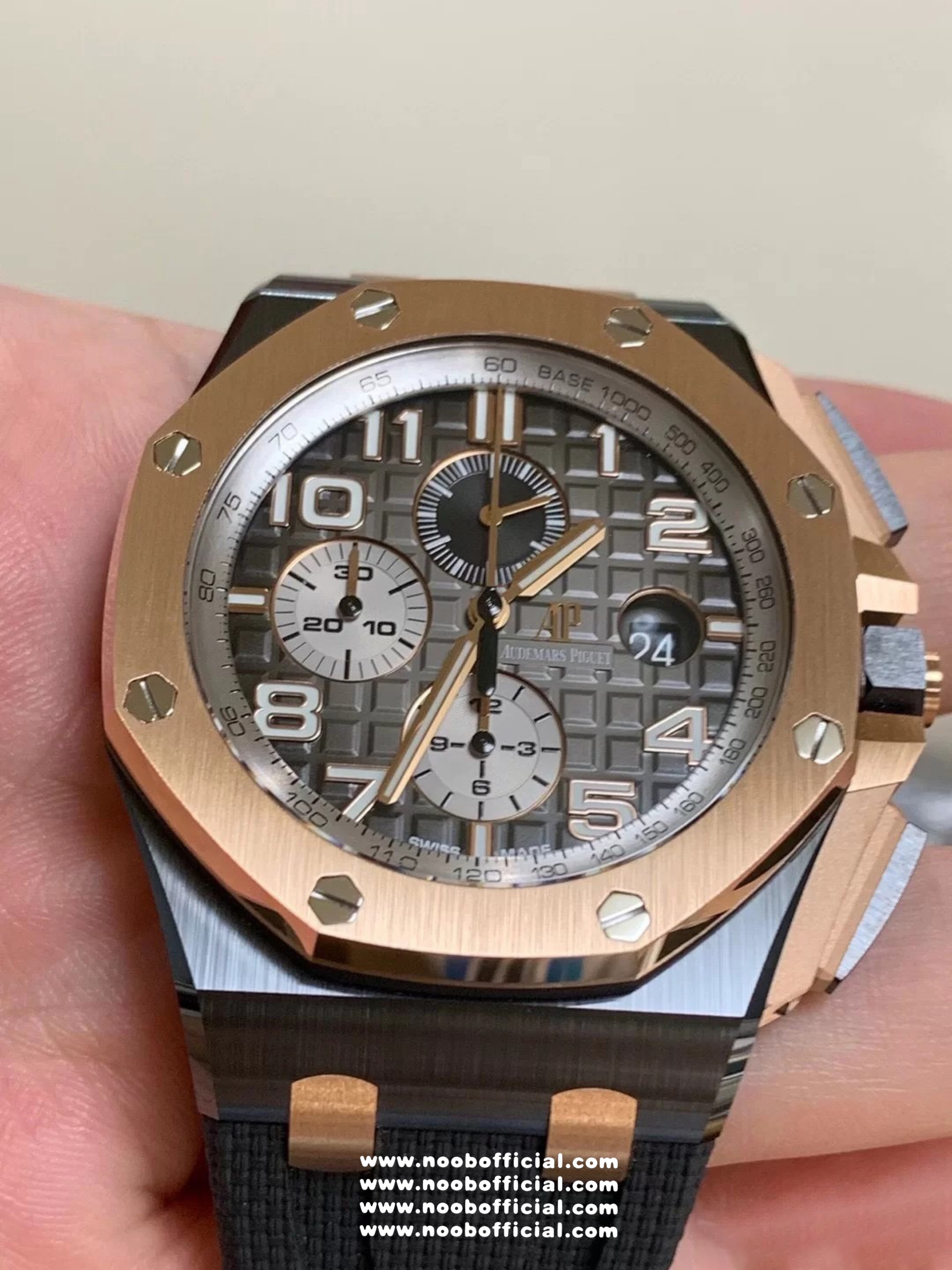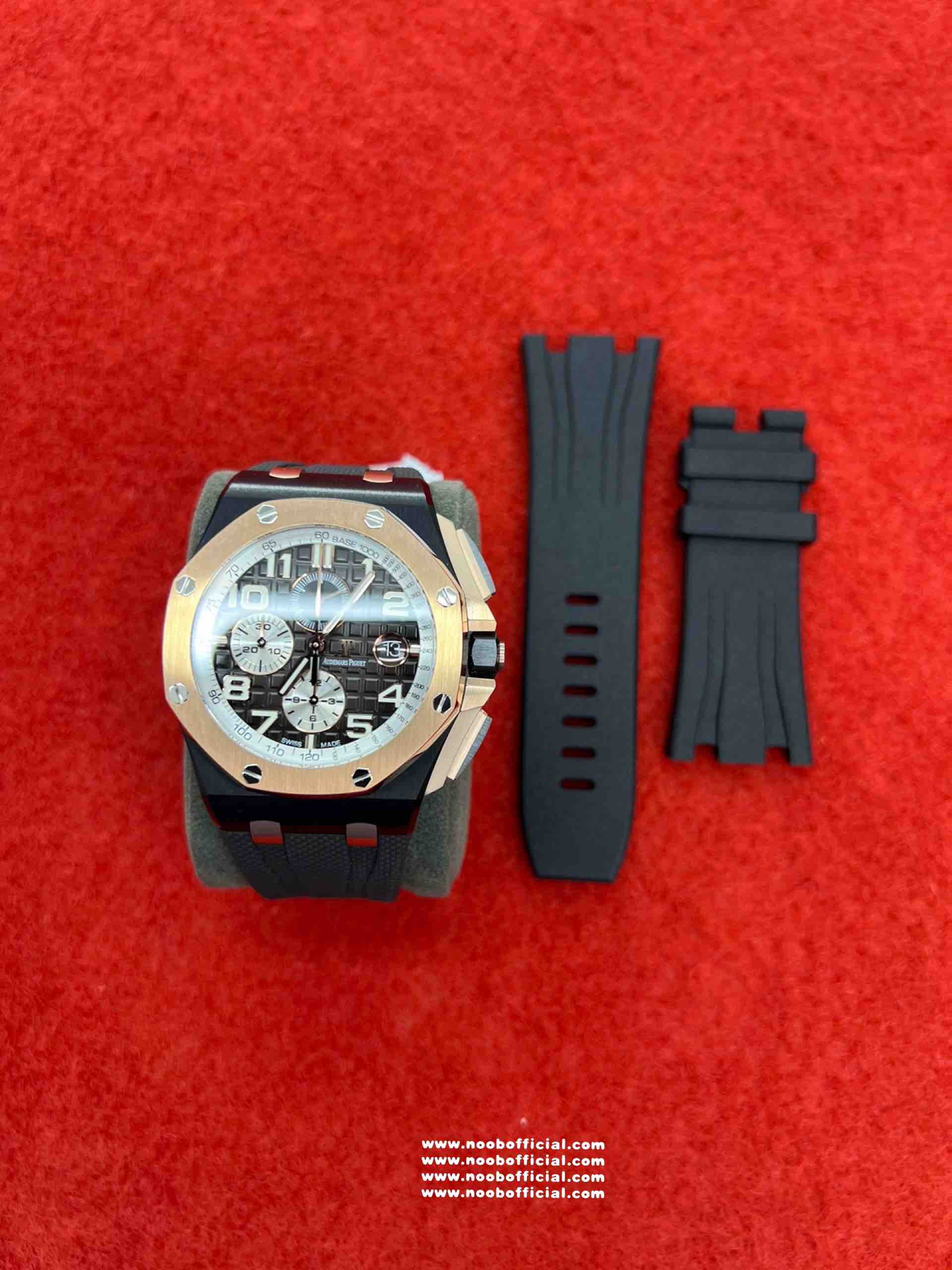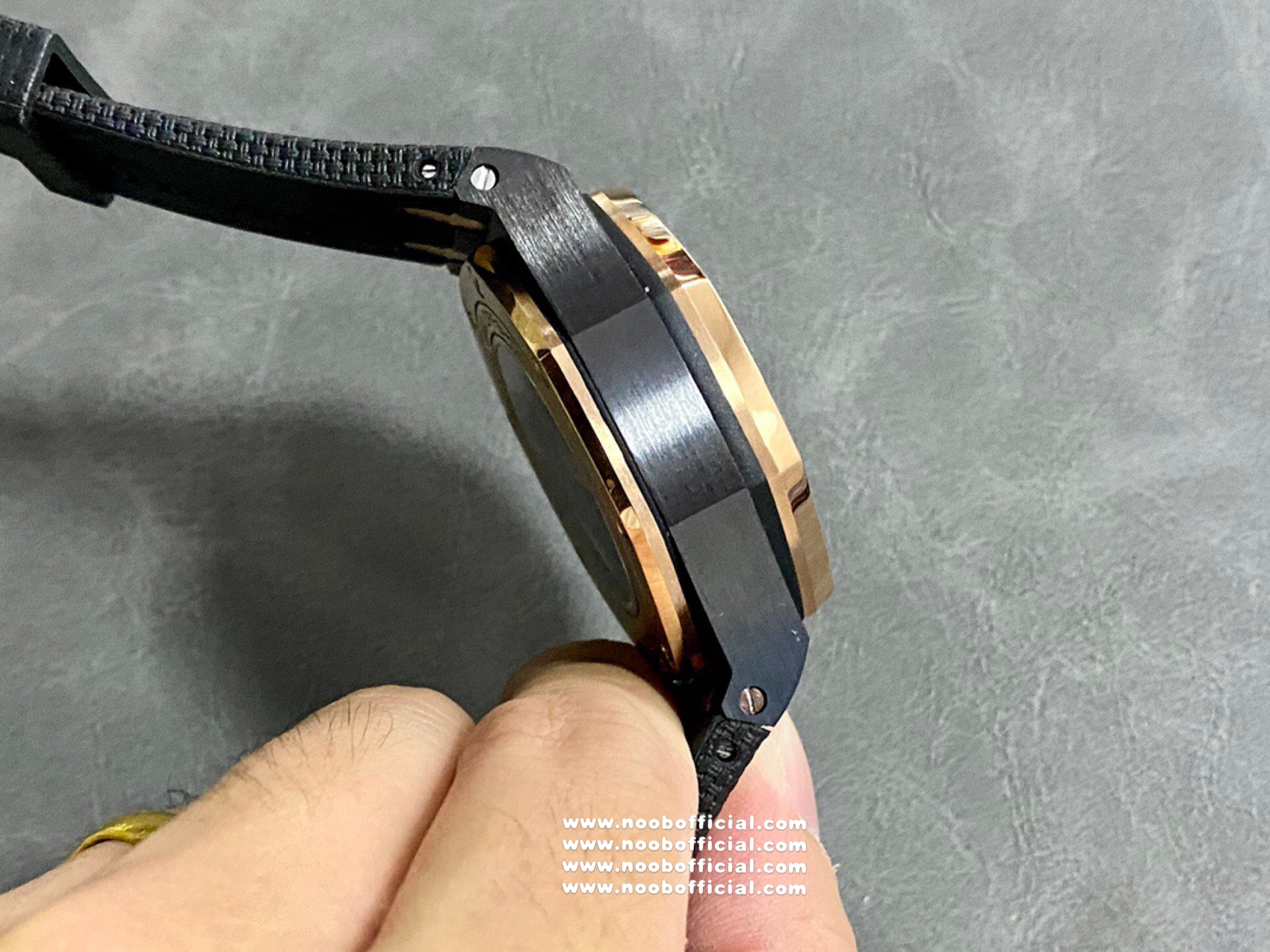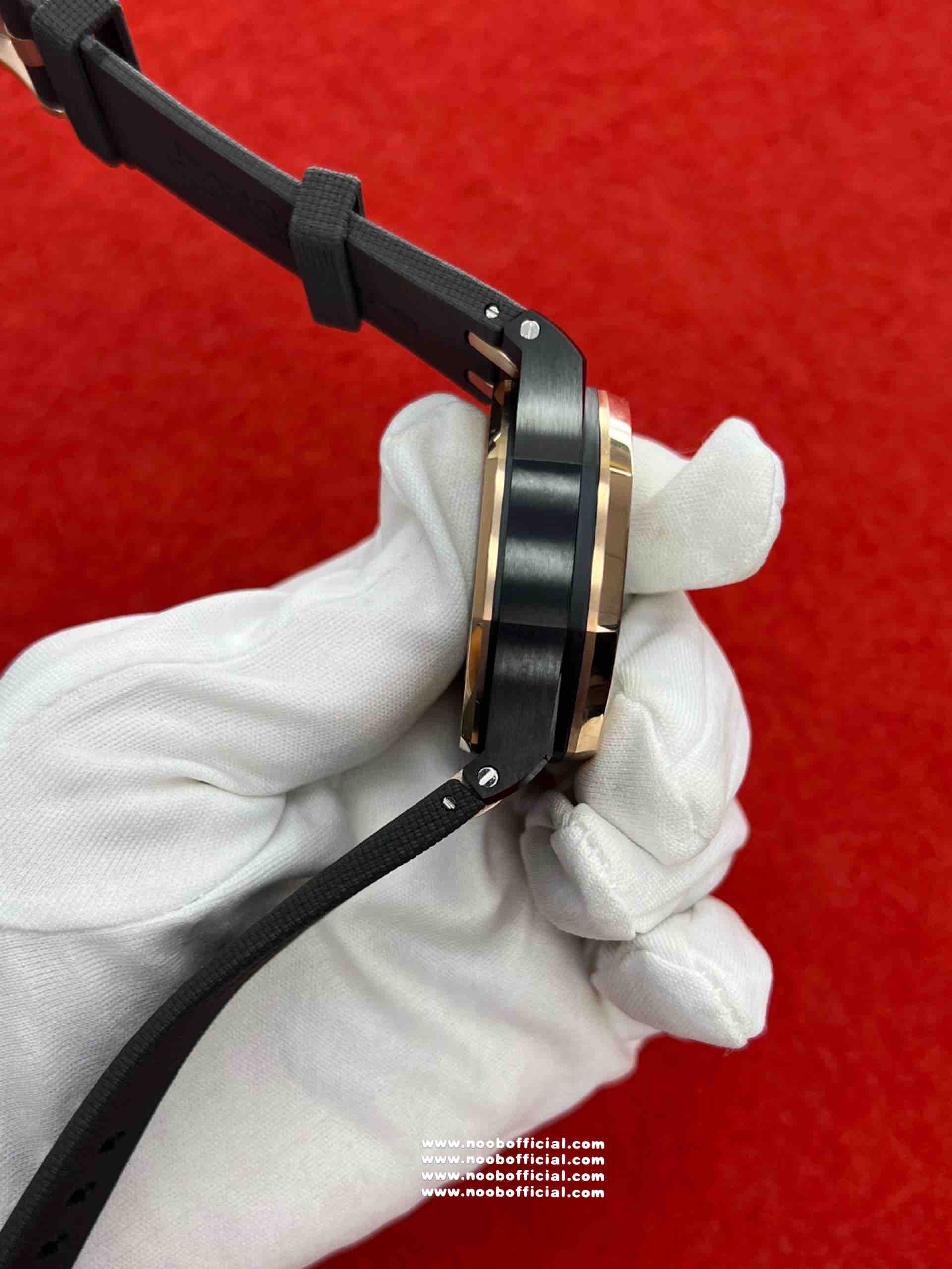 革命性的突破,划时代的产品,Noob MakerFactory 彩色陶瓷横空出世!爱彼皇家橡树离岸型26405系列彩色陶瓷腕表。工厂引用全新的彩色陶瓷锻造技术,表壳与圈口的选料,不惜重本使用日本进口的氧化锆,无需任何颜料,以超高的压力与超高的温度锻造,形成超高密度的彩色陶瓷,再经过百里挑一,确保每一个成品都与原版毫无色差,真正做到不惧任何口嗨者与键盘侠的鸡蛋里挑骨头!CNC级别的打磨,将整一个表壳的边边角角完美处理,即使陶瓷,也做到毫不割手。圈口的拉丝,经过顶级的打磨技术,做到每一丝每一线都毫无断续,每一颗六角螺丝都与表框处在同一平面,拒绝一丝一毫的凸显与凹陷,诠释了何为顶级的复刻工艺!表盘以爱彼经典的大格纹为背景,一个个层次分明的方格排列,经过完美的打磨,将尽善尽美体现得淋漓尽致。三个小表盘凸显于表壳之上,六点位跟九点位的绿色和蓝色表针十分耀眼,十二点位的小秒盘,每一个小圆圈都做到排列有序。三点位的日历表盘,在蓝宝石玻璃凹透镜的作用下,TPE扩大效果与原版一般无二。每一根大小表针,无论从各个角度来看都没有出现毛刺现象,这一点解决了大部分强迫症表友一直存在的烦恼!刻度与表针中间部位都采用瑞士进口夜光粉,每一个个体都做到手工填充,均匀饱满度是机器填充远远比拟不了的,亮度与发光颜色与原版几乎一致!机芯方面采用7750改3126的计时机芯,十二位的小秒,六点位和九点位的12小时计时与30分钟计时,完美的还原了原版的所有功能,经过团队的精密打磨,大大提升了7750基础机芯的稳定性,缓解了一直以来计时机芯款式空有其表的尴尬现象!做到无可挑剔,堪称天花板级别,欢迎广大表友品鉴!