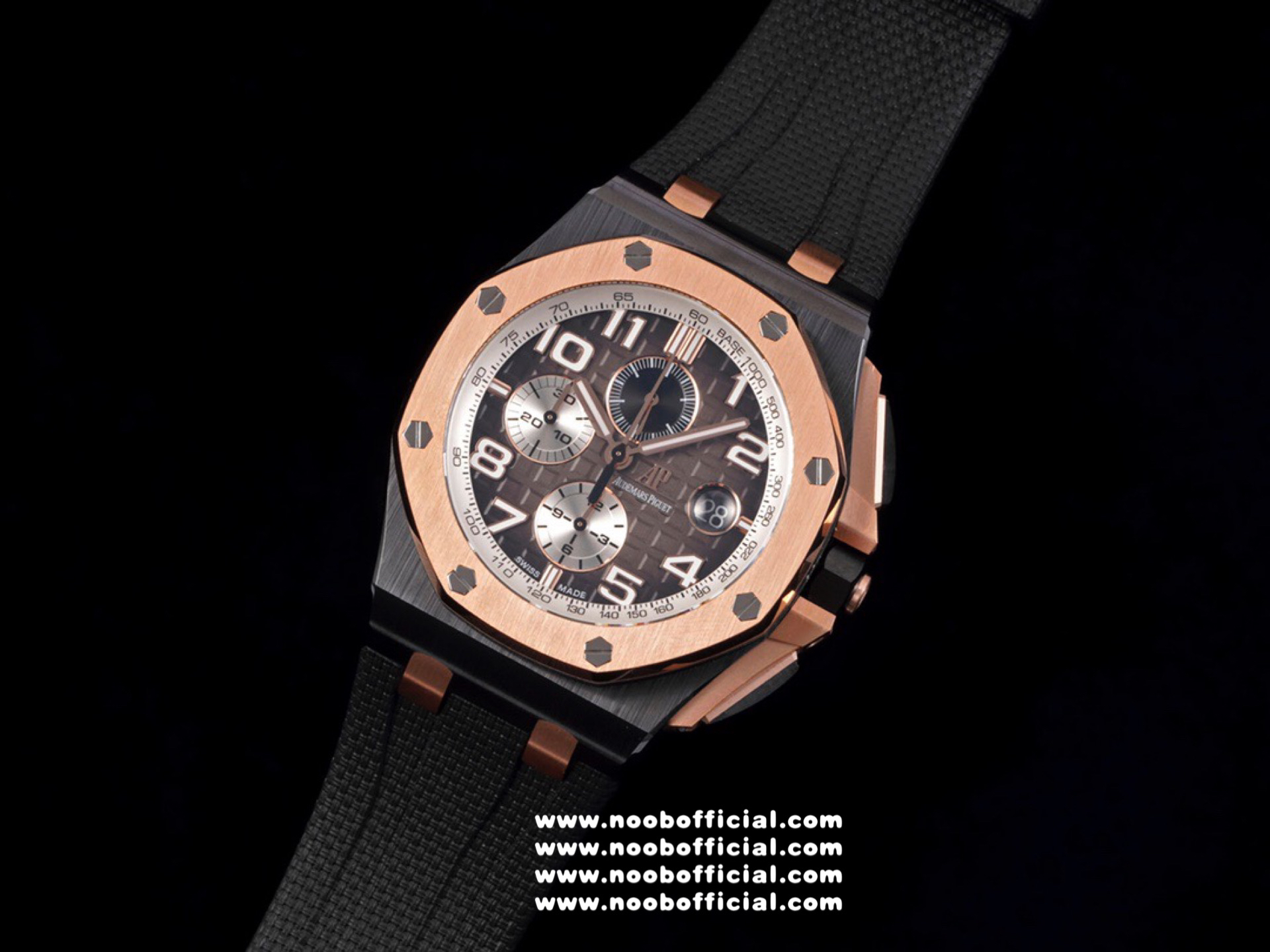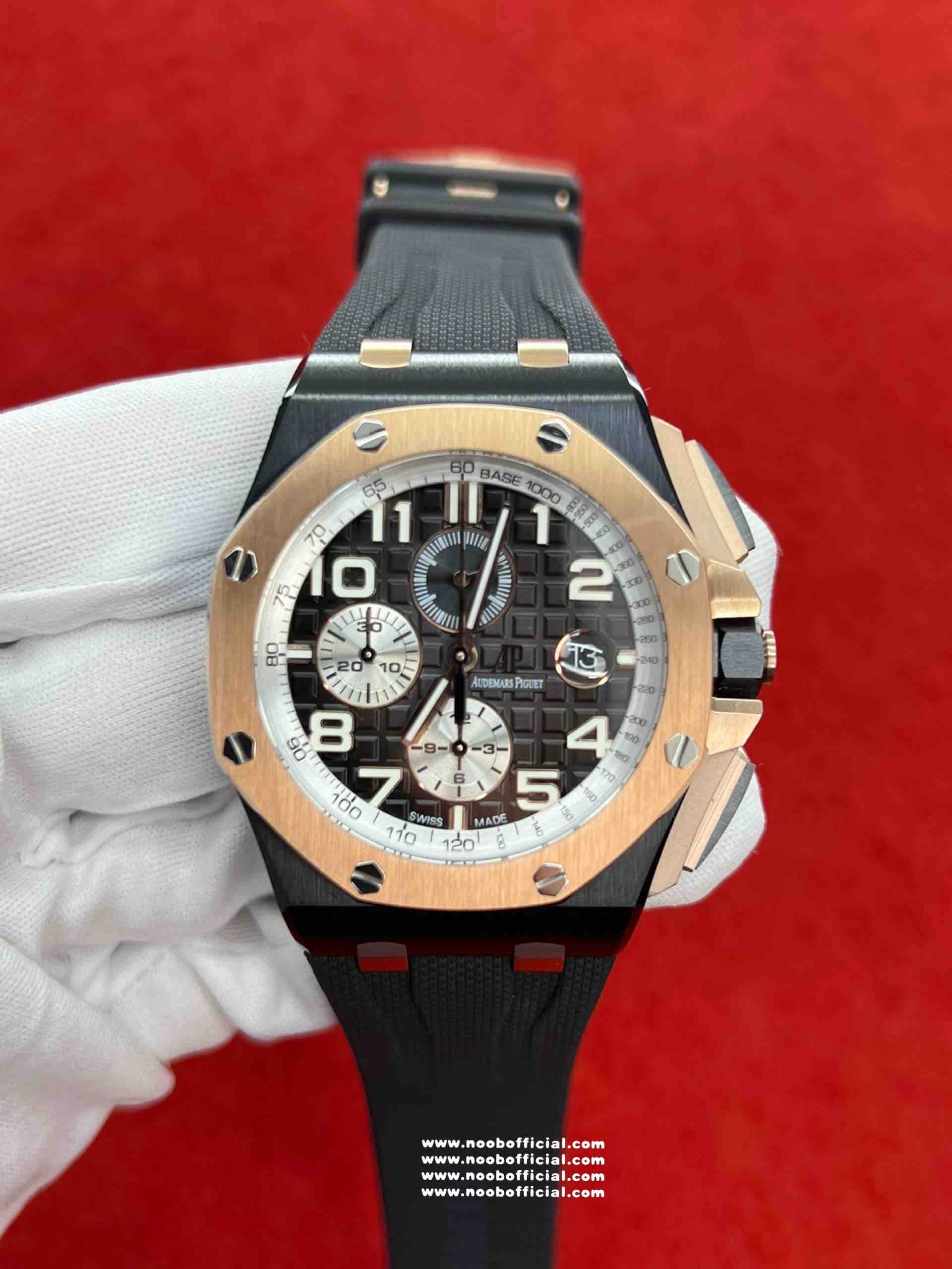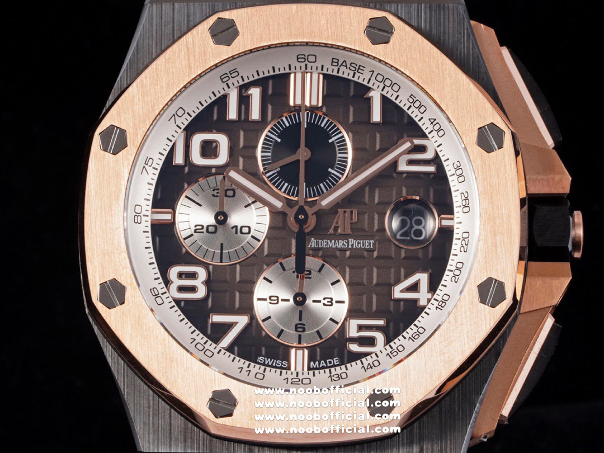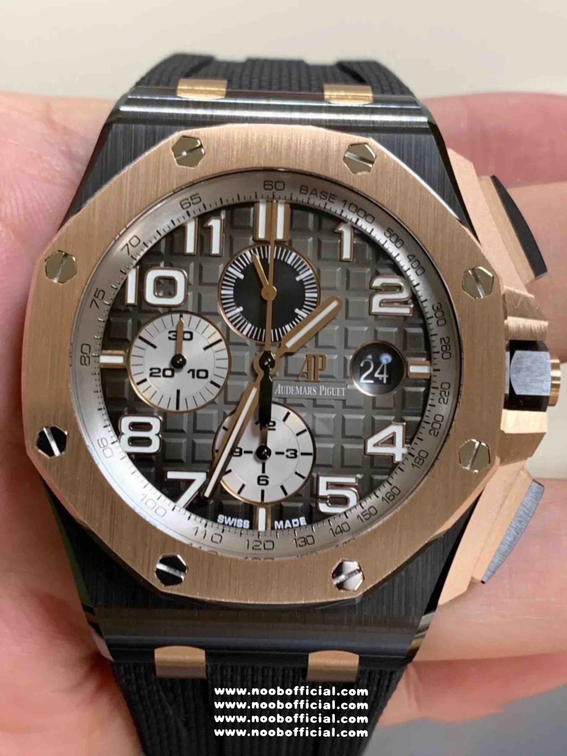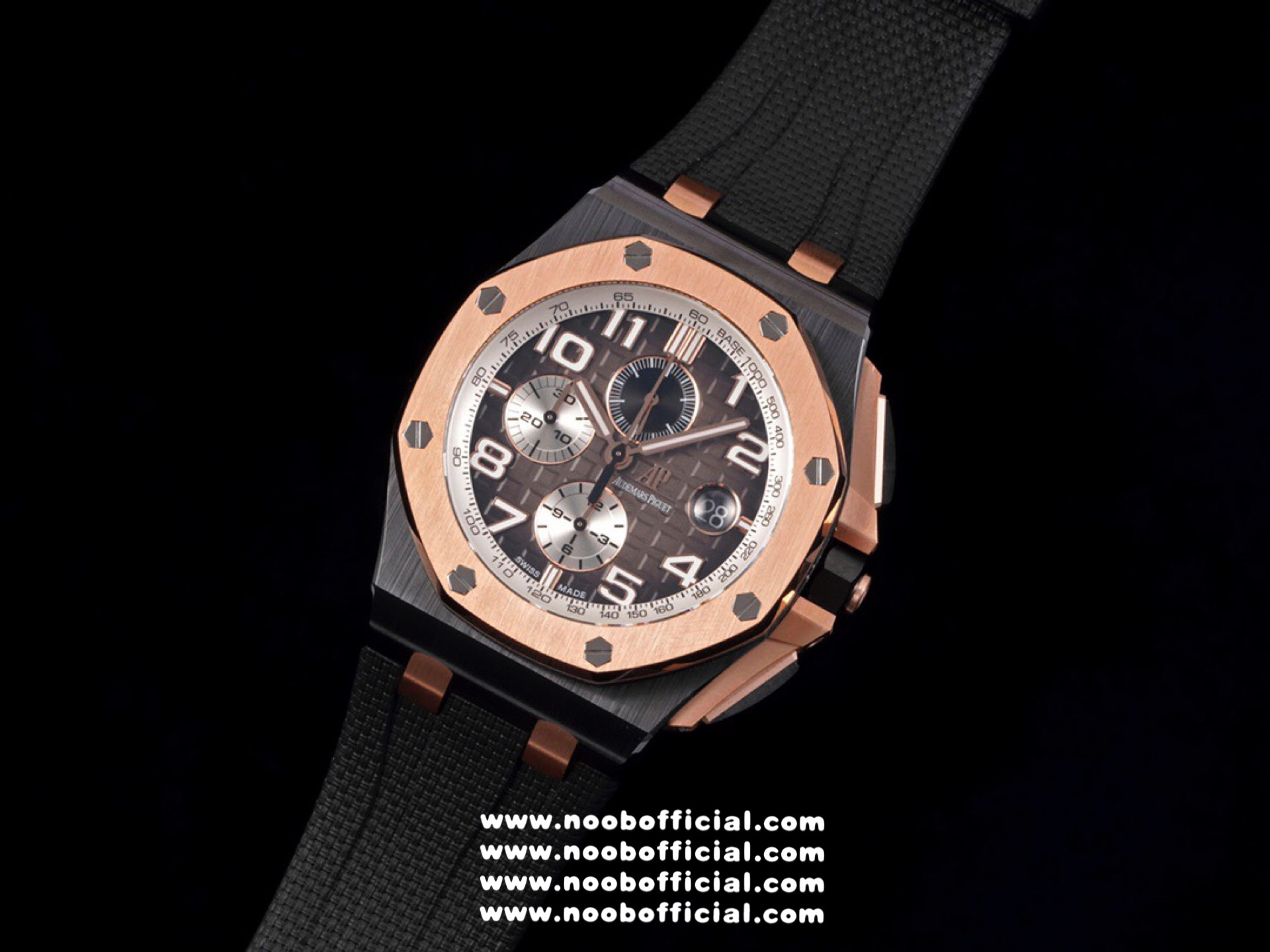 革命性的突破,划时代的产品,Noob MakerFactory 彩色陶瓷横空出世!爱彼皇家橡树离岸型26405系列彩色陶瓷腕表。工厂引用全新的彩色陶瓷锻造技术,表壳与圈口的选料,不惜重本使用日本进口的氧化锆,无需任何颜料,以超高的压力与超高的温度锻造,形成超高密度的彩色陶瓷,再经过百里挑一,确保每一个成品都与原版毫无色差,真正做到不惧任何口嗨者与键盘侠的鸡蛋里挑骨头!CNC级别的打磨,将整一个表壳的边边角角完美处理,即使陶瓷,也做到毫不割手。圈口的拉丝,经过顶级的打磨技术,做到每一丝每一线都毫无断续,每一颗六角螺丝都与表框处在同一平面,拒绝一丝一毫的凸显与凹陷,诠释了何为顶级的复刻工艺!表盘以爱彼经典的大格纹为背景,一个个层次分明的方格排列,经过完美的打磨,将尽善尽美体现得淋漓尽致。三个小表盘凸显于表壳之上,六点位跟九点位的绿色和蓝色表针十分耀眼,十二点位的小秒盘,每一个小圆圈都做到排列有序。三点位的日历表盘,在蓝宝石玻璃凹透镜的作用下,TPE扩大效果与原版一般无二。每一根大小表针,无论从各个角度来看都没有出现毛刺现象,这一点解决了大部分强迫症表友一直存在的烦恼!刻度与表针中间部位都采用瑞士进口夜光粉,每一个个体都做到手工填充,均匀饱满度是机器填充远远比拟不了的,亮度与发光颜色与原版几乎一致!机芯方面采用7750改3126的计时机芯,十二位的小秒,六点位和九点位的12小时计时与30分钟计时,完美的还原了原版的所有功能,经过团队的精密打磨,大大提升了7750基础机芯的稳定性,缓解了一直以来计时机芯款式空有其表的尴尬现象!做到无可挑剔,堪称天花板级别,欢迎广大表友品鉴!