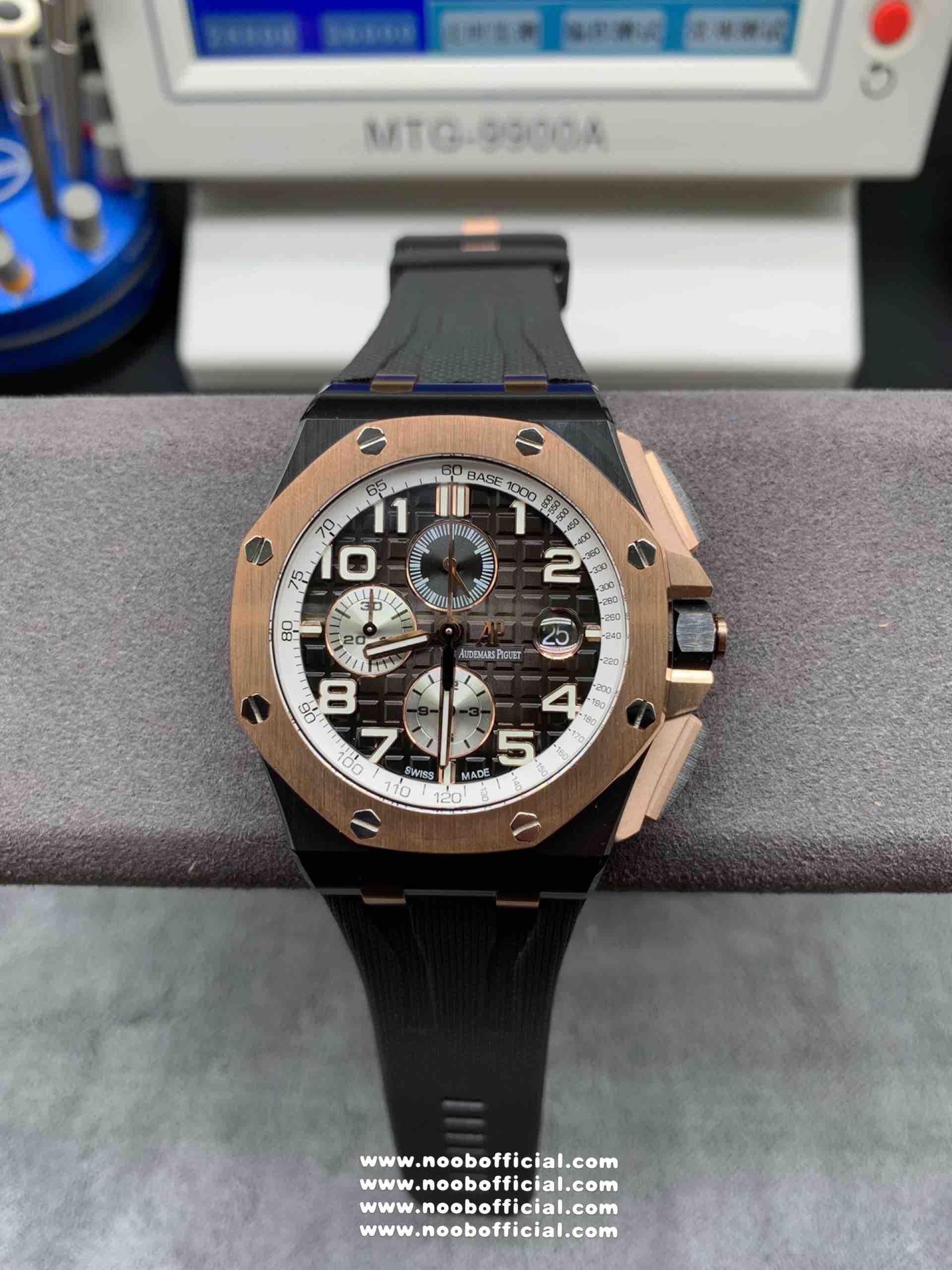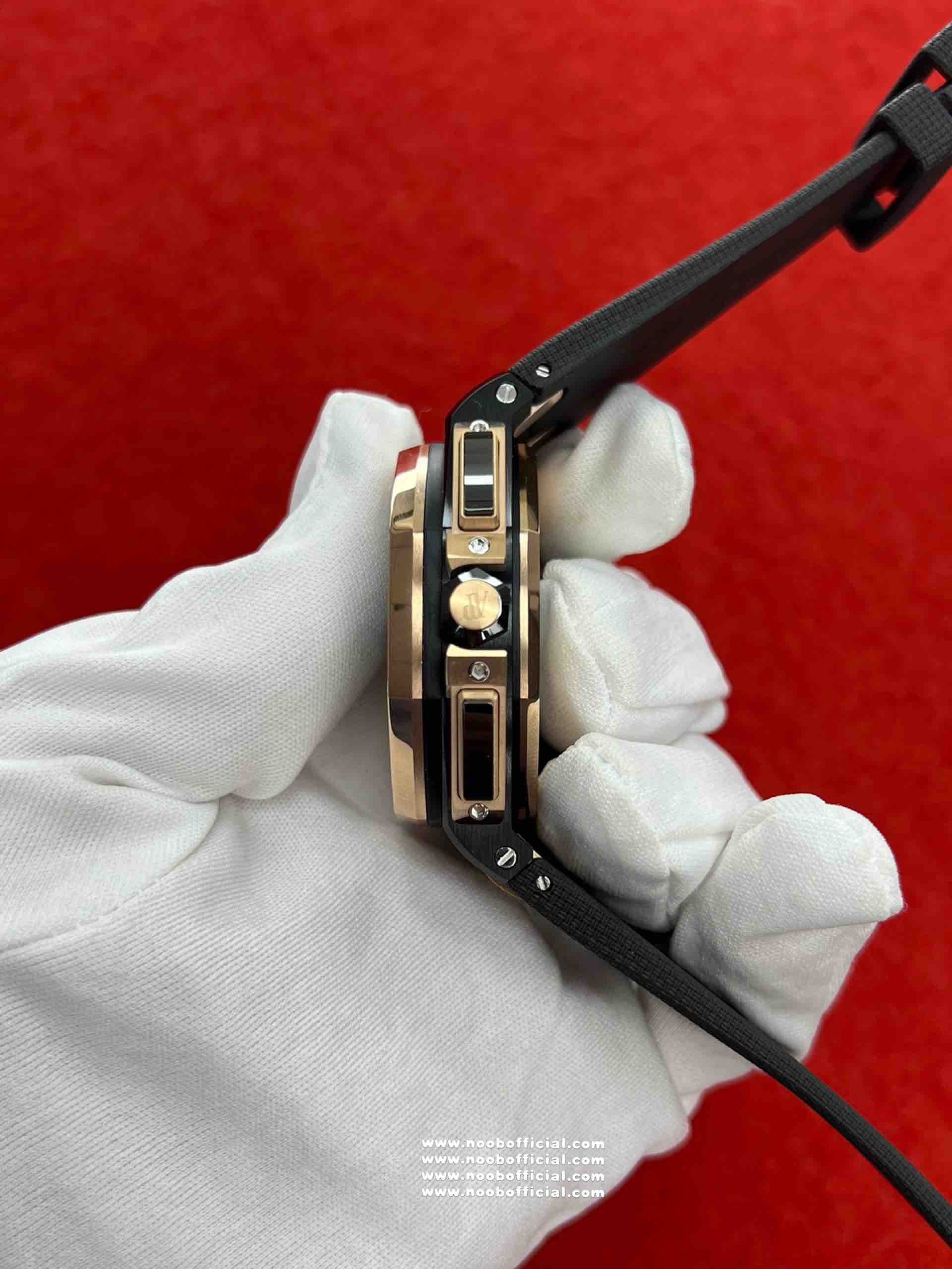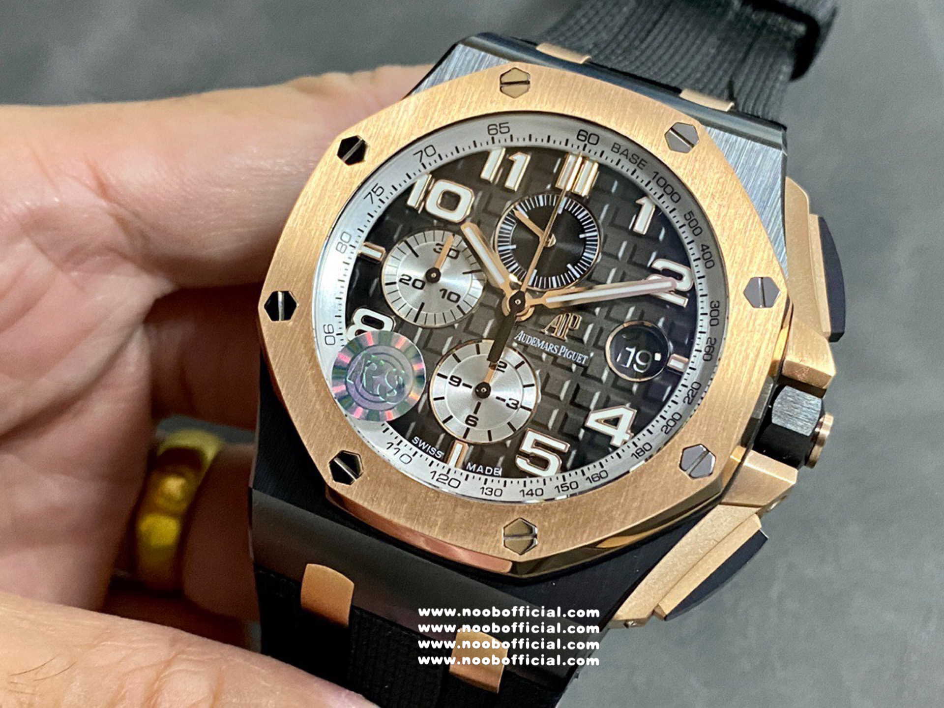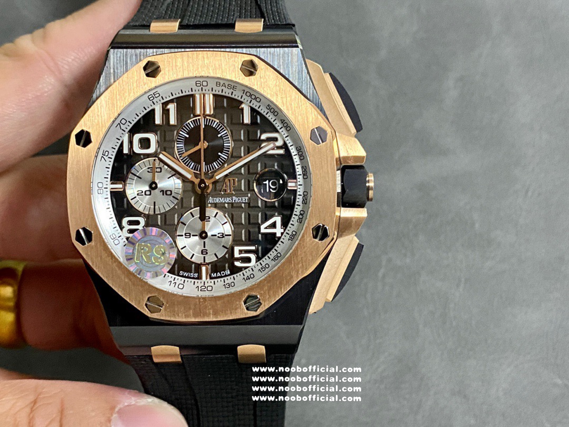 革命性的突破,划时代的产品,Noob MakerFactory 彩色陶瓷横空出世!爱彼皇家橡树离岸型26405系列彩色陶瓷腕表。工厂引用全新的彩色陶瓷锻造技术,表壳与圈口的选料,不惜重本使用日本进口的氧化锆,无需任何颜料,以超高的压力与超高的温度锻造,形成超高密度的彩色陶瓷,再经过百里挑一,确保每一个成品都与原版毫无色差,真正做到不惧任何口嗨者与键盘侠的鸡蛋里挑骨头!CNC级别的打磨,将整一个表壳的边边角角完美处理,即使陶瓷,也做到毫不割手。圈口的拉丝,经过顶级的打磨技术,做到每一丝每一线都毫无断续,每一颗六角螺丝都与表框处在同一平面,拒绝一丝一毫的凸显与凹陷,诠释了何为顶级的复刻工艺!表盘以爱彼经典的大格纹为背景,一个个层次分明的方格排列,经过完美的打磨,将尽善尽美体现得淋漓尽致。三个小表盘凸显于表壳之上,六点位跟九点位的绿色和蓝色表针十分耀眼,十二点位的小秒盘,每一个小圆圈都做到排列有序。三点位的日历表盘,在蓝宝石玻璃凹透镜的作用下,TPE扩大效果与原版一般无二。每一根大小表针,无论从各个角度来看都没有出现毛刺现象,这一点解决了大部分强迫症表友一直存在的烦恼!刻度与表针中间部位都采用瑞士进口夜光粉,每一个个体都做到手工填充,均匀饱满度是机器填充远远比拟不了的,亮度与发光颜色与原版几乎一致!机芯方面采用7750改3126的计时机芯,十二位的小秒,六点位和九点位的12小时计时与30分钟计时,完美的还原了原版的所有功能,经过团队的精密打磨,大大提升了7750基础机芯的稳定性,缓解了一直以来计时机芯款式空有其表的尴尬现象!做到无可挑剔,堪称天花板级别,欢迎广大表友品鉴!