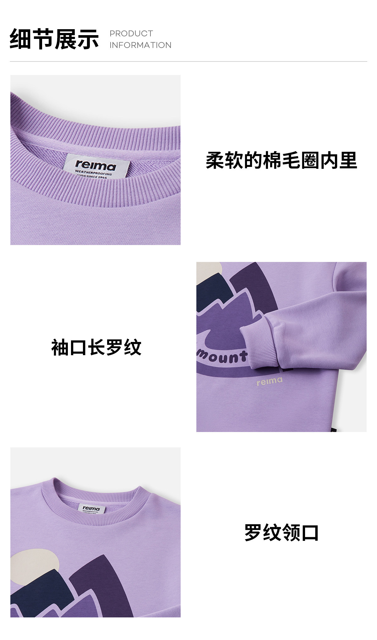 芬兰reima2026春夏新款男女儿童中童简约柔软舒适运动套头卫衣