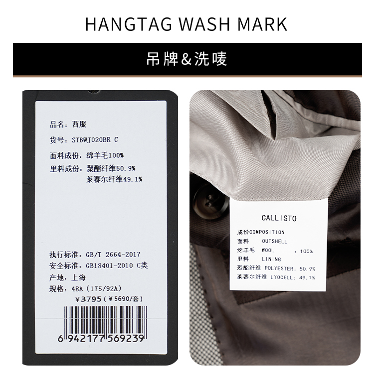 callisto咖啡色全羊毛西服 STBWJ020C