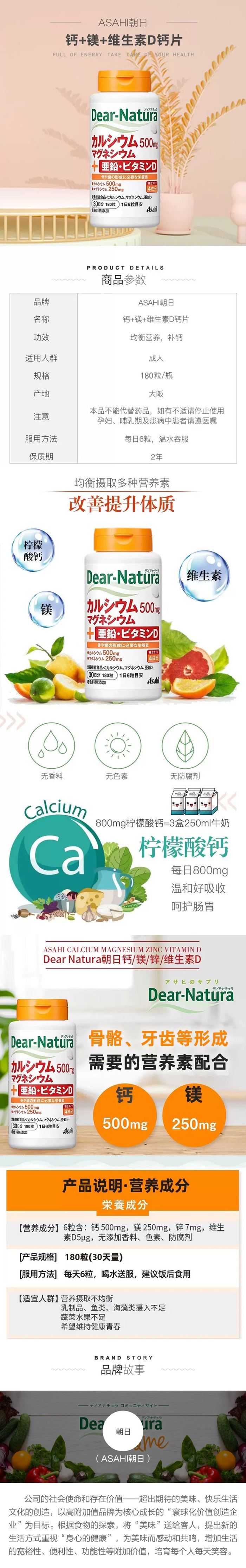 ASAHI朝日Dear-Natura钙镁锌维生素D180粒/瓶(片装)