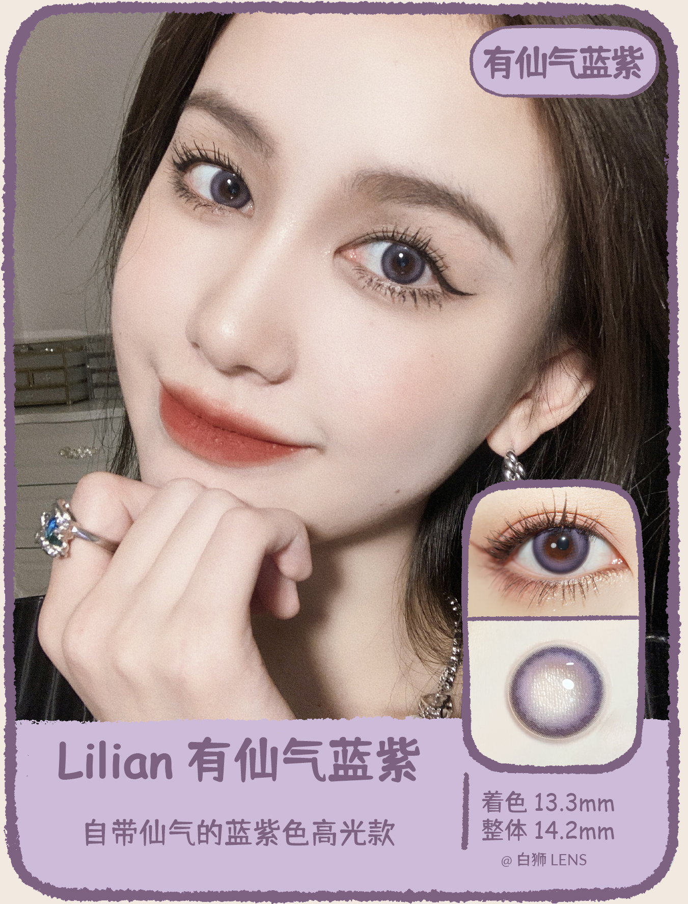Lilian旗下 · 有仙气蓝紫 · 狗狗眼高光款|14.2mm中等直径|韩国进口年抛