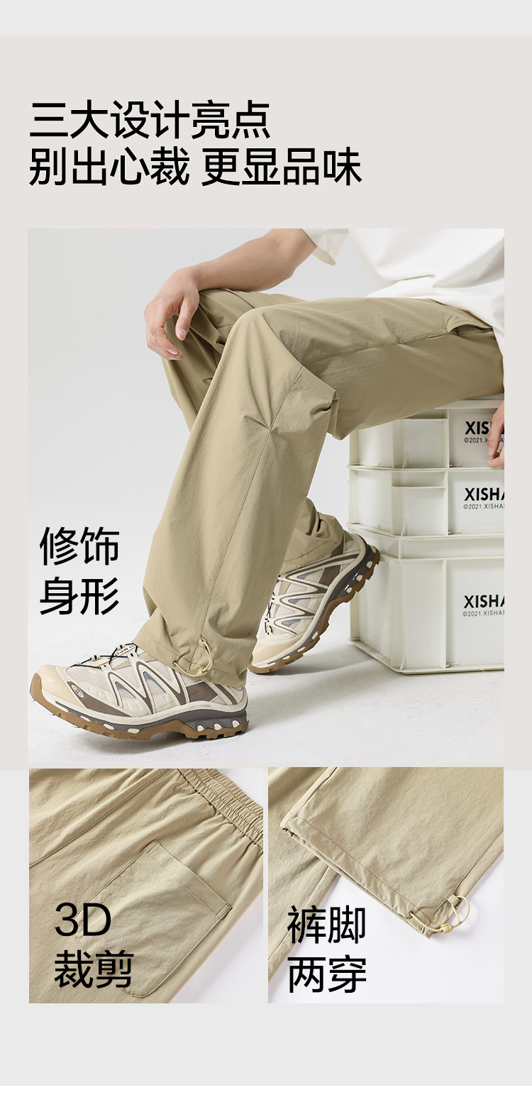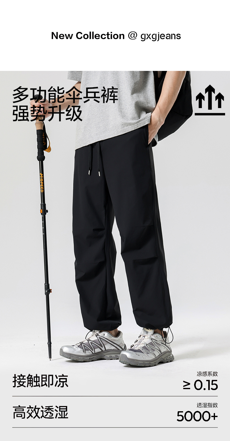 gxgjeans男装【热卖】26春款潮流男士休闲裤抽绳松紧腰脚口抽绳登山工装裤K&C