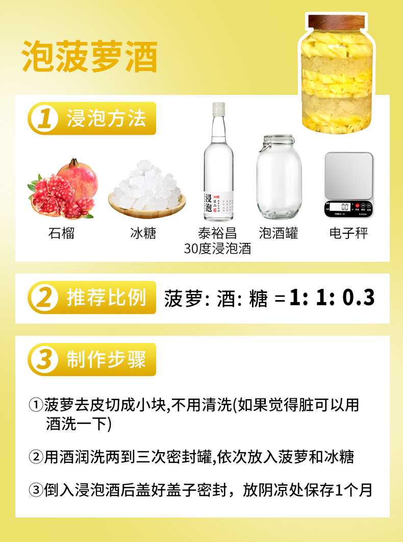 [泡果酒]30度-水果青梅石榴菠萝泡酒专用白酒清香型高粱酒粮食酒浸泡用酒