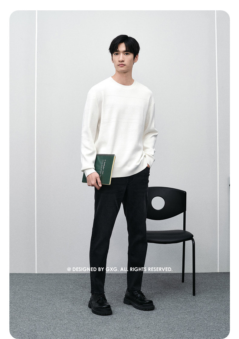GXG男士家居服 蓬松微绒肌理感长袖套头睡衣格子睡裤廓形睡衣套装