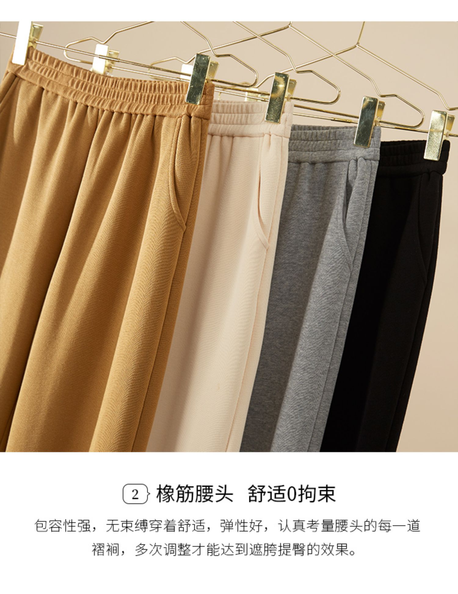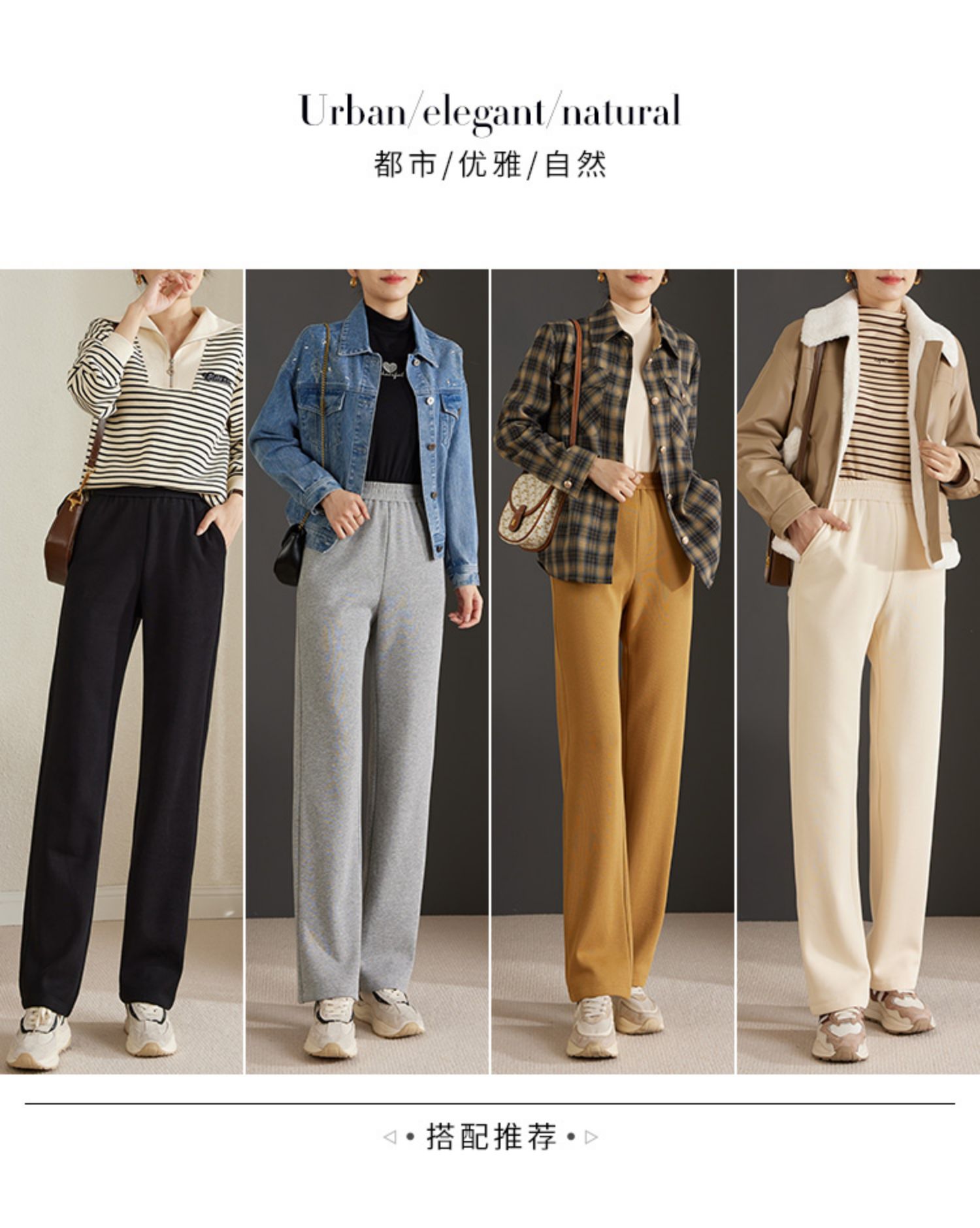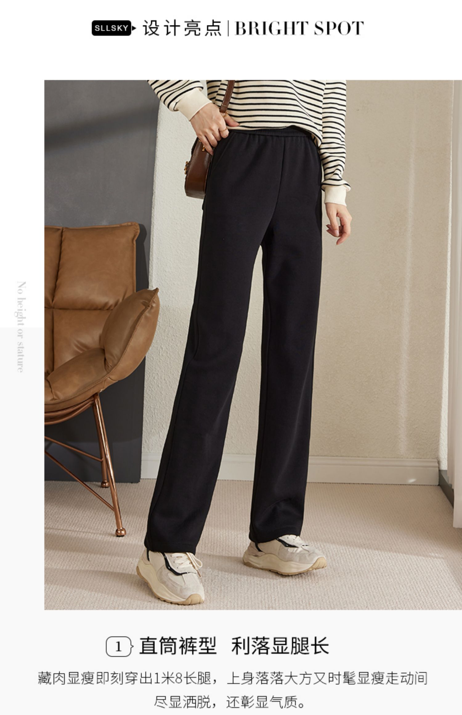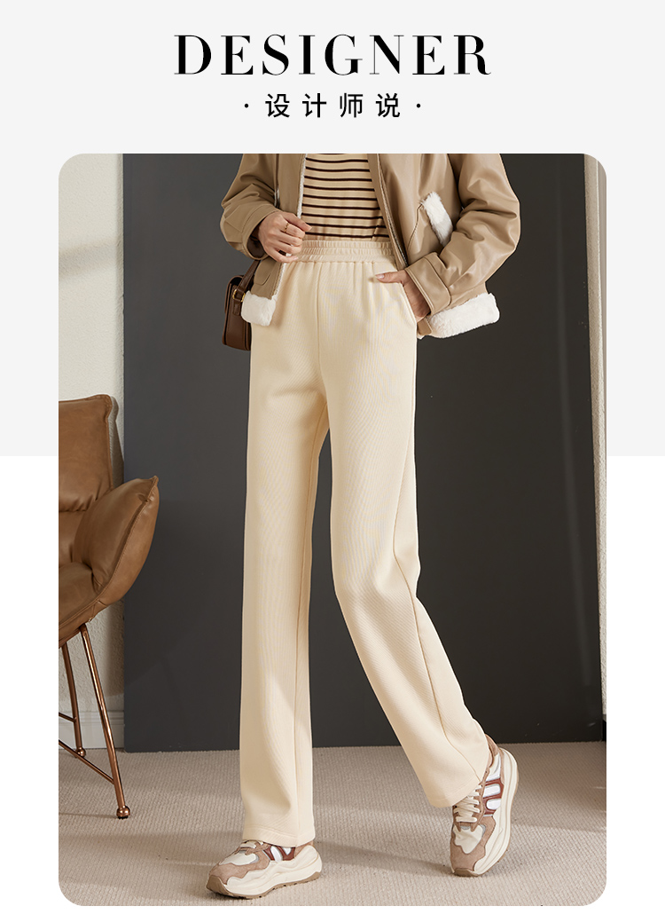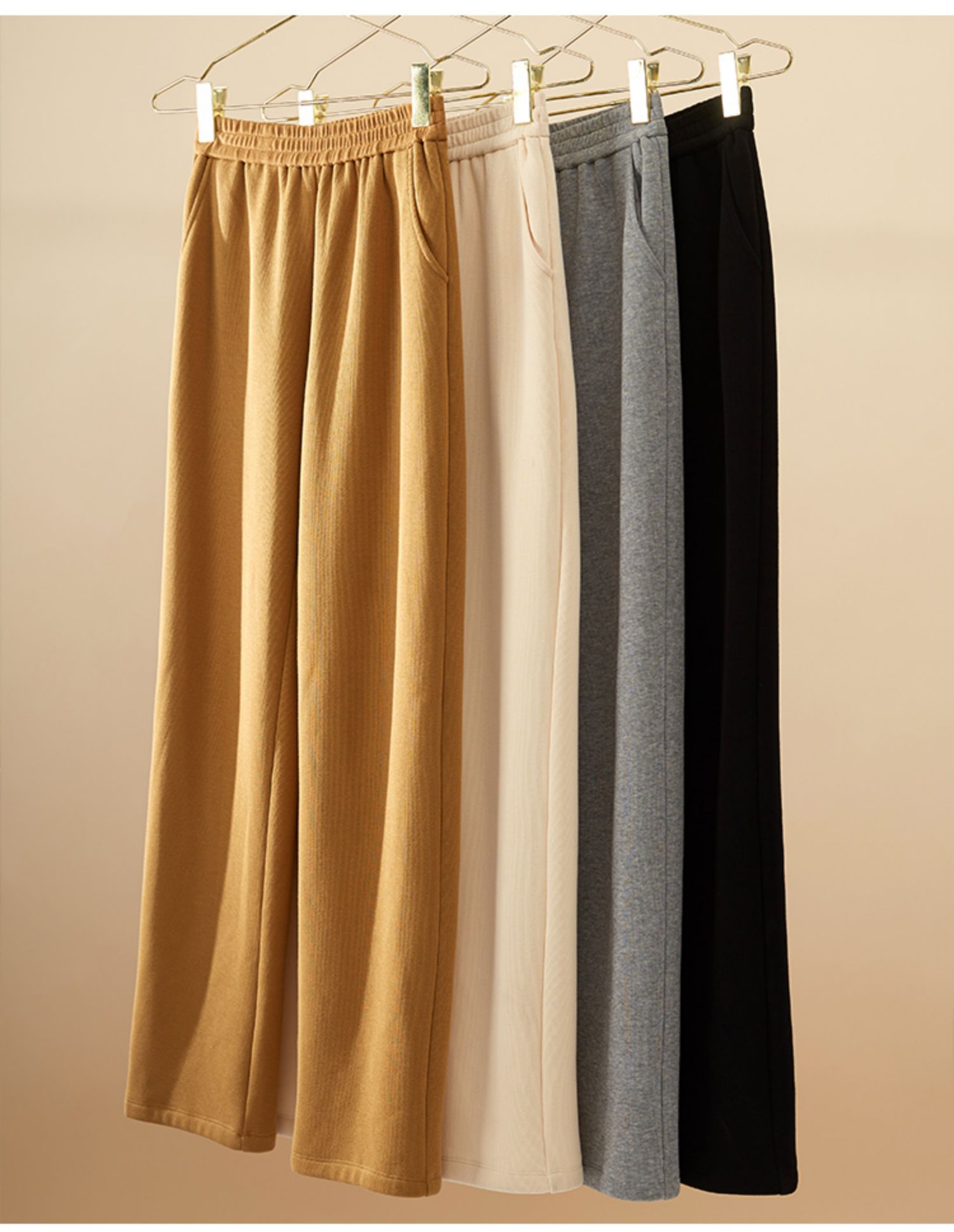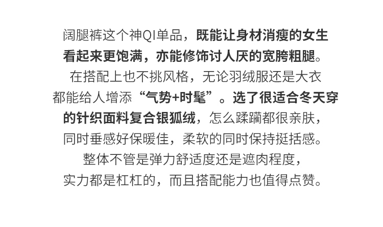 【年终特卖】熙世界银狐绒加绒阔腿裤女秋冬款高腰加厚宽松直筒裤子针织休闲裤