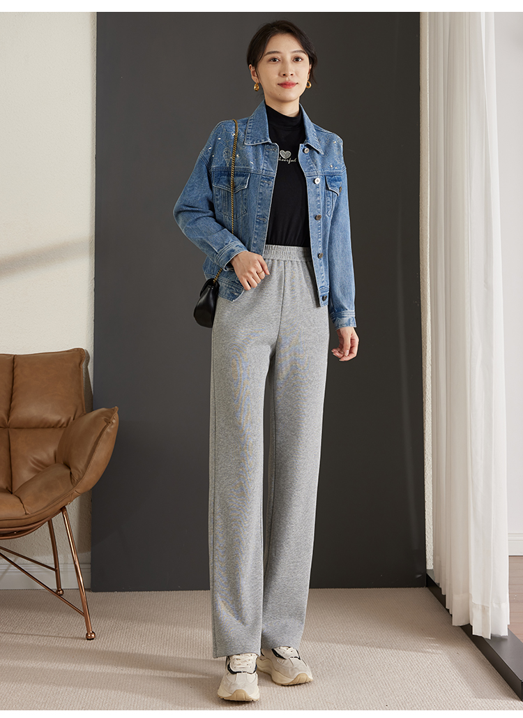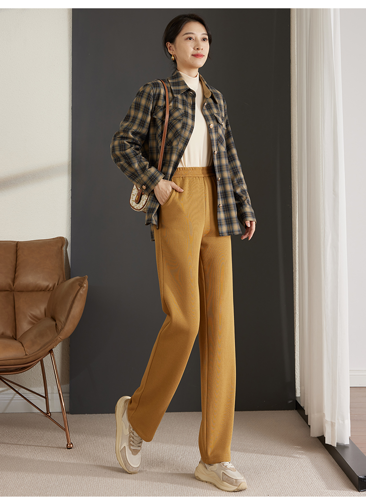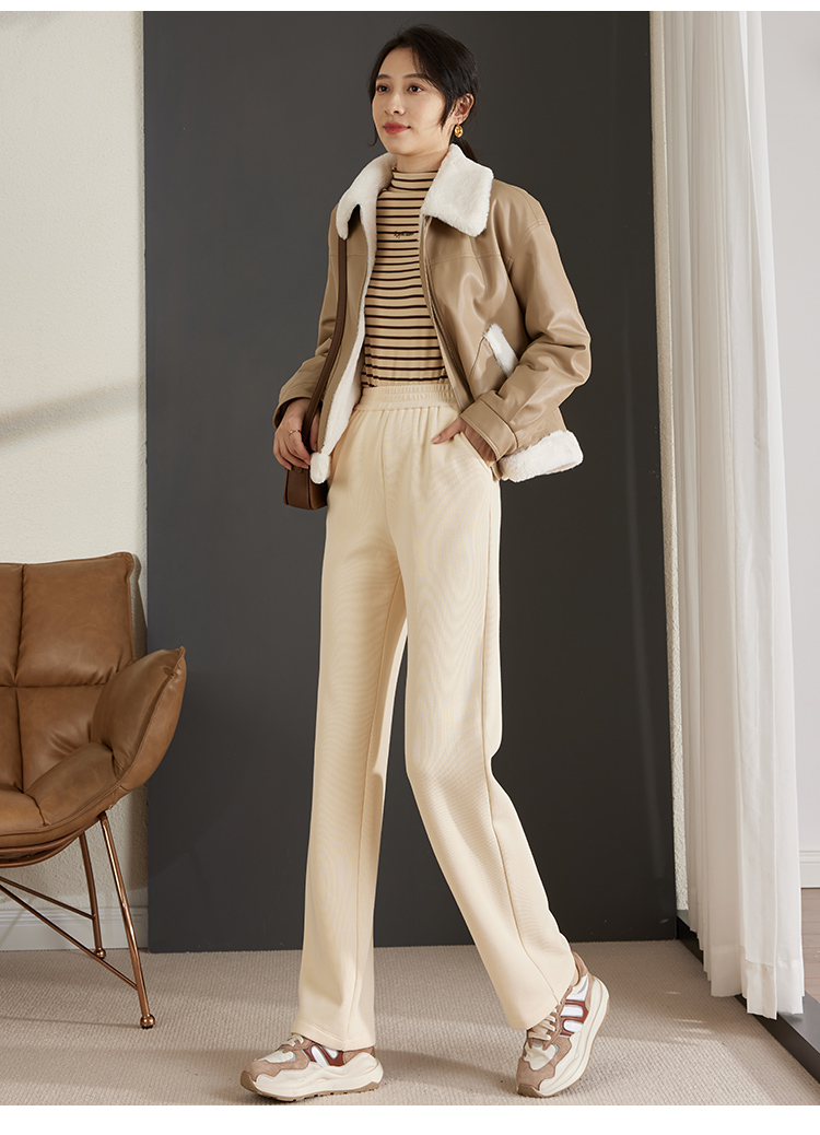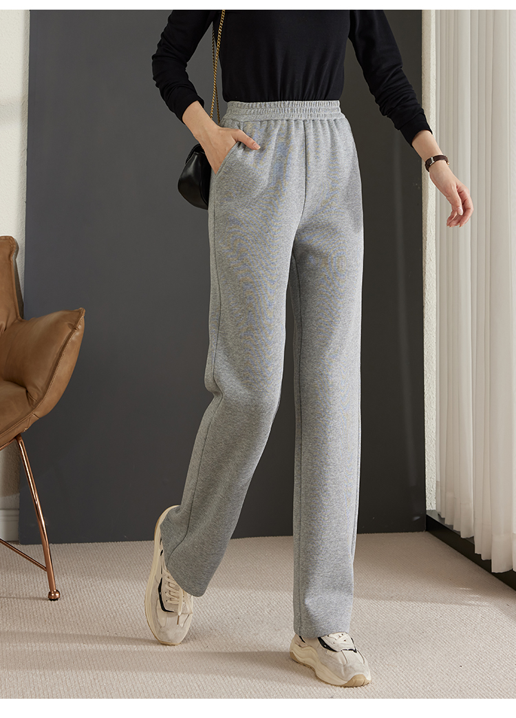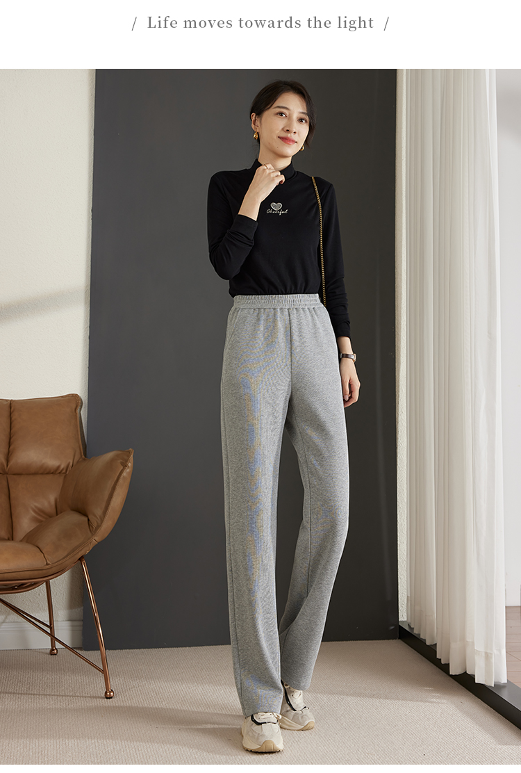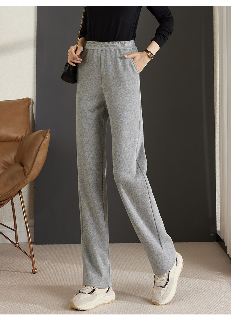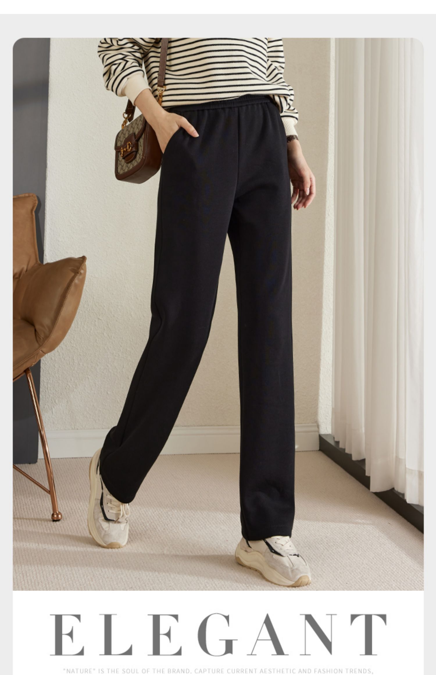 【年终特卖】熙世界银狐绒加绒阔腿裤女秋冬款高腰加厚宽松直筒裤子针织休闲裤
