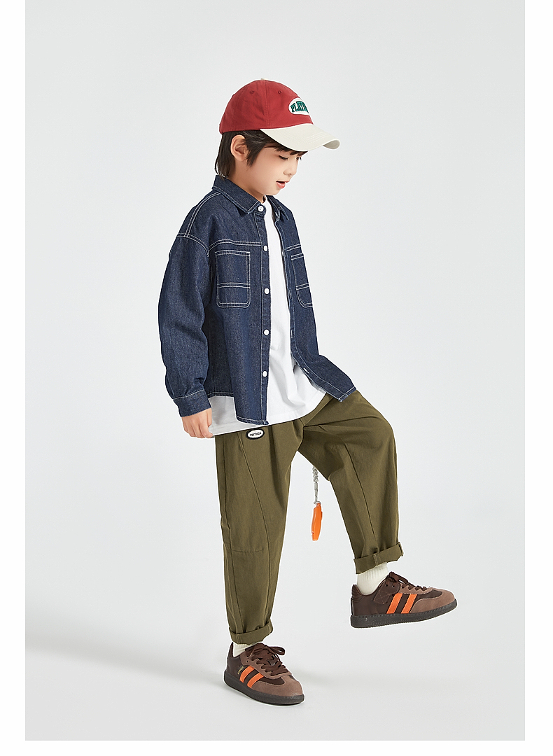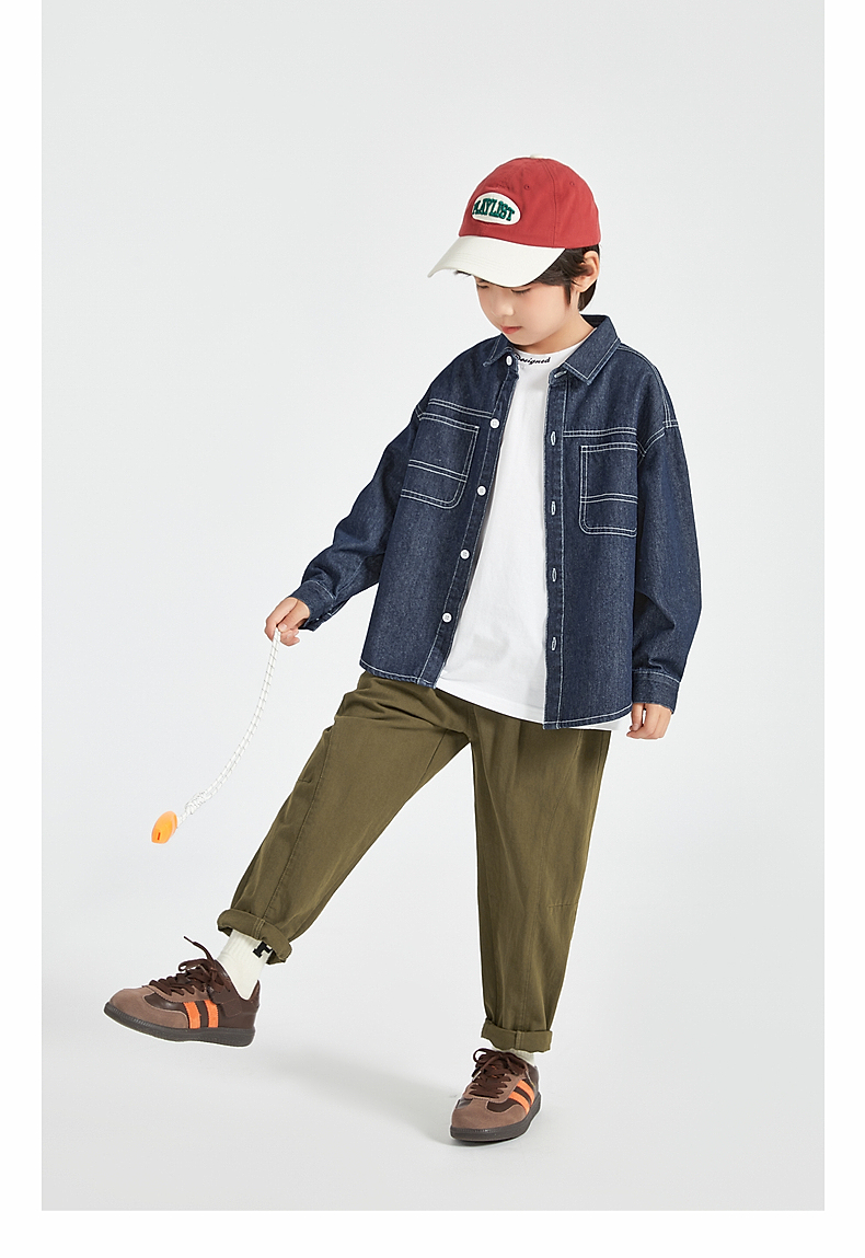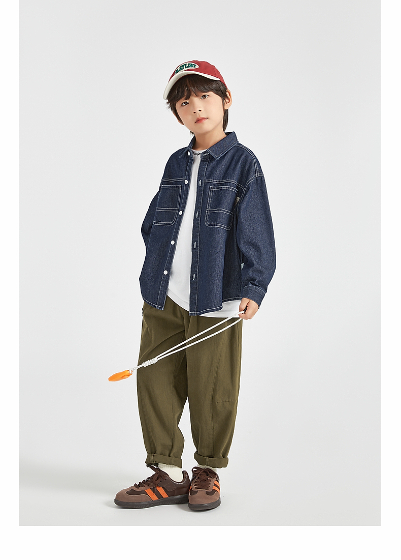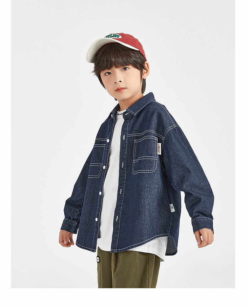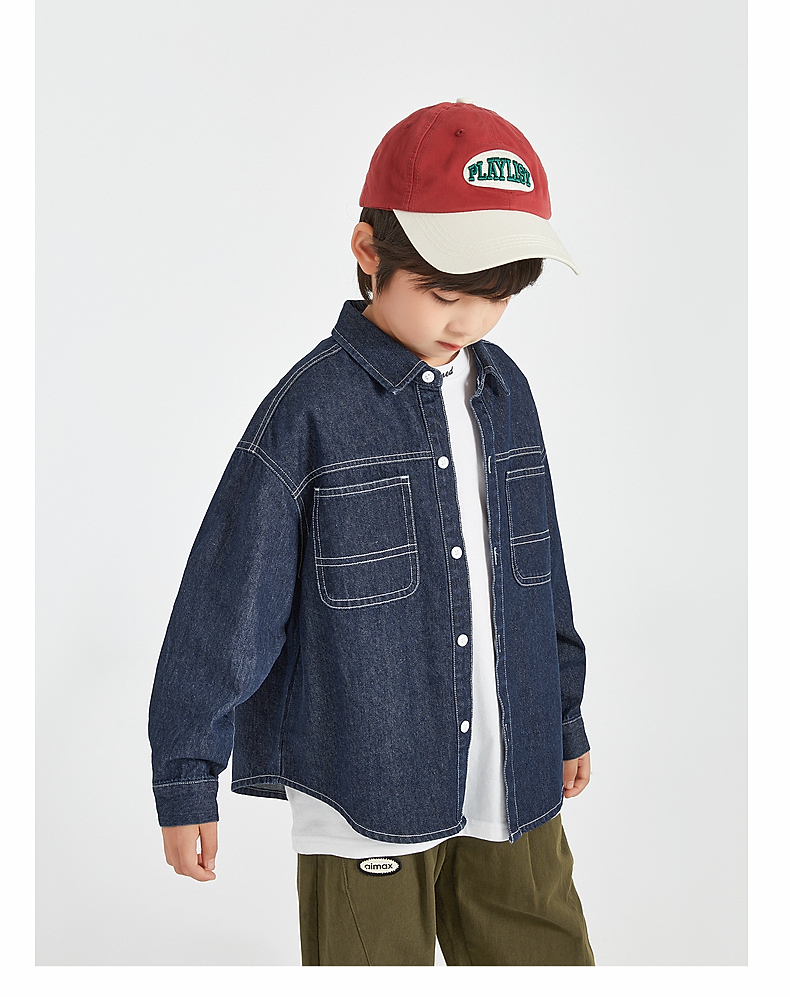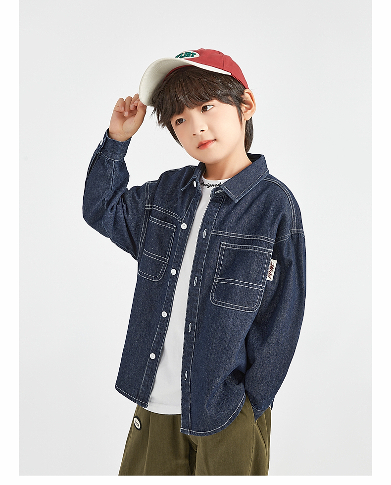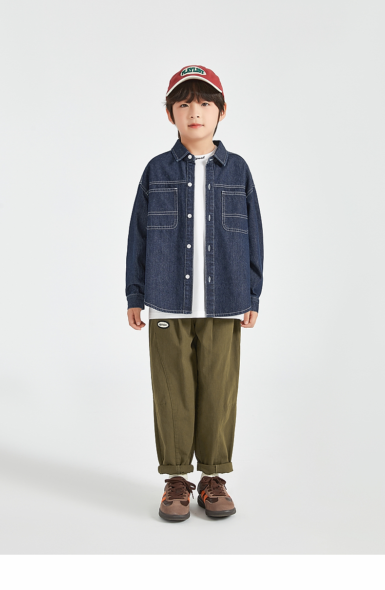 【团购价79.9】多多家男童牛仔衬衫2024新款秋装外套儿童春秋季中大童百搭衬衣潮9974