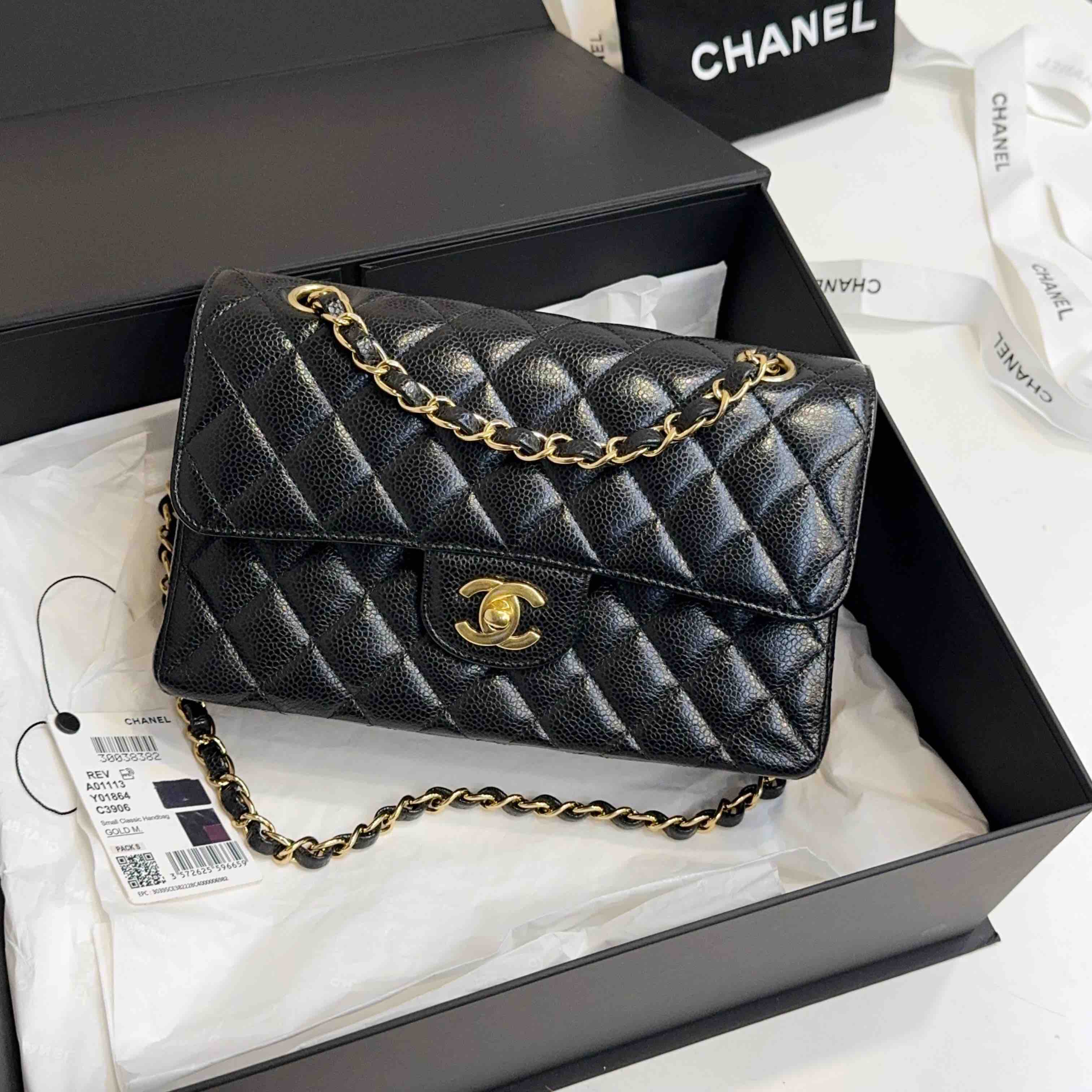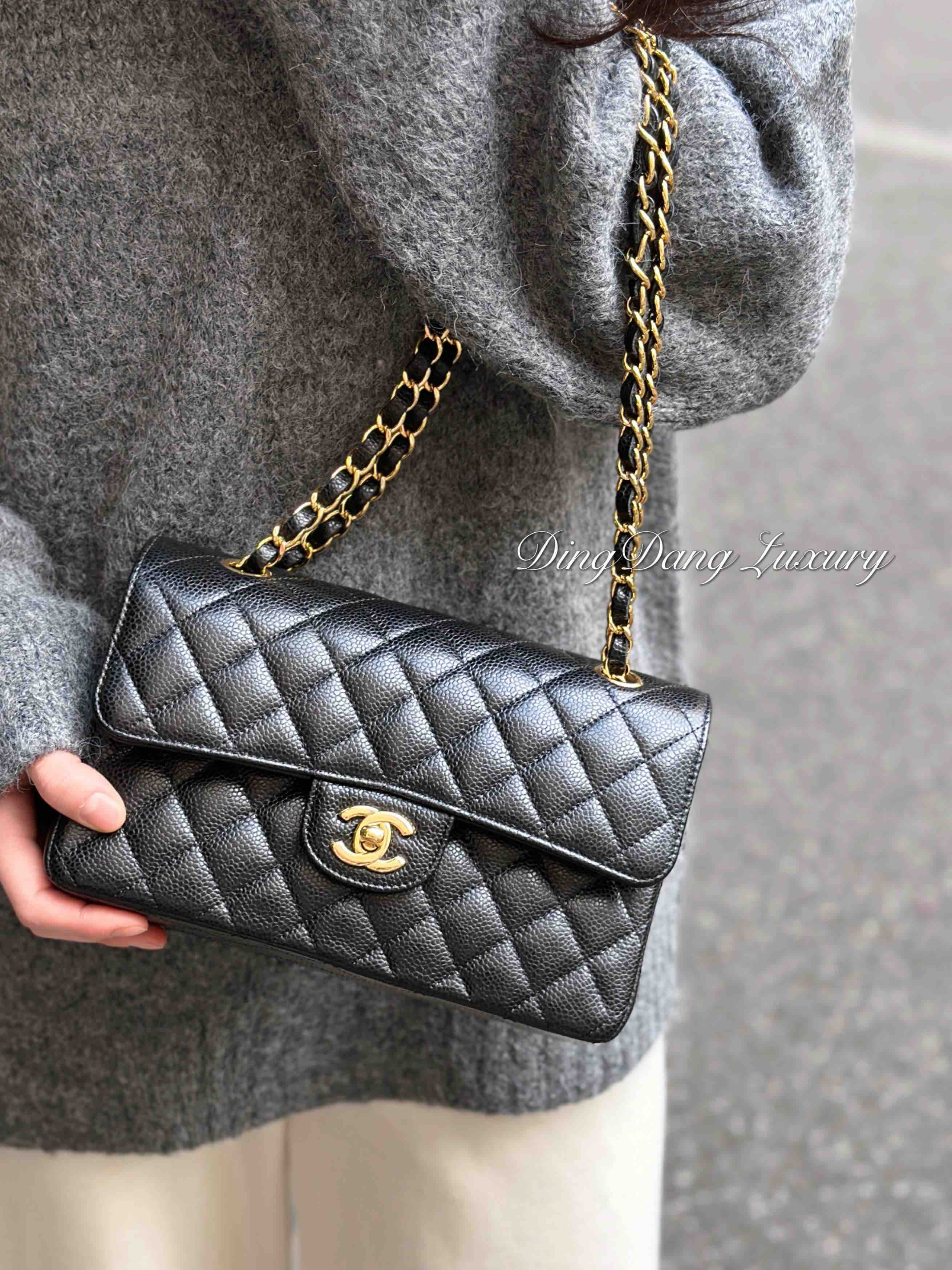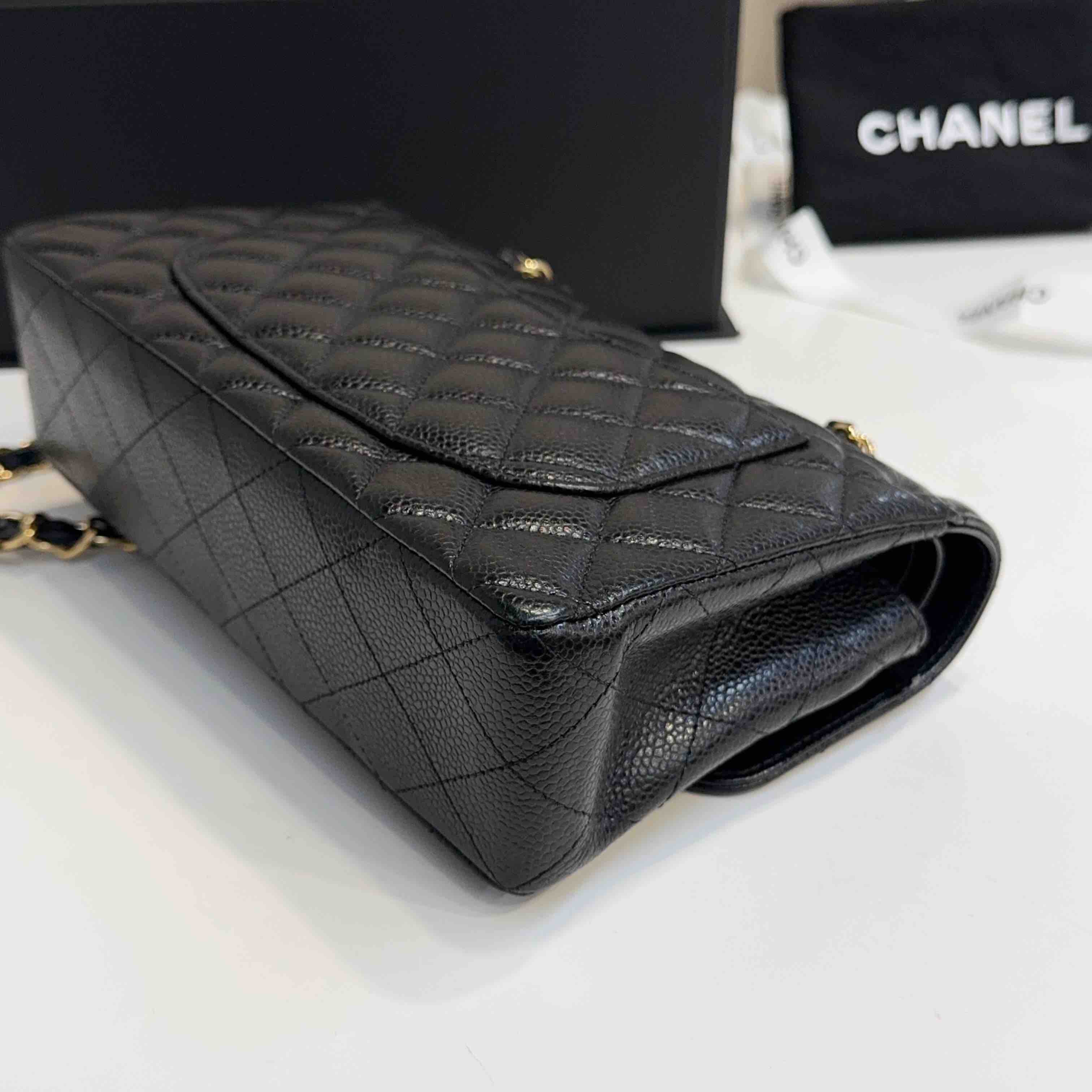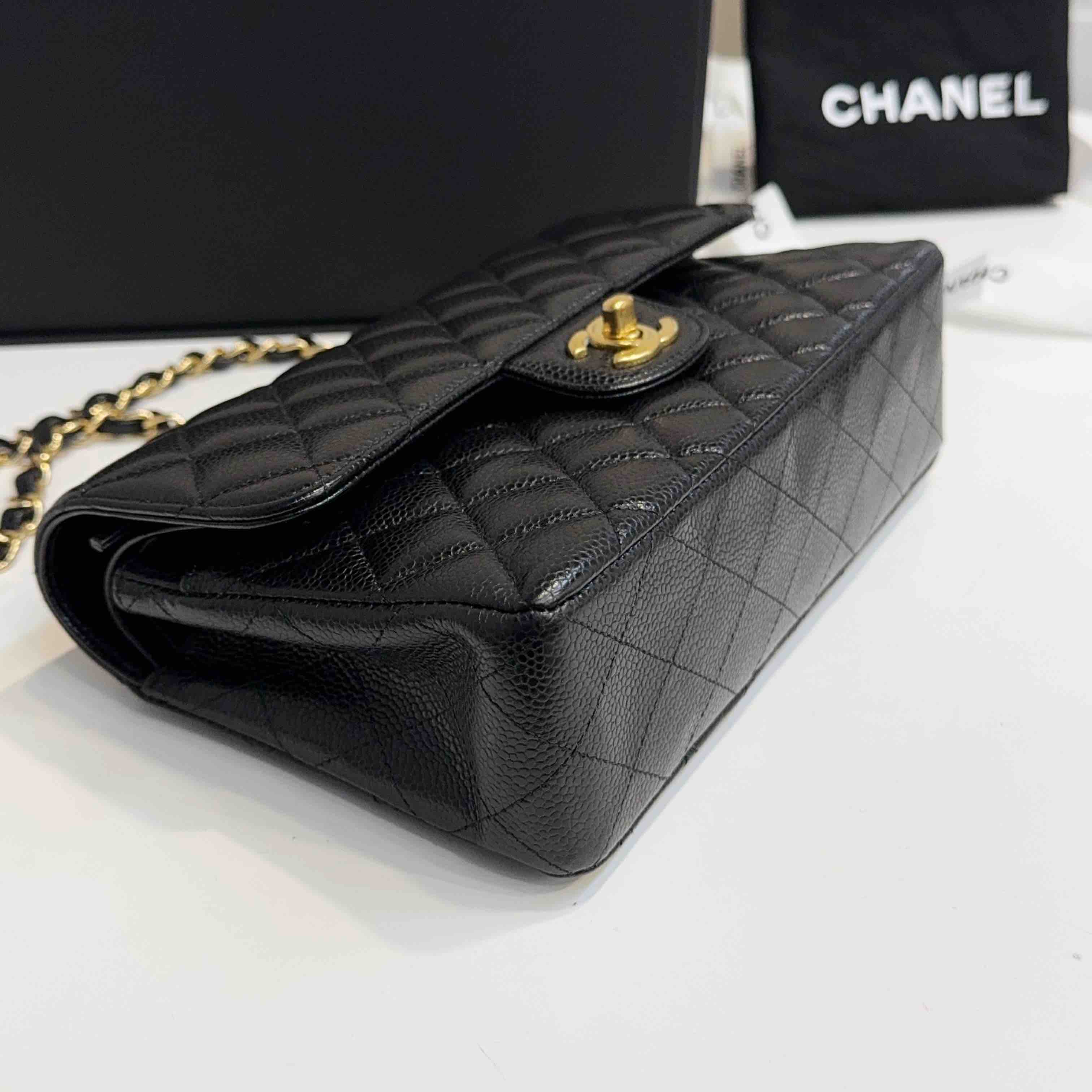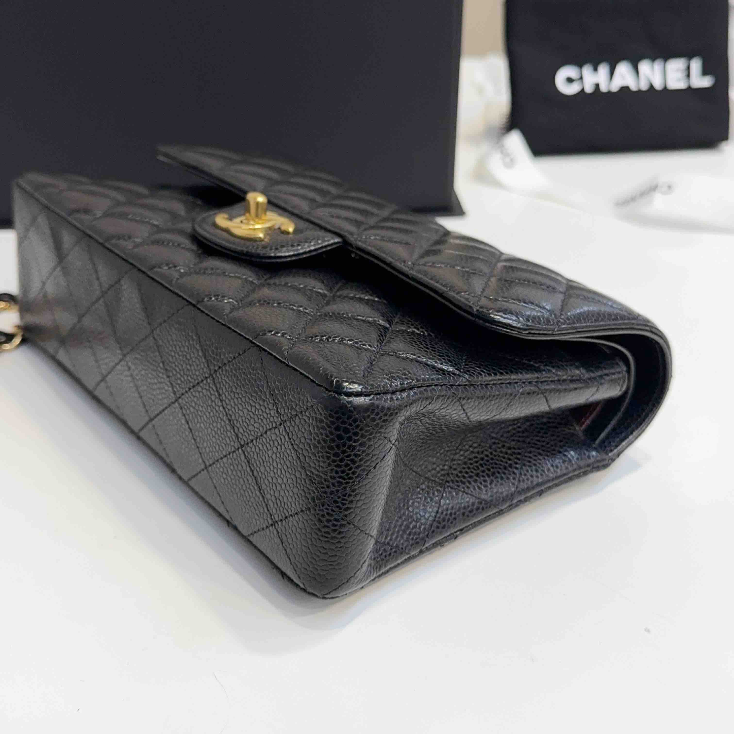 【商品详情】正品二手 Chanel CF 黑金 荔枝纹牛皮 小号 单肩包👜97新 23x16 镭射30开 配件:盒子 防尘袋 吊牌。边角和logo五金有微微使用感 包内有一处磨损 精致优雅感拉满