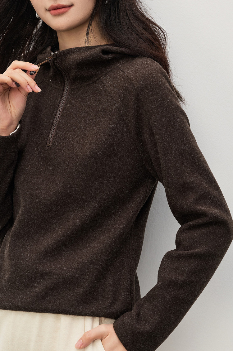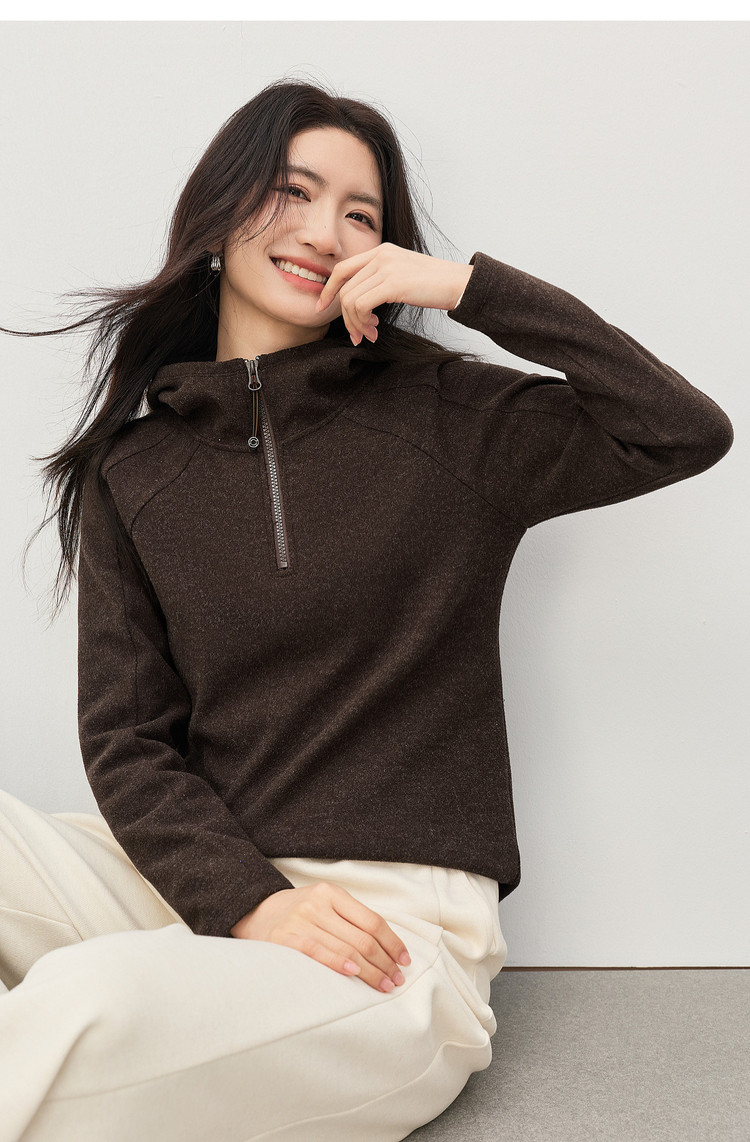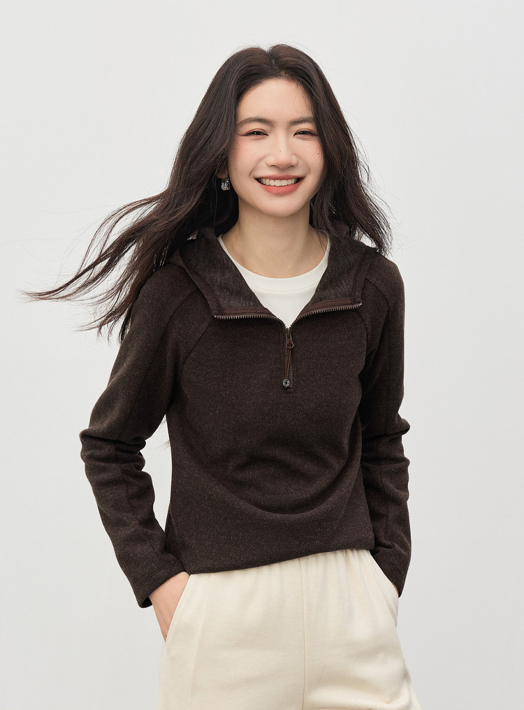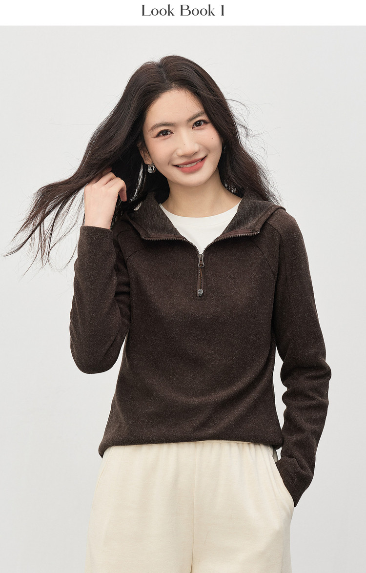 【1/21新品】熙世界lu风山系轻户外连帽卫衣女秋冬休闲仿毛呢半拉链套头衫上衣
