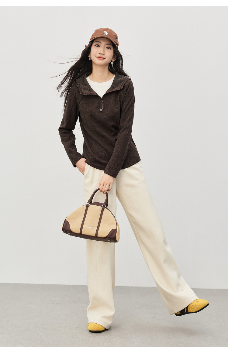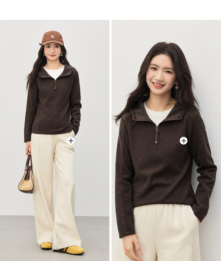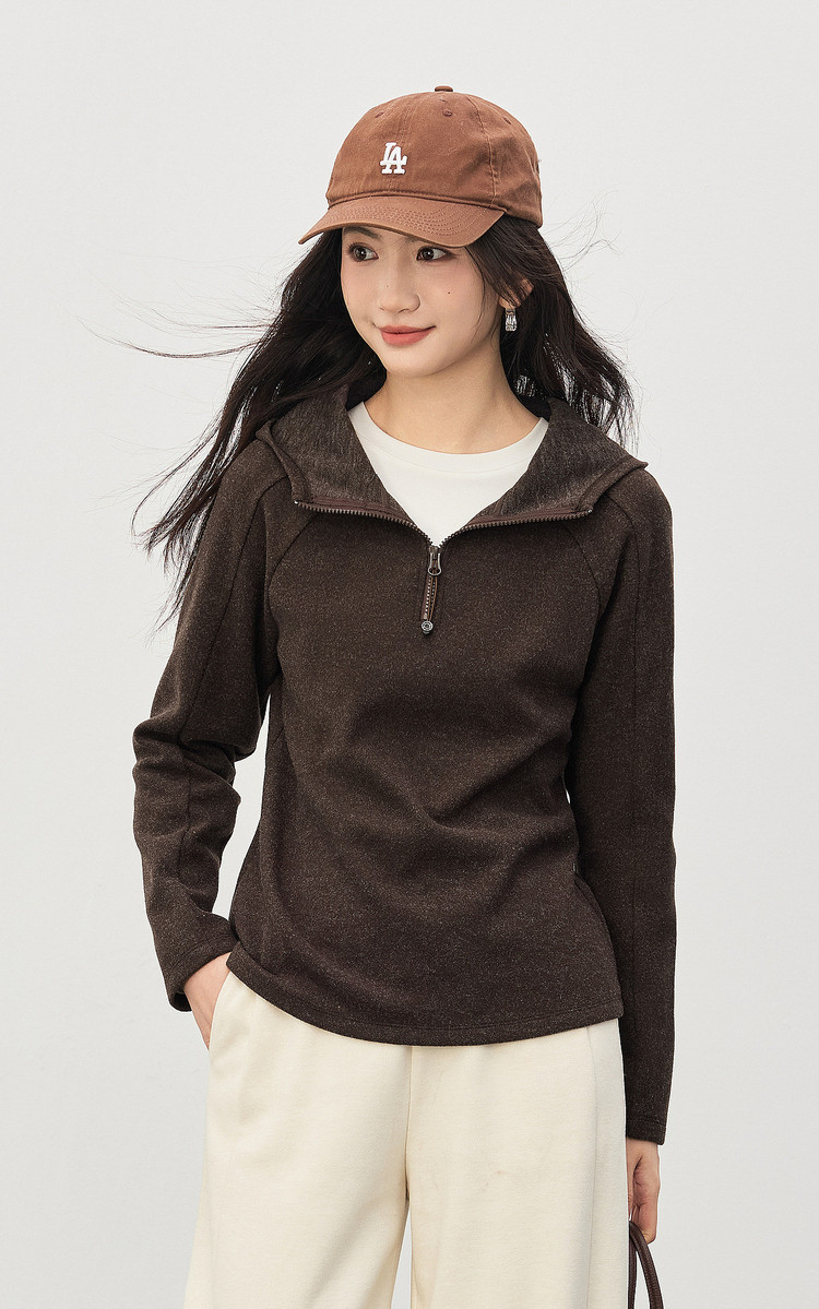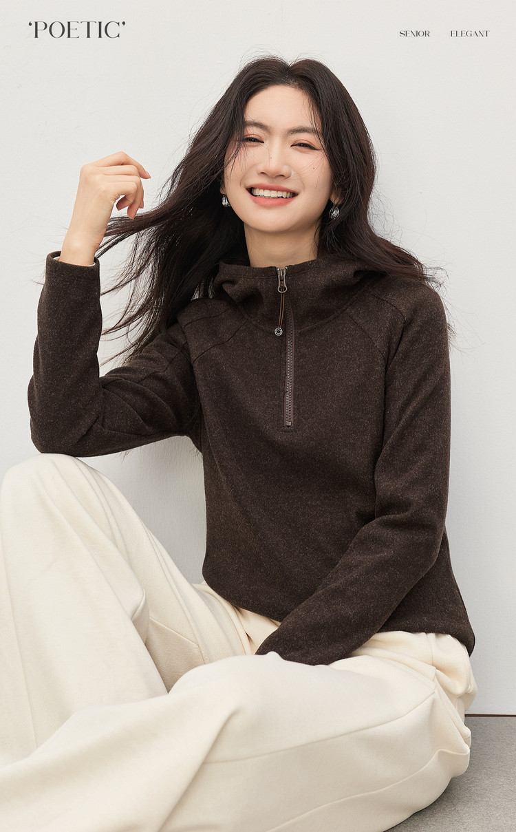 【1/21新品】熙世界lu风山系轻户外连帽卫衣女秋冬休闲仿毛呢半拉链套头衫上衣