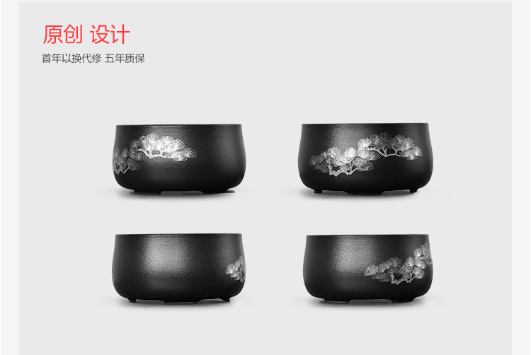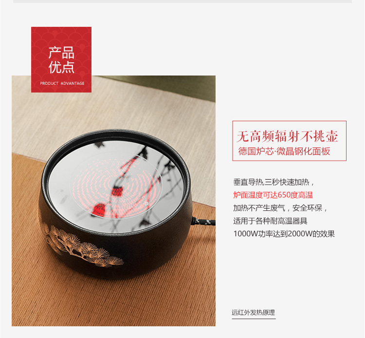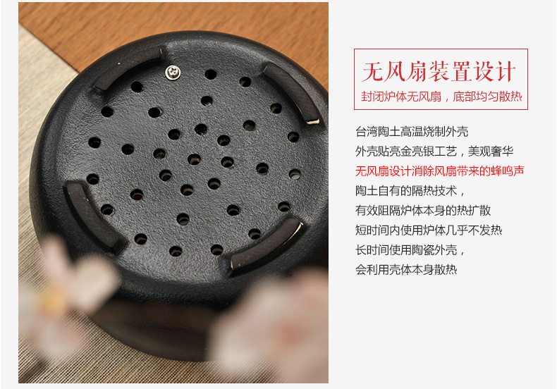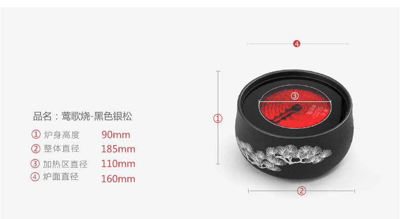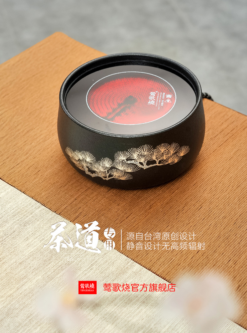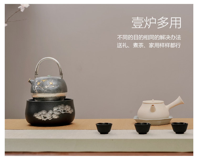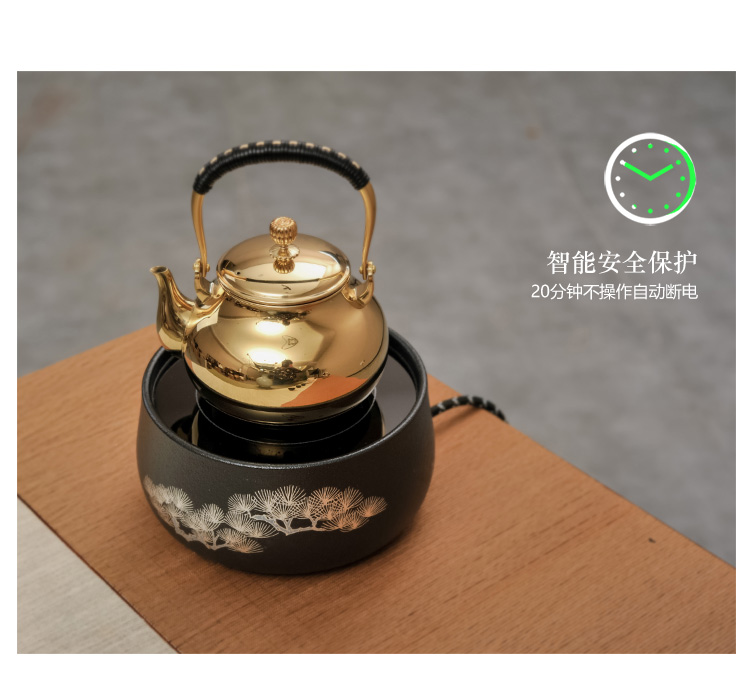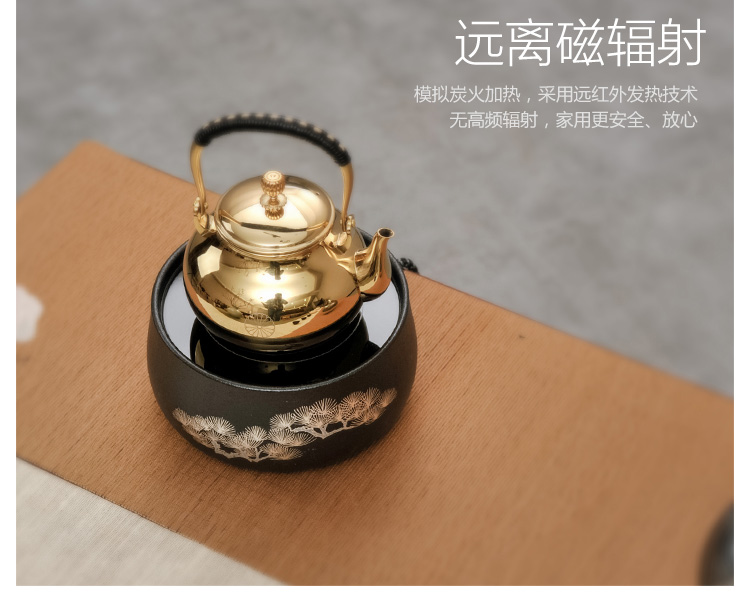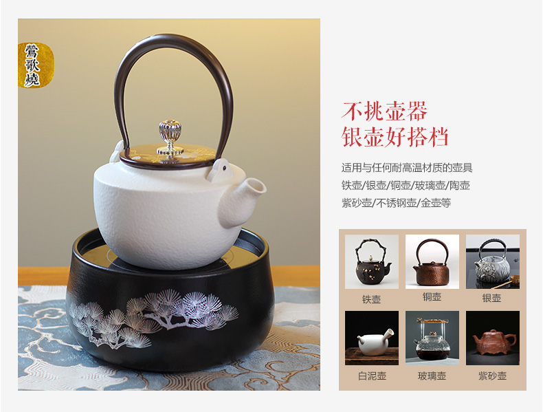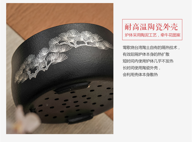 莺歌烧黑底银松电陶炉茶炉家用静音台式煮茶器 铁壶银壶电陶炉