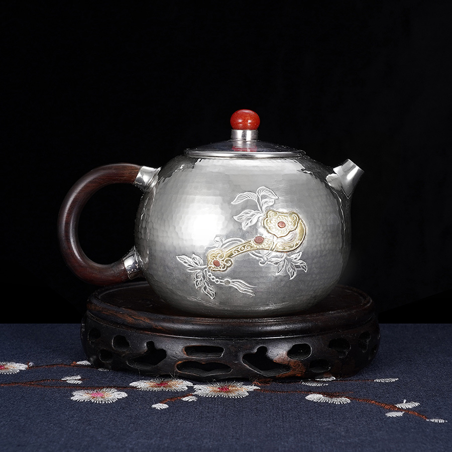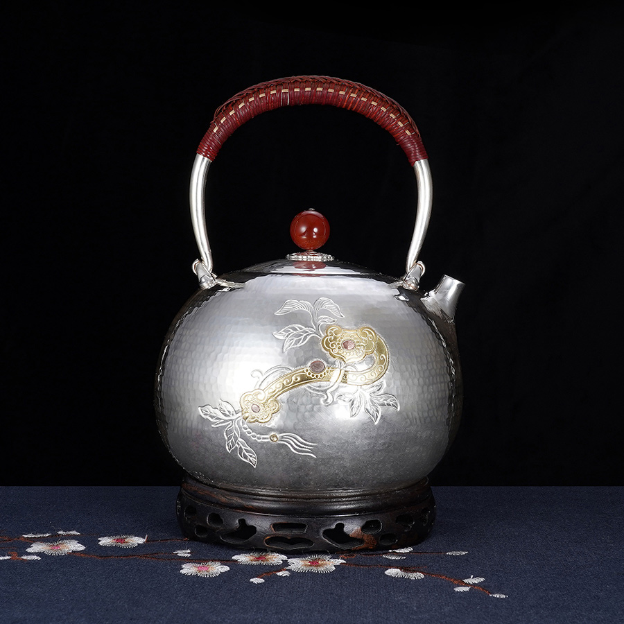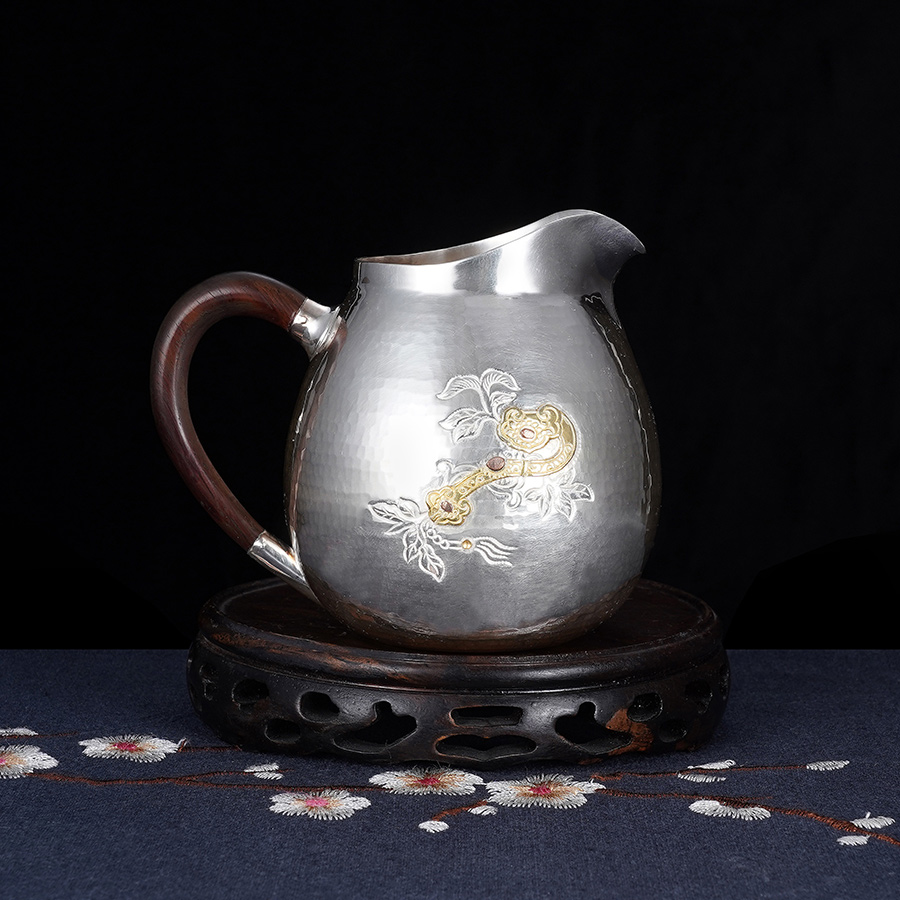 子佩集S999银【如意令】嵌金提梁壶小茶壶公道杯摆件茶杯摆件茶具套装【ZJ007】【ZJ005】【ZJ006】【ZJ012】2311