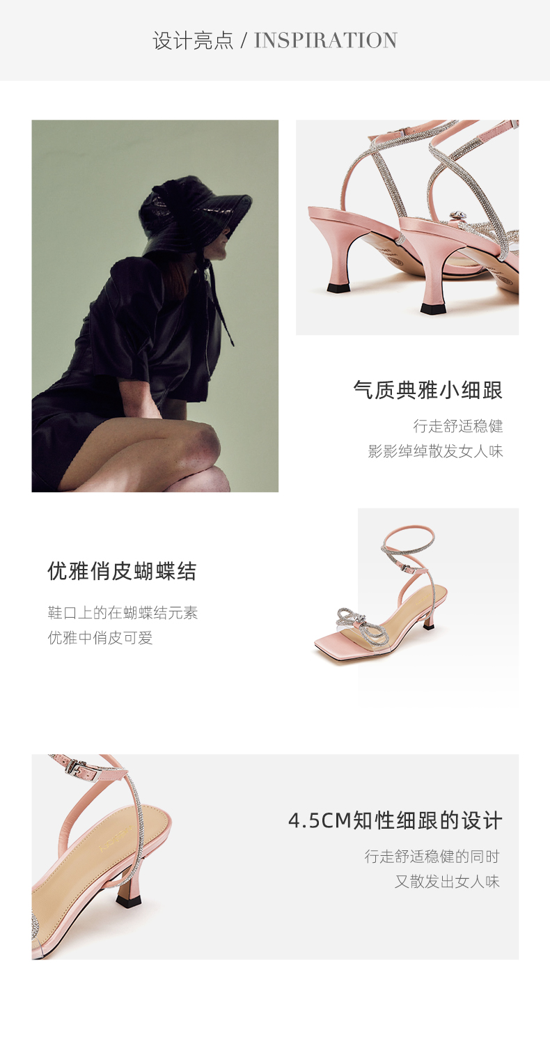 westory女鞋2021夏季新款羊皮仙女亮片细跟一字带凉鞋W21BG60881