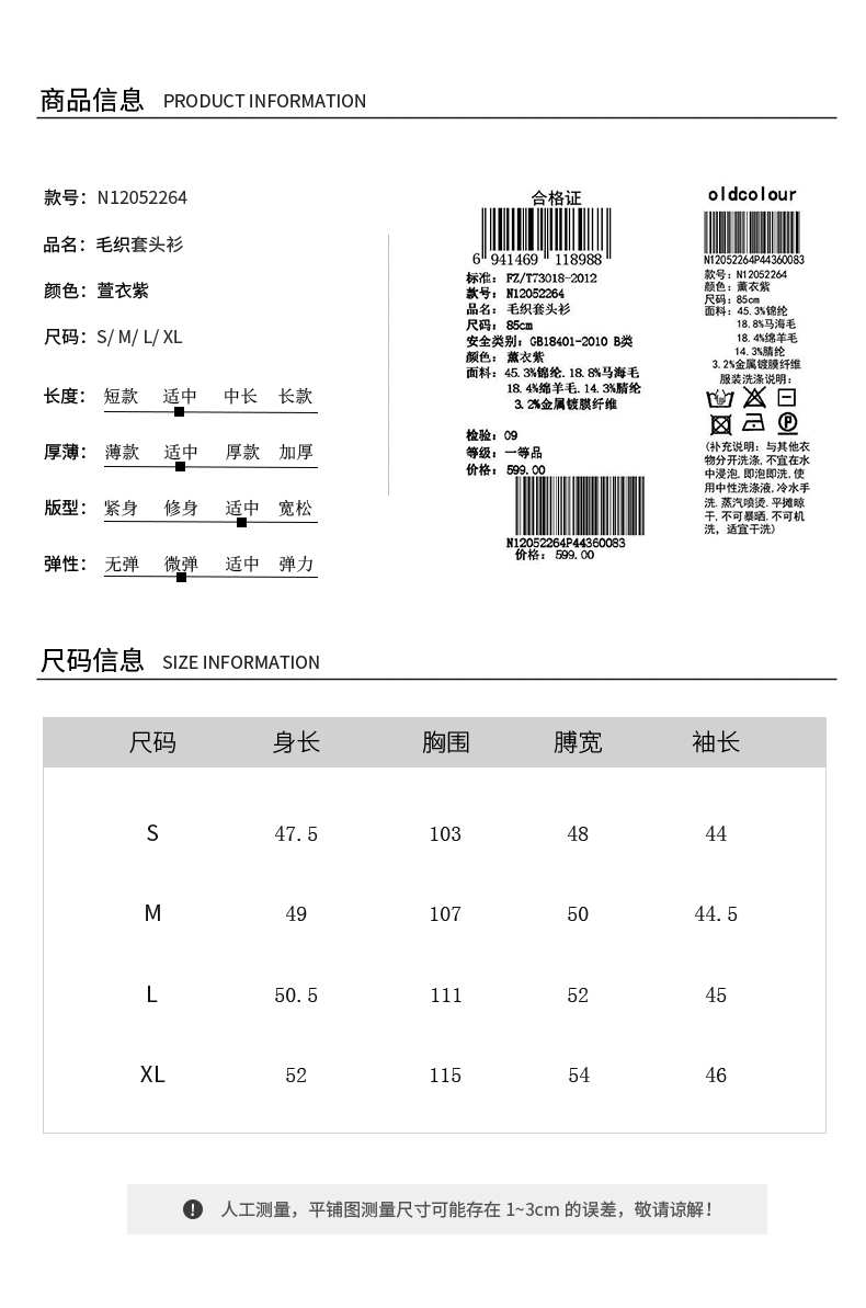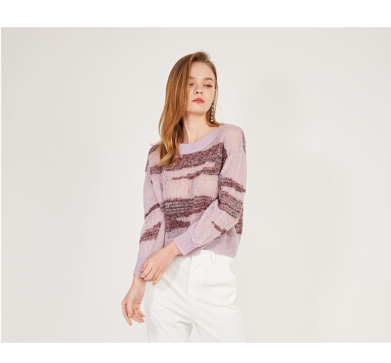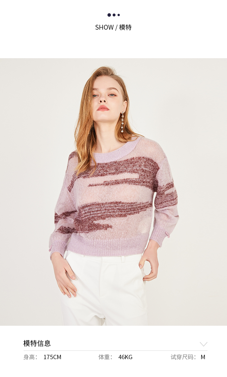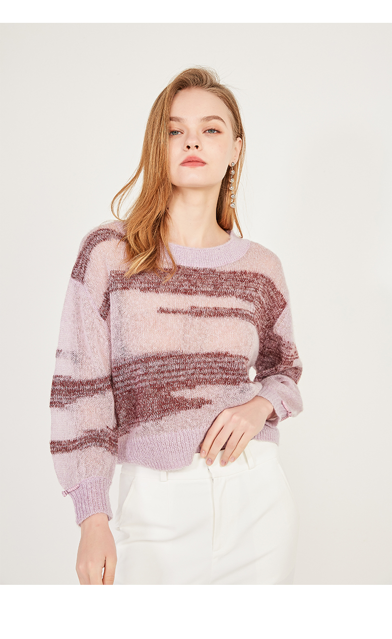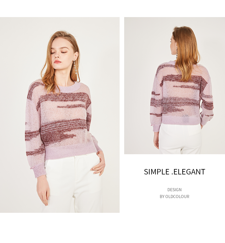 oldcolour春季圆领长袖宽松轻薄款含羊毛马海毛针织衫女N12052264