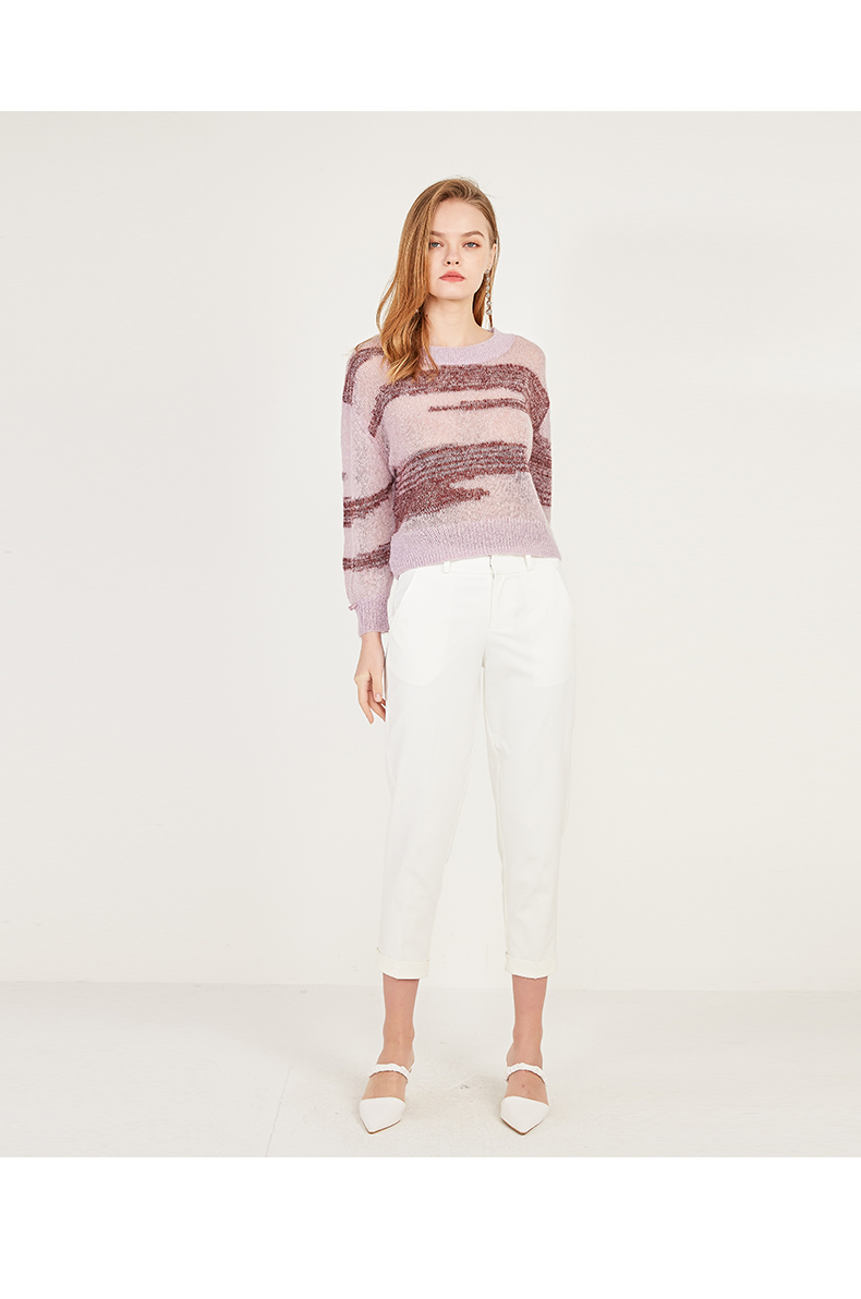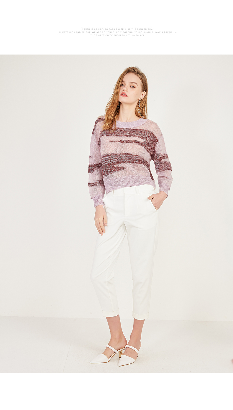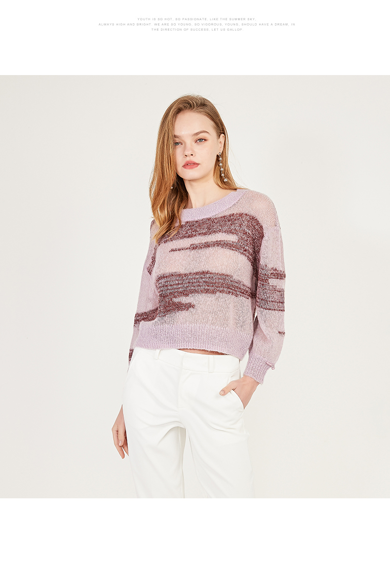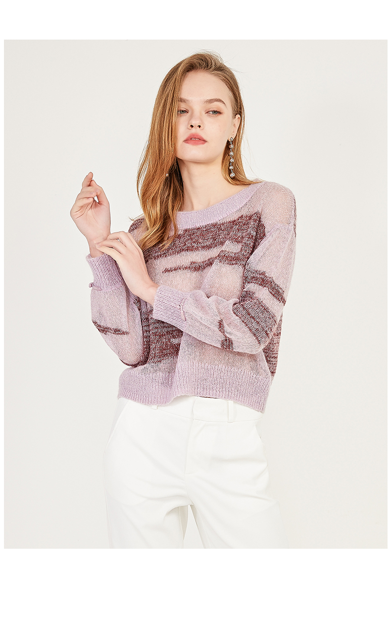 oldcolour春季圆领长袖宽松轻薄款含羊毛马海毛针织衫女N12052264