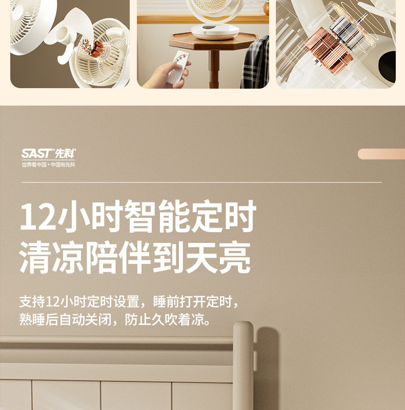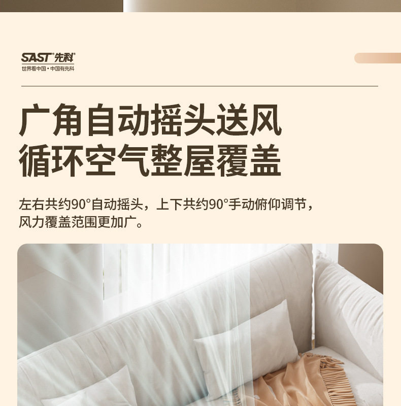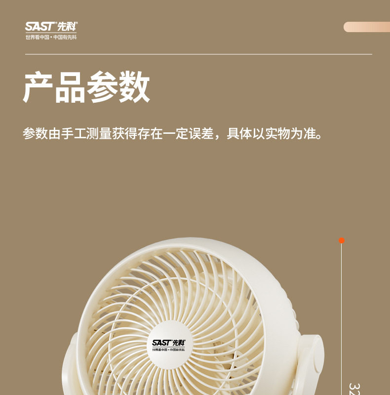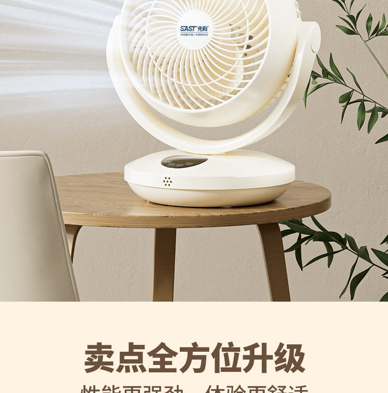 先科空气循环扇家用电风扇节能轻音办公室,家用,宿舍桌面风扇小型台式循环风扇