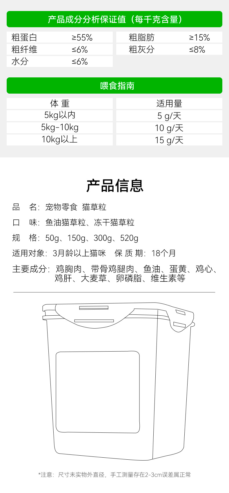 猫草粒冻干 猫零食成猫幼猫磨牙棒化毛球 洁齿温和排毛 猫草冻干
