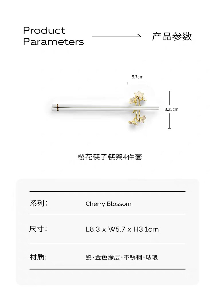Michael Aram陶瓷筷子家用高档轻奢抗菌防霉4双套装精致筷托