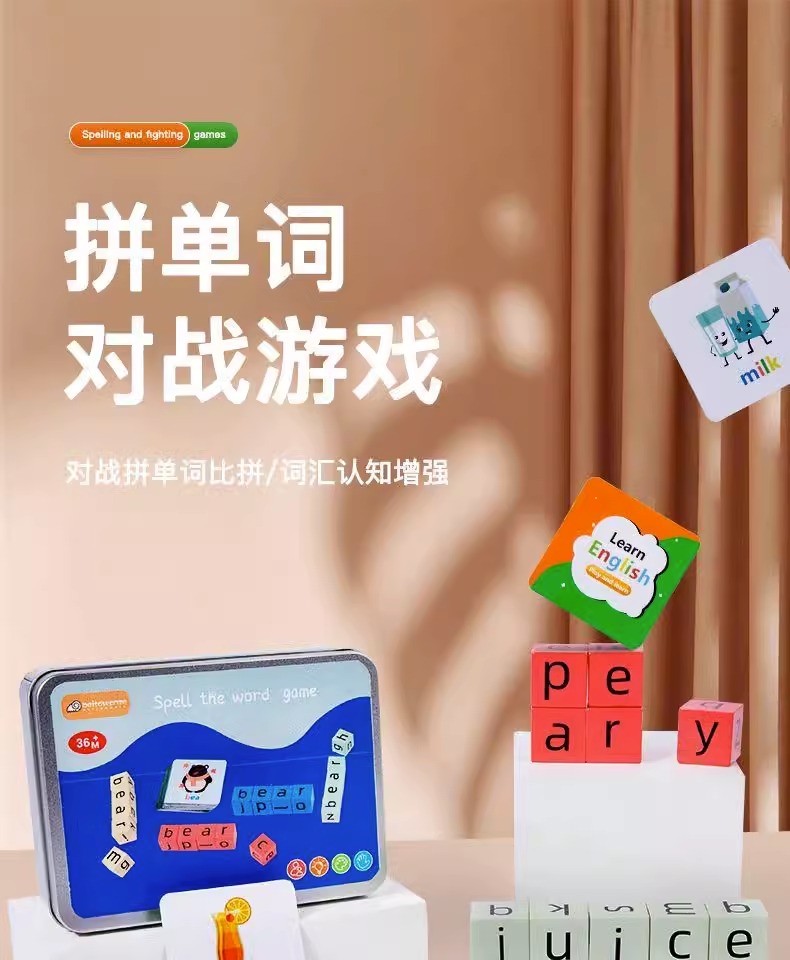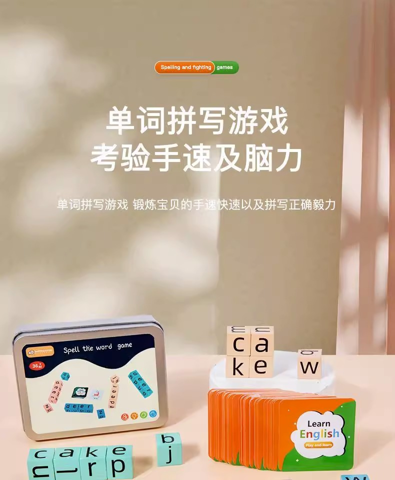 开学季福利!【大号20粒铁盒装 在游戏中英语单词启蒙】幼儿童拼单词游戏26个英文字母积木玩具益智幼儿园玩教具亲子互动