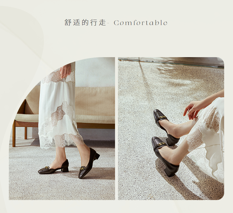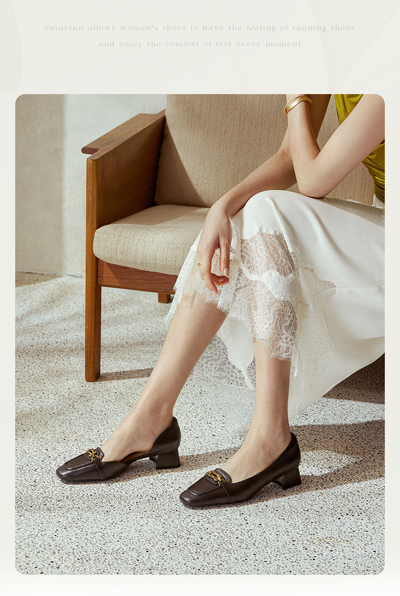natursun时装凉鞋女气质通勤乐福鞋舒适软底羊皮单鞋N25290211